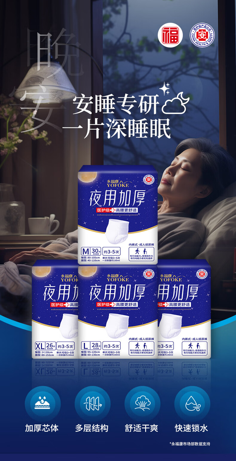 永福康夜用加厚成人拉拉裤L84片 臀围95-120cm 老人孕产妇内裤型纸尿裤