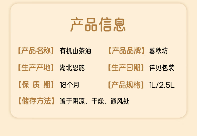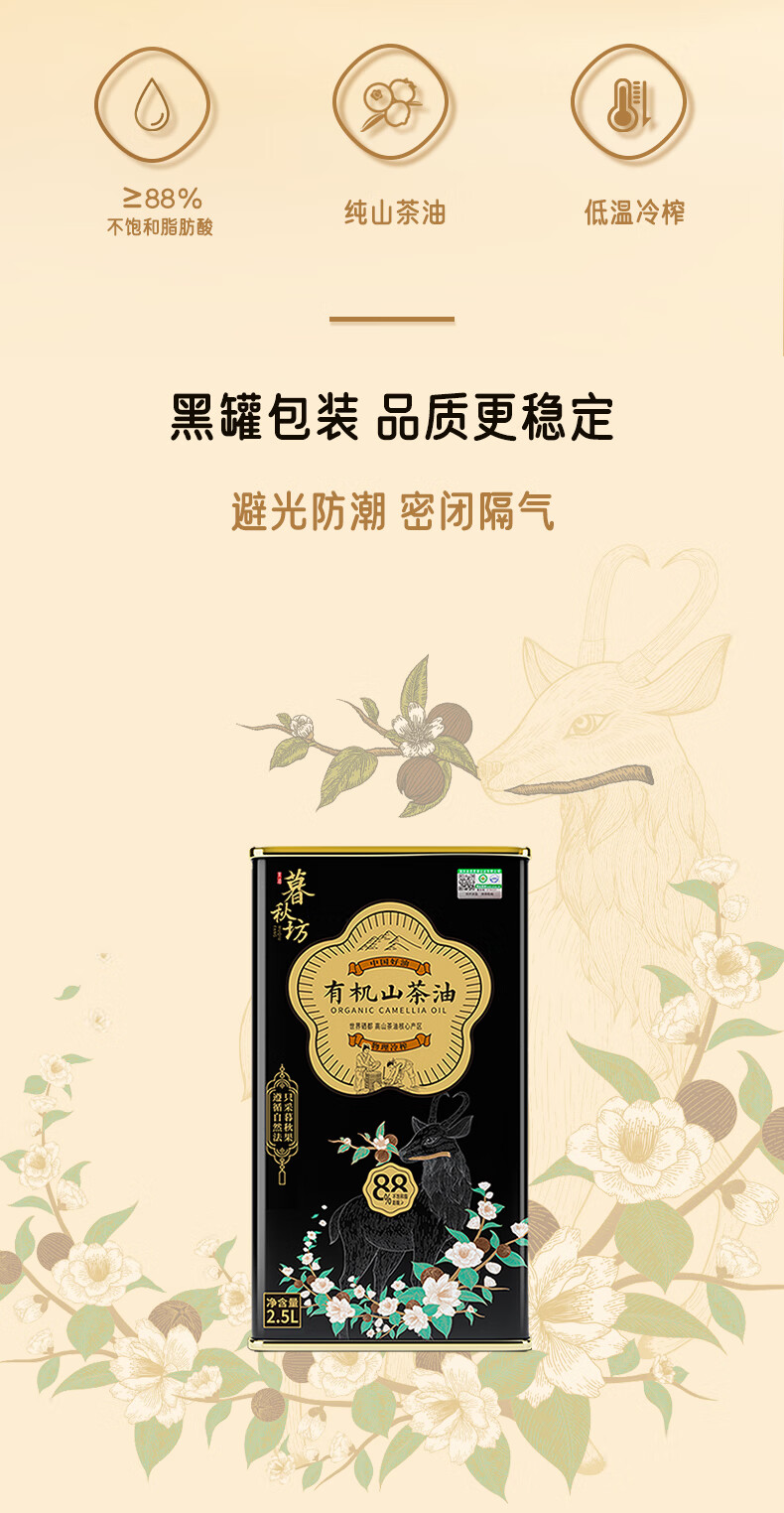 陇间柒月有机山茶油2.5L湖北恩施低温物理压榨罐装高山茶油孕妇油春节送礼