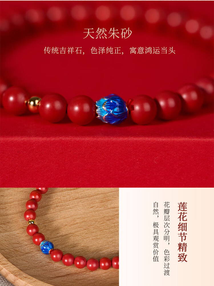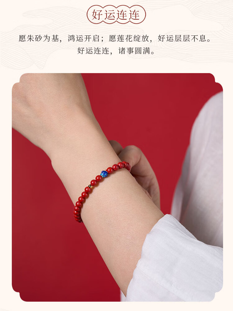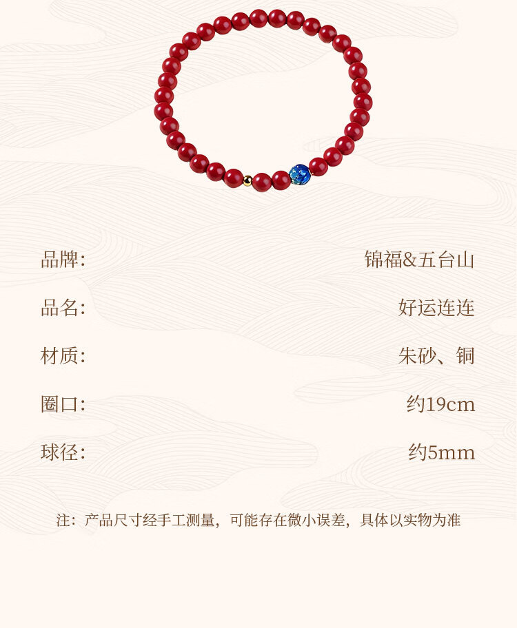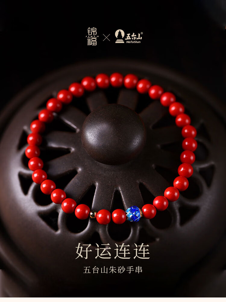 锦福五台山本命年平安解岁红手绳女朱砂手串转手链护身运珠符礼物 朱砂好运连连