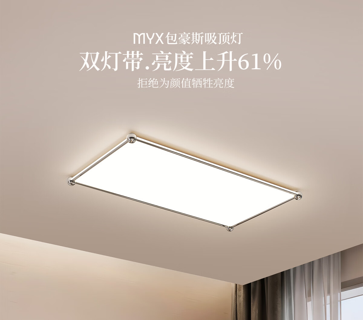 明艺轩圆野灯2026年新款方形客厅灯包豪斯超亮护眼客厅吸顶灯铬色灯具 Pro版(普瑞)铬色-93*53cm-精灵款