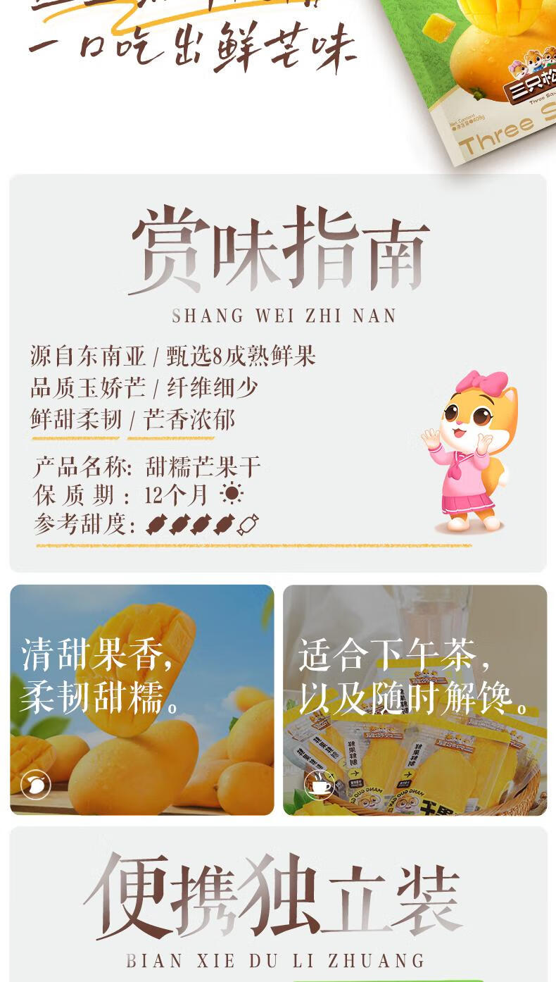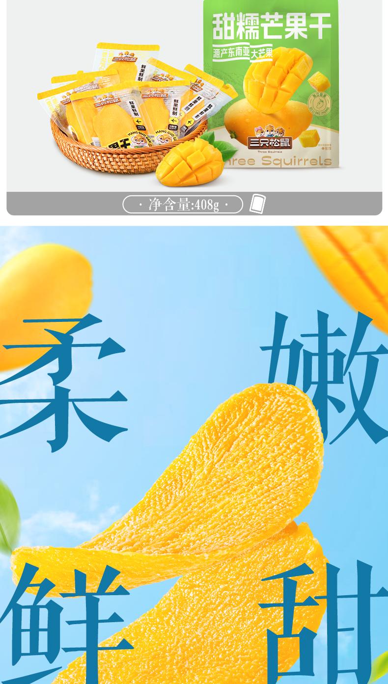 三只松鼠芒果干408g/袋 独立包装蜜饯果干果脯休闲零食办公零嘴小吃