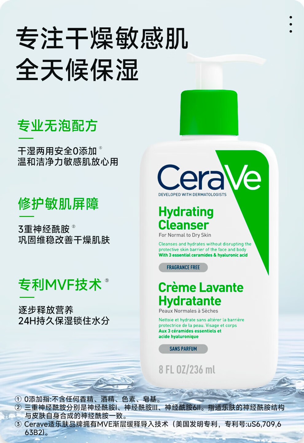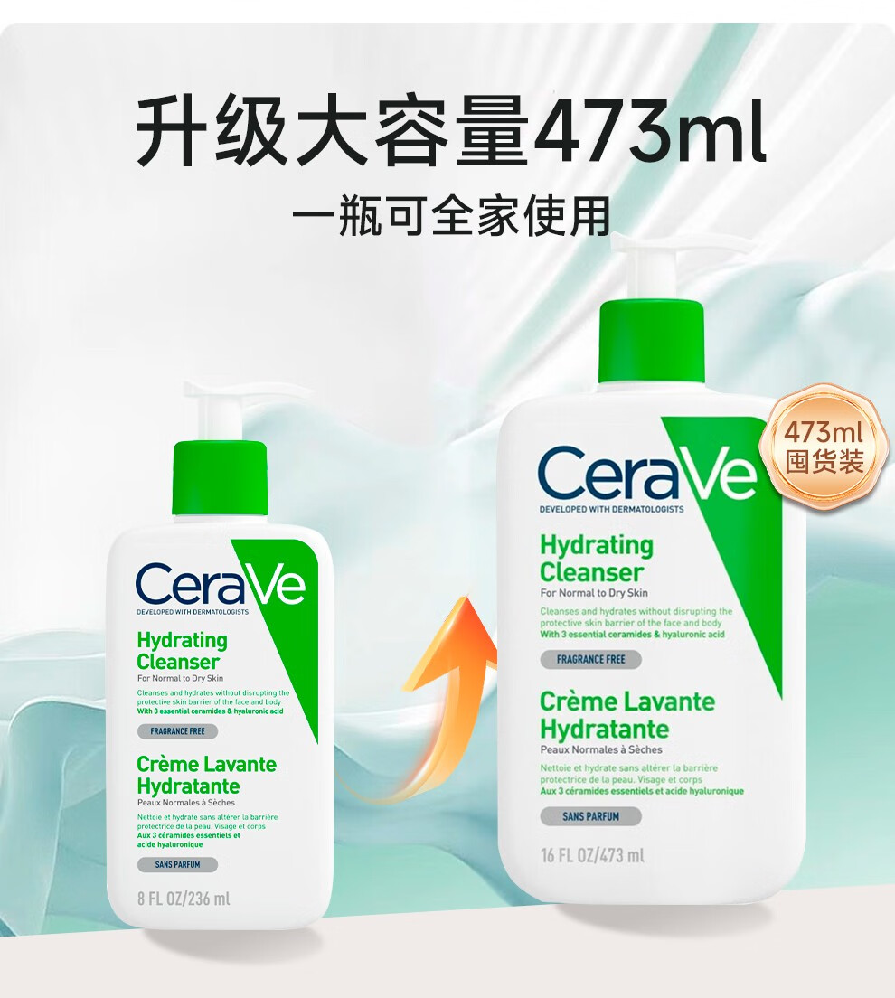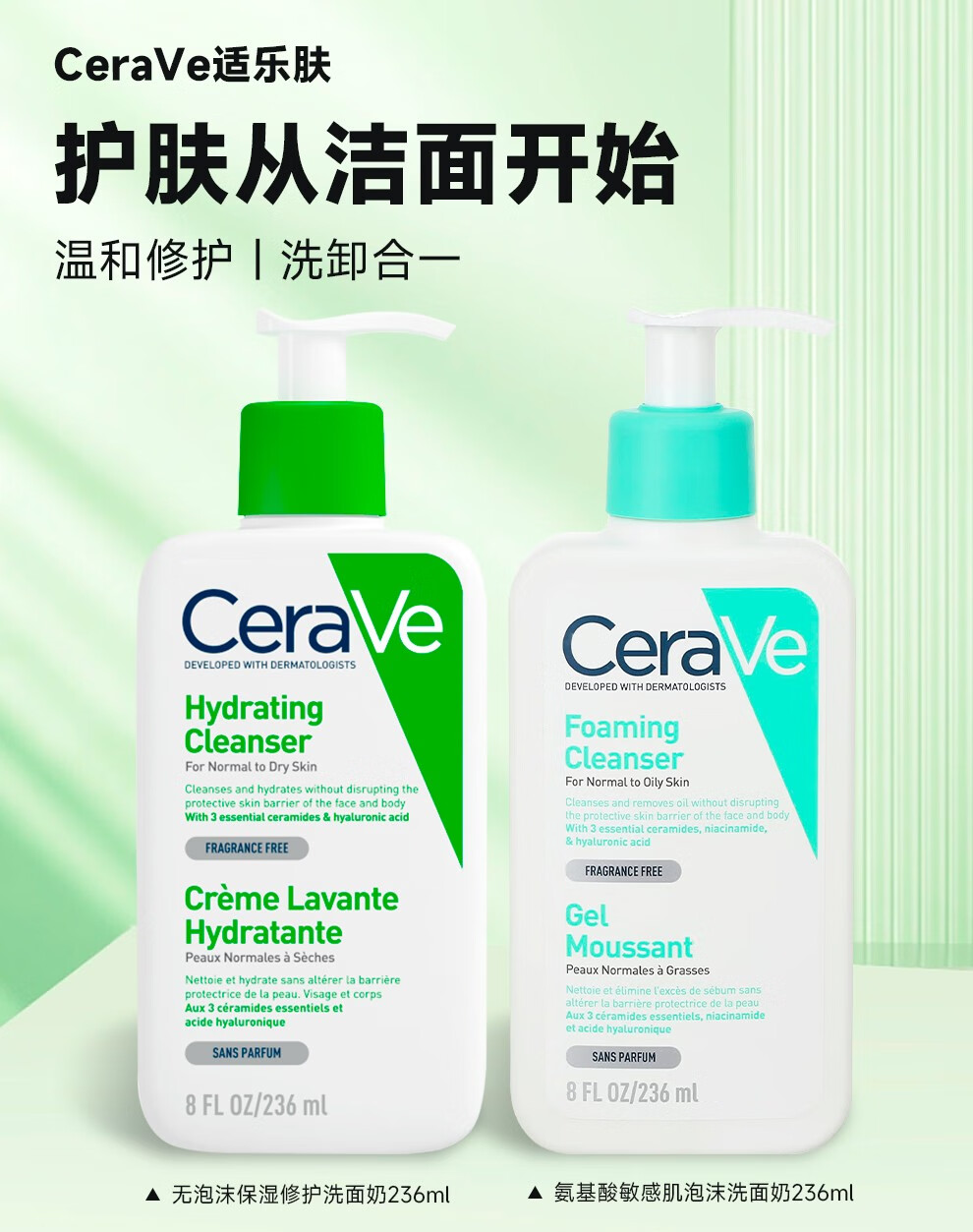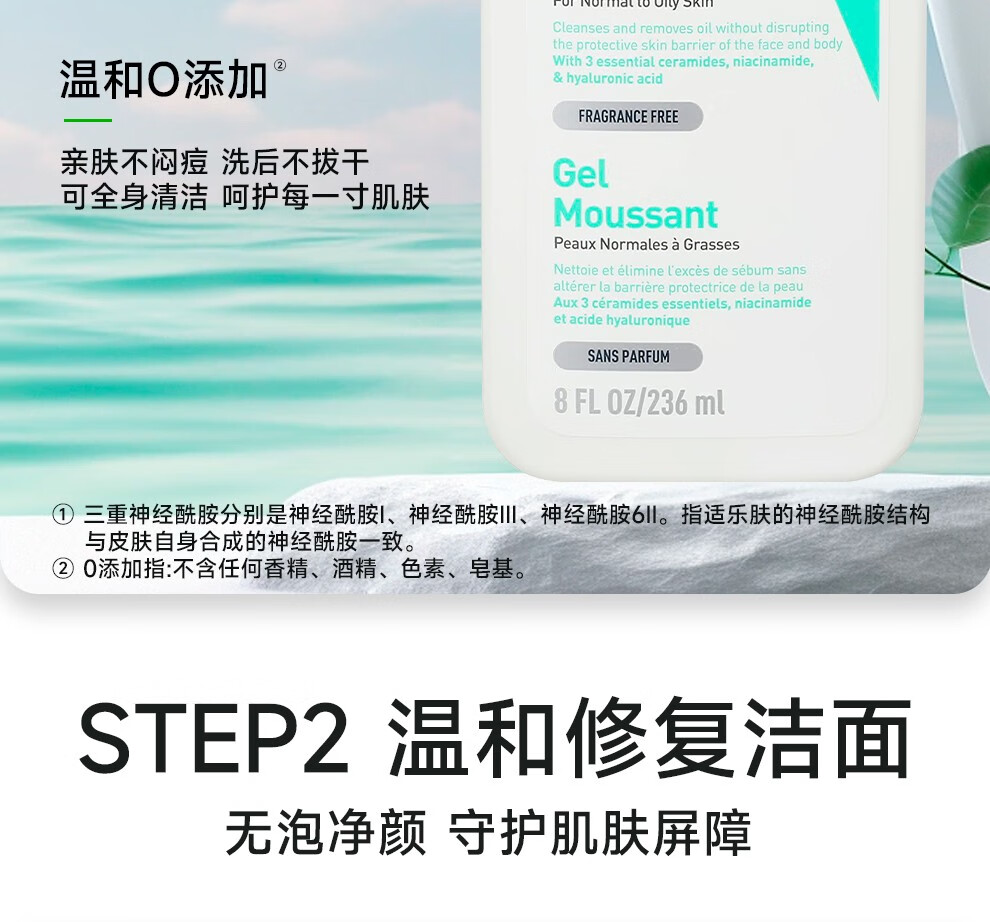 适乐肤(CeraVe)水杨酸洗面奶去角质洁面黑头控油洁面乳 氨基酸保湿修护 水杨酸洁面 236ml