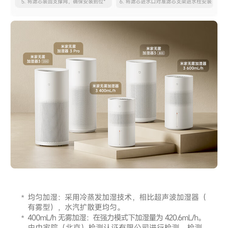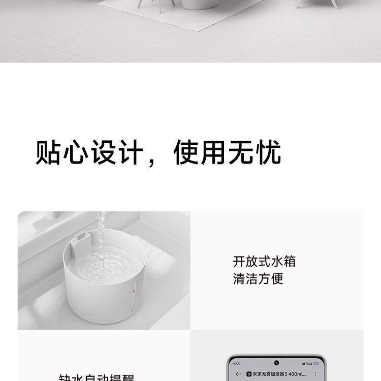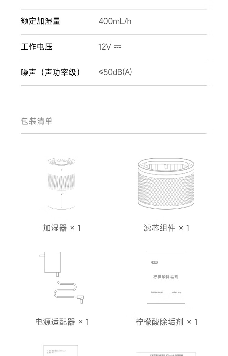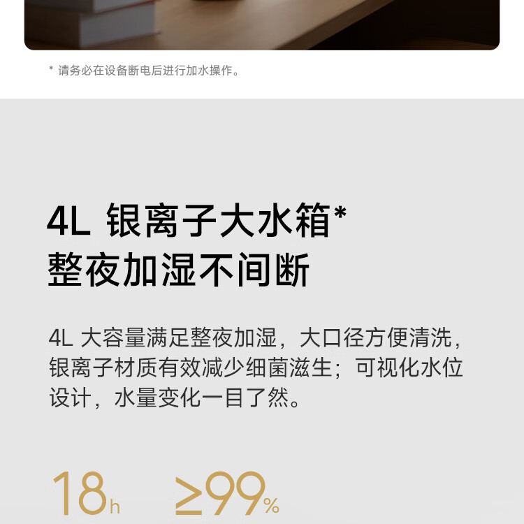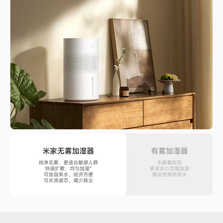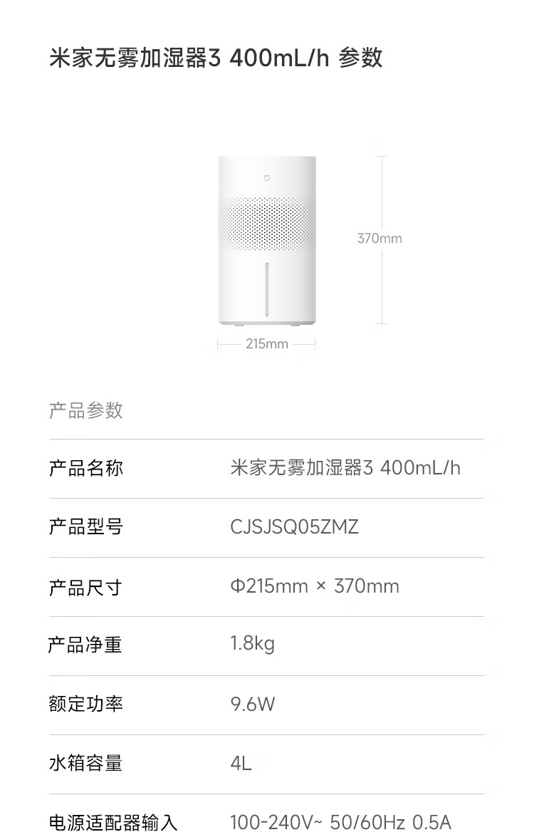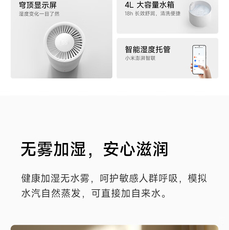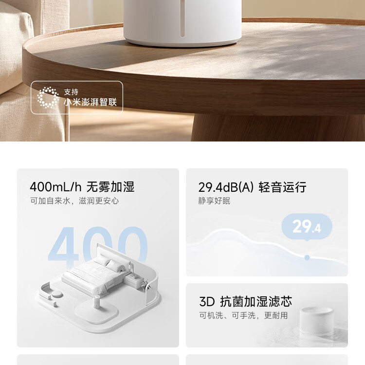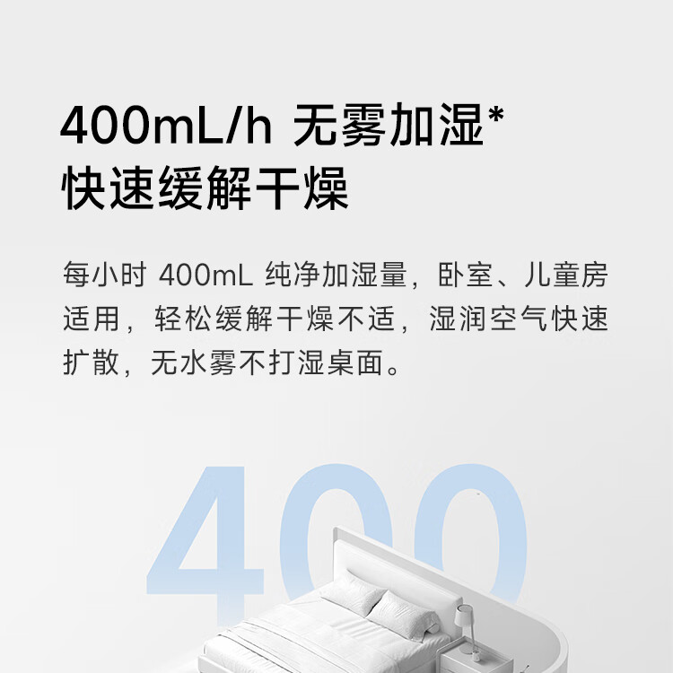 米家小米空气加湿器 无雾加湿器3 400mL/h快速加湿 家用卧室大容量 办公室婴儿孕妇 4L大容量 无雾加湿器3 400mL/h