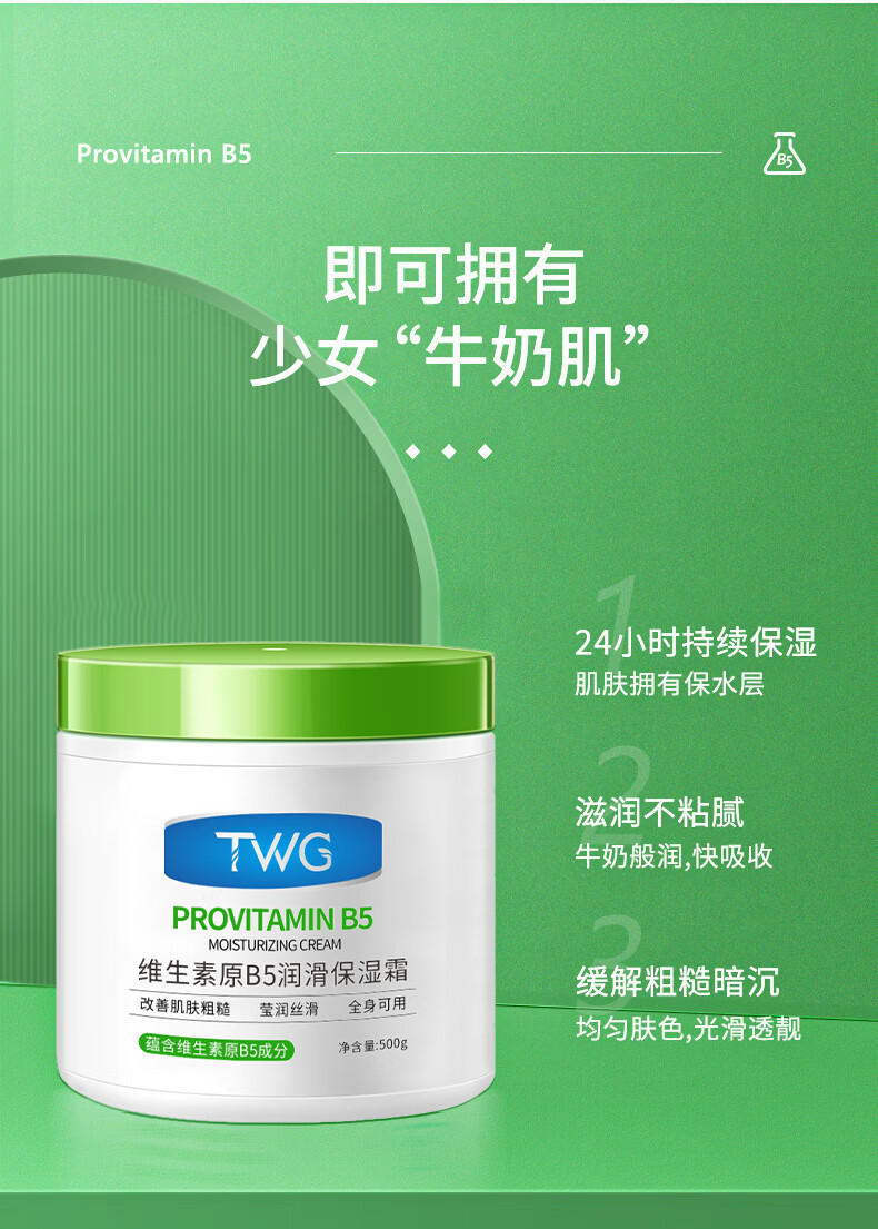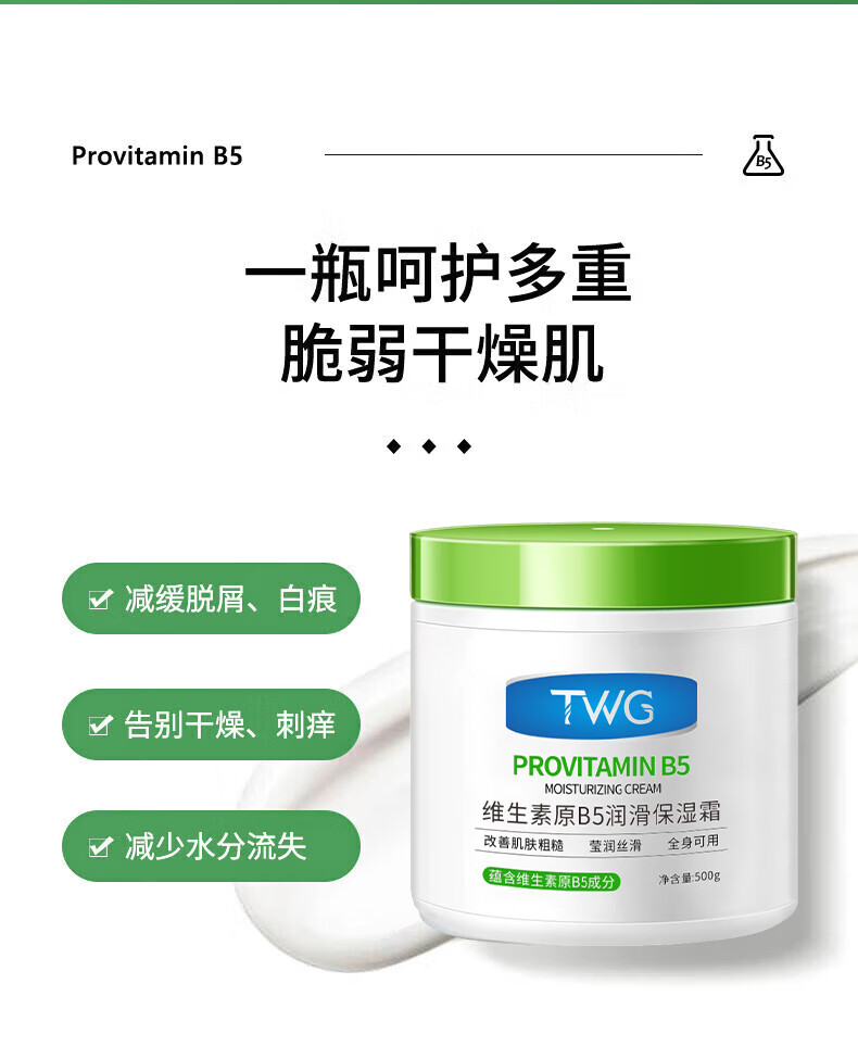 TWG维生素B5大白罐500g*1保湿霜滋润乳液防干裂身体乳凡士林面霜
