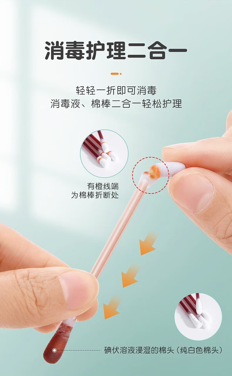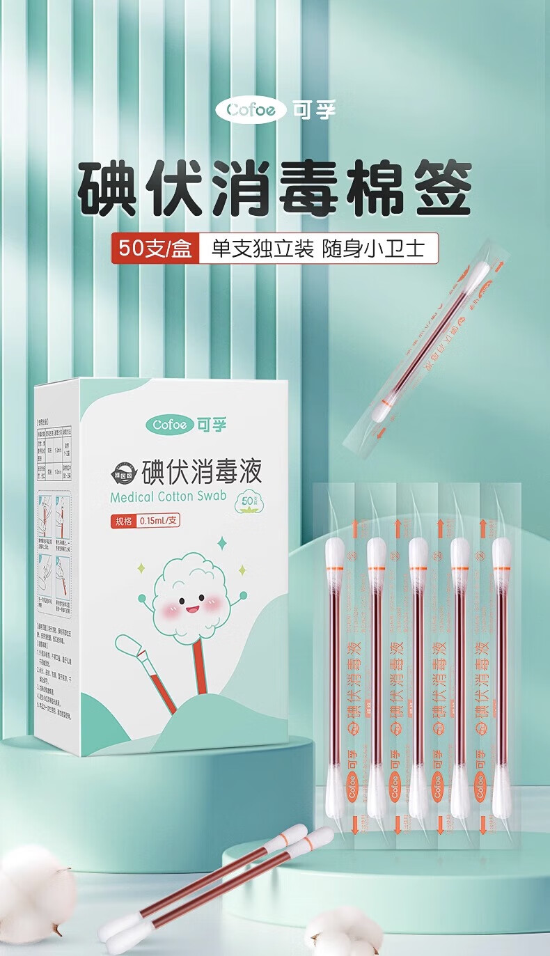 可孚碘伏消毒液棉签消字号婴儿肚脐伤口消毒杀菌0.15mL/支 50支装