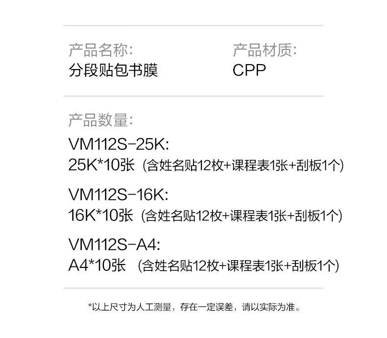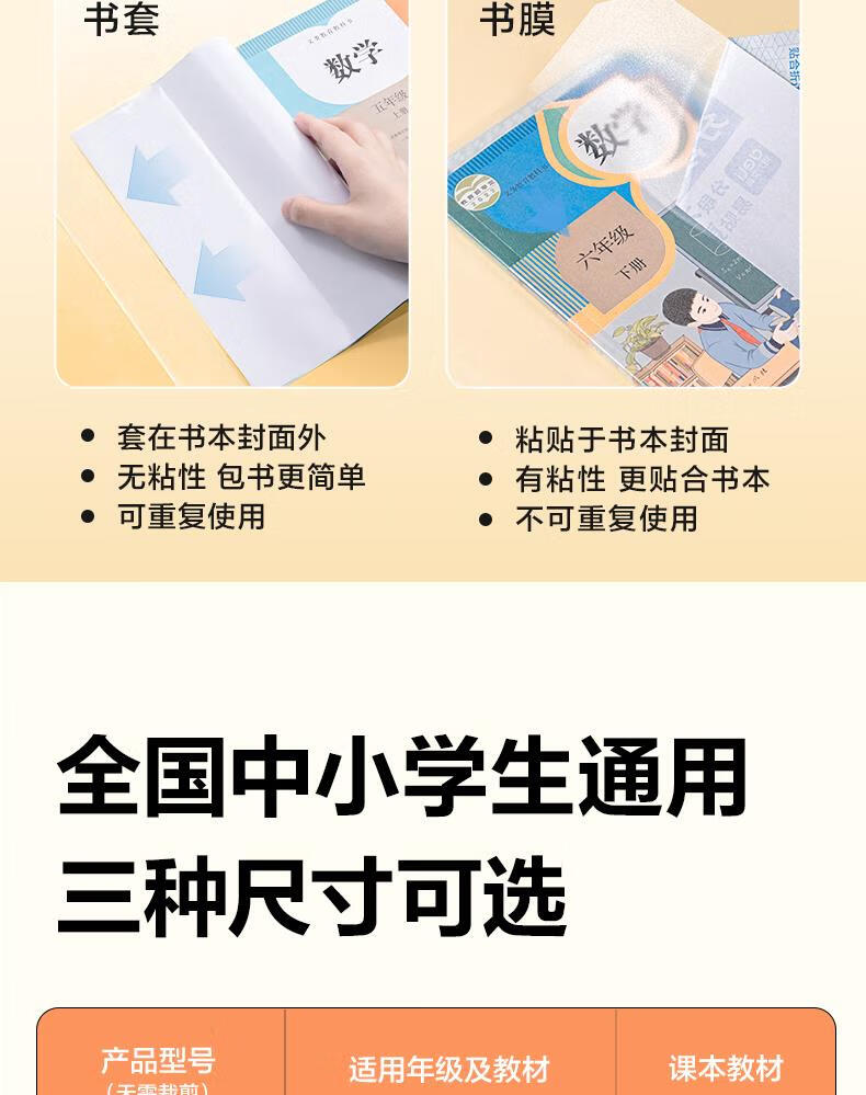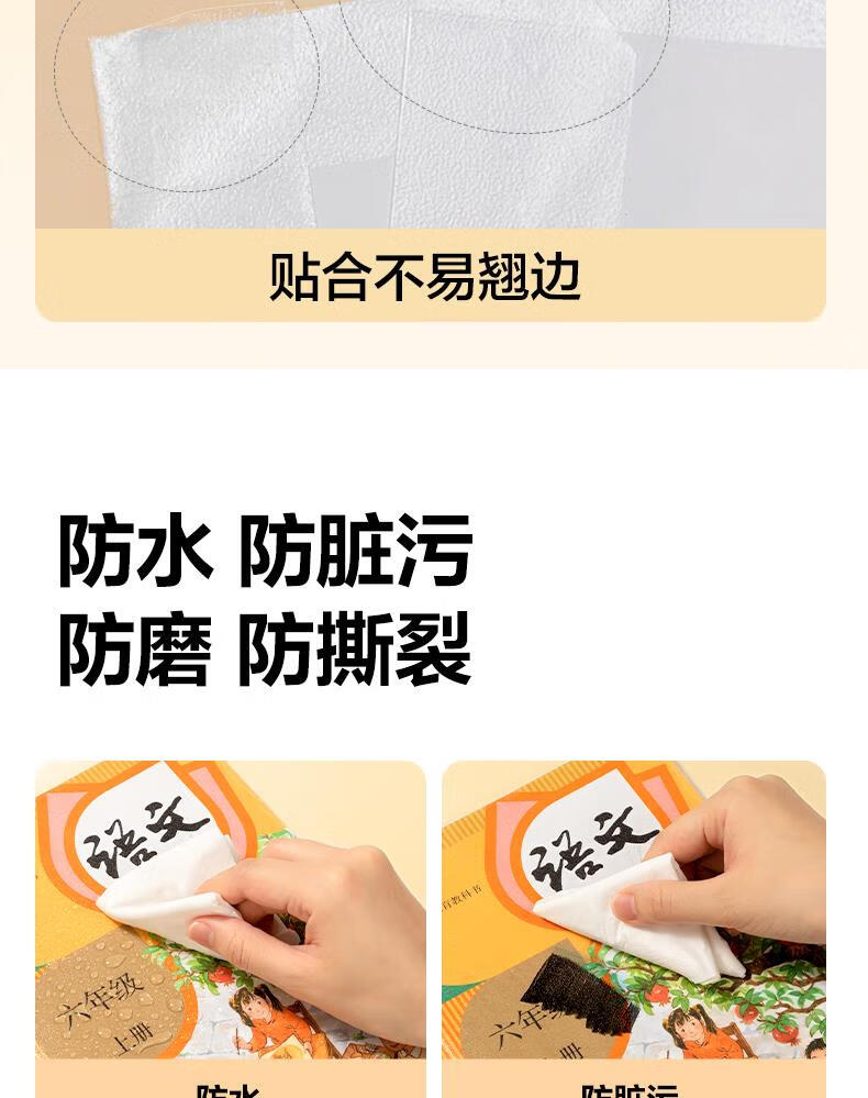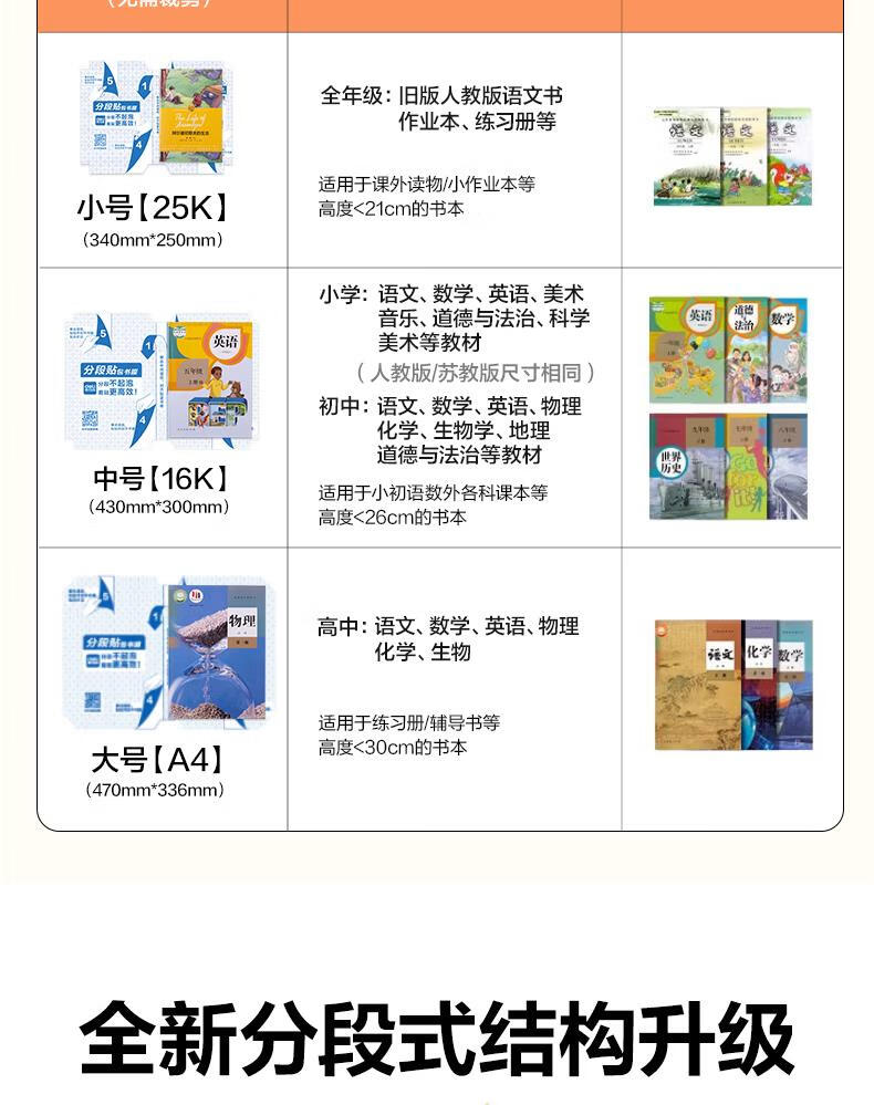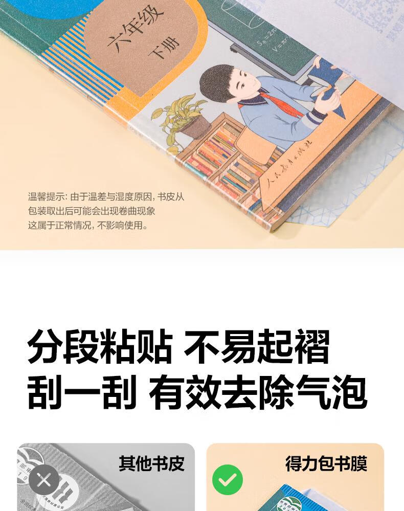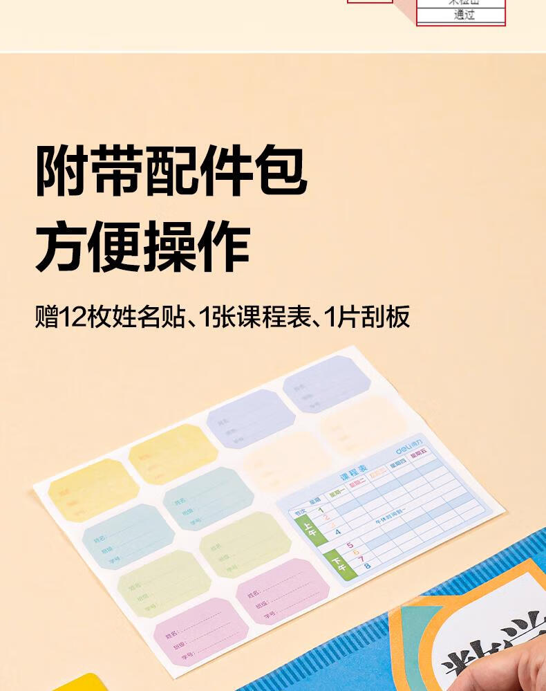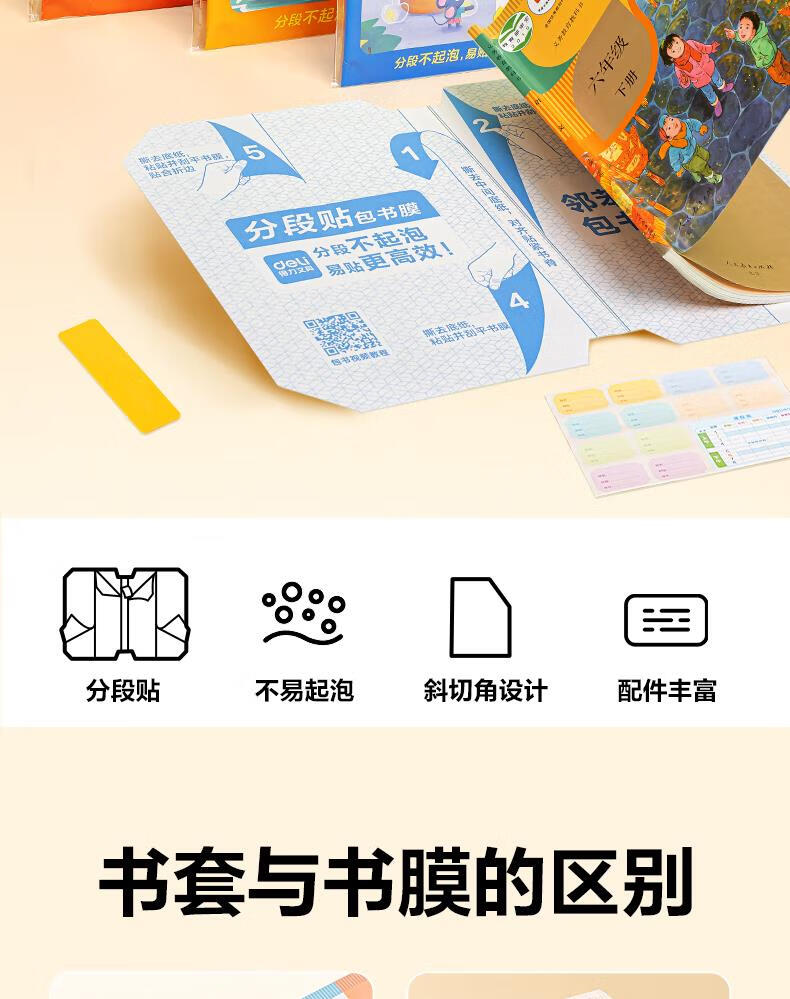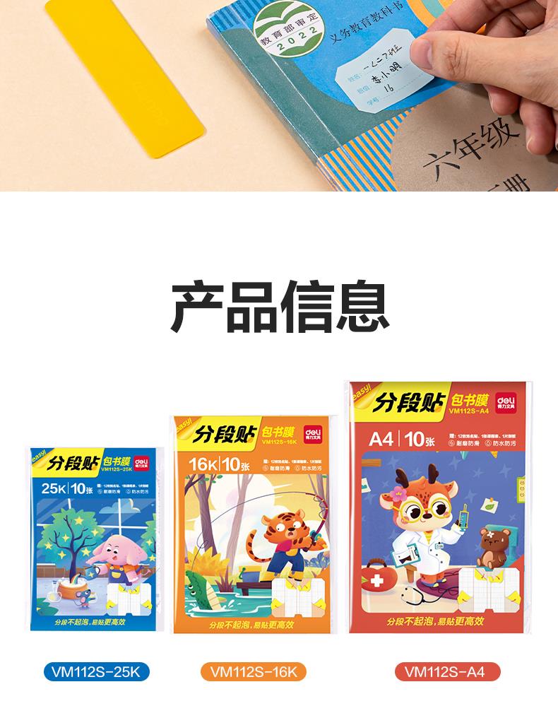 得力(deli)全新分段式包书皮 10张25K/小号分段包书膜分段易撕/防水防磨 赠刮板*1/姓名贴*12/课程表*1