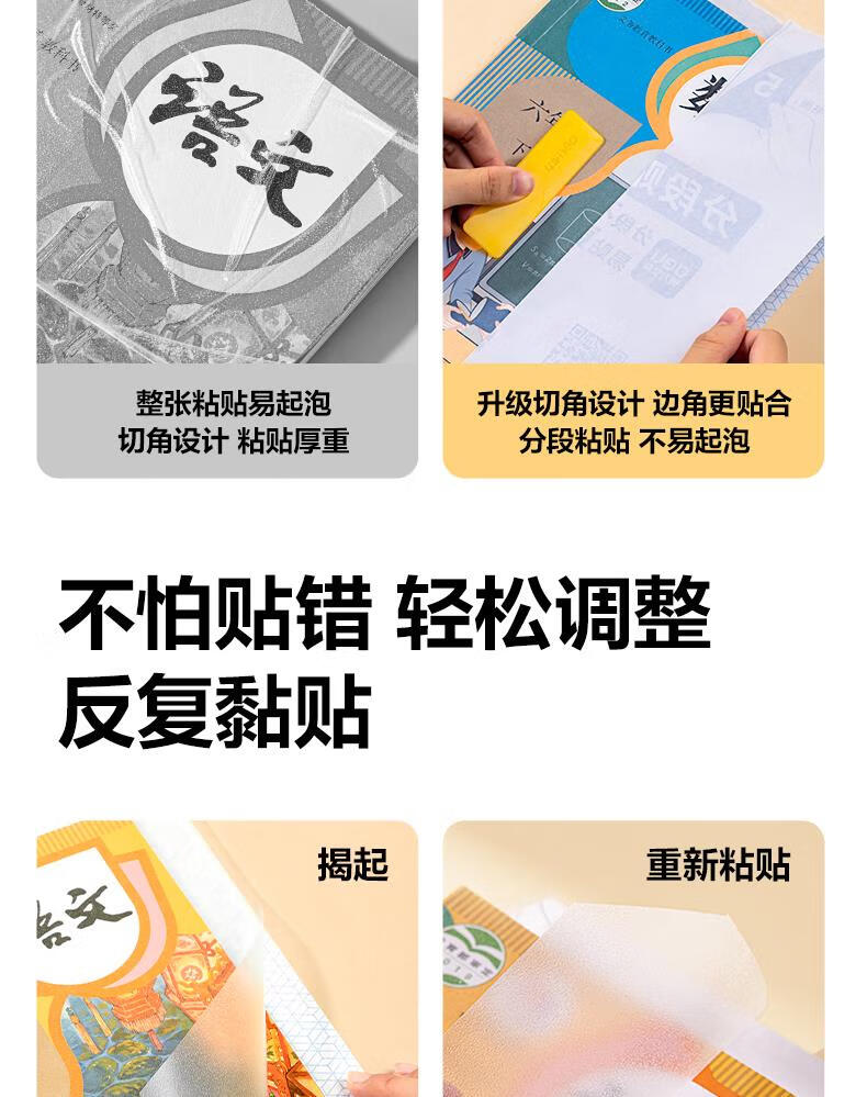 得力(deli)全新分段式包书皮 10张A4/大号分段包书膜分段易撕/防水防磨 赠刮板*1/姓名贴*12/课程表*1