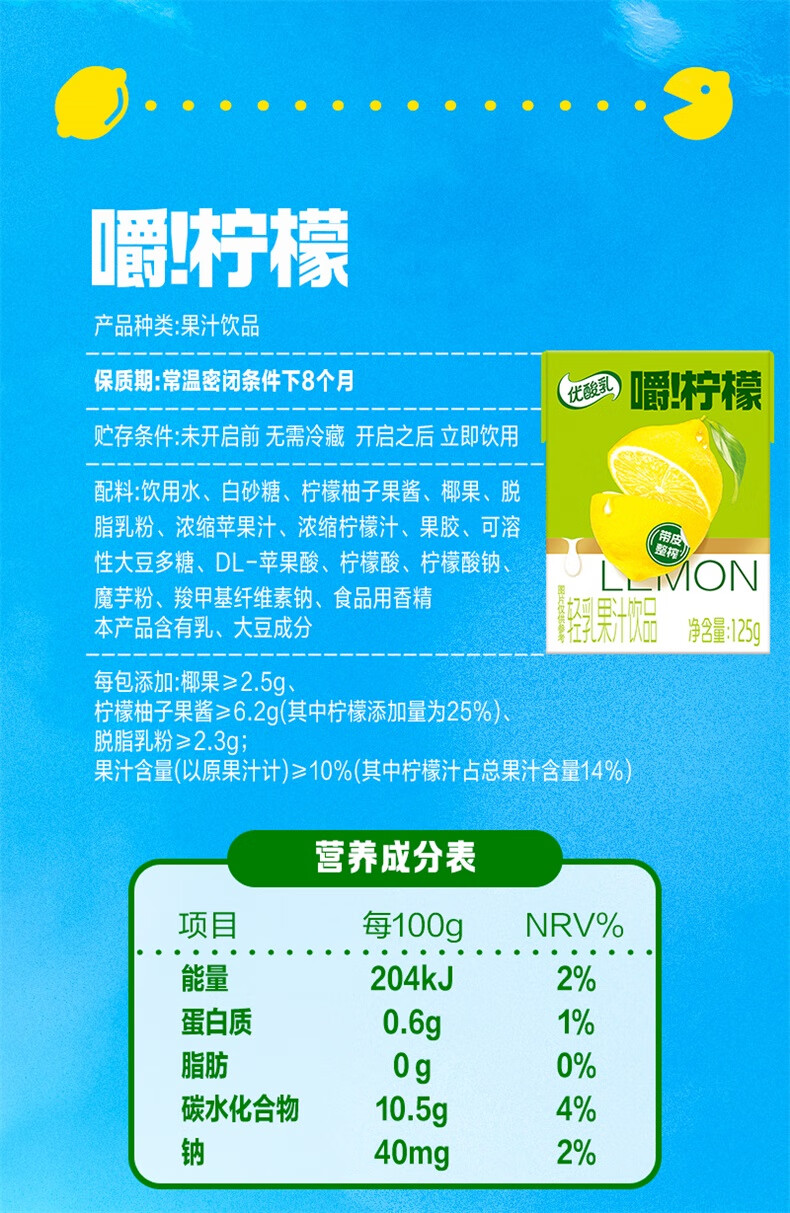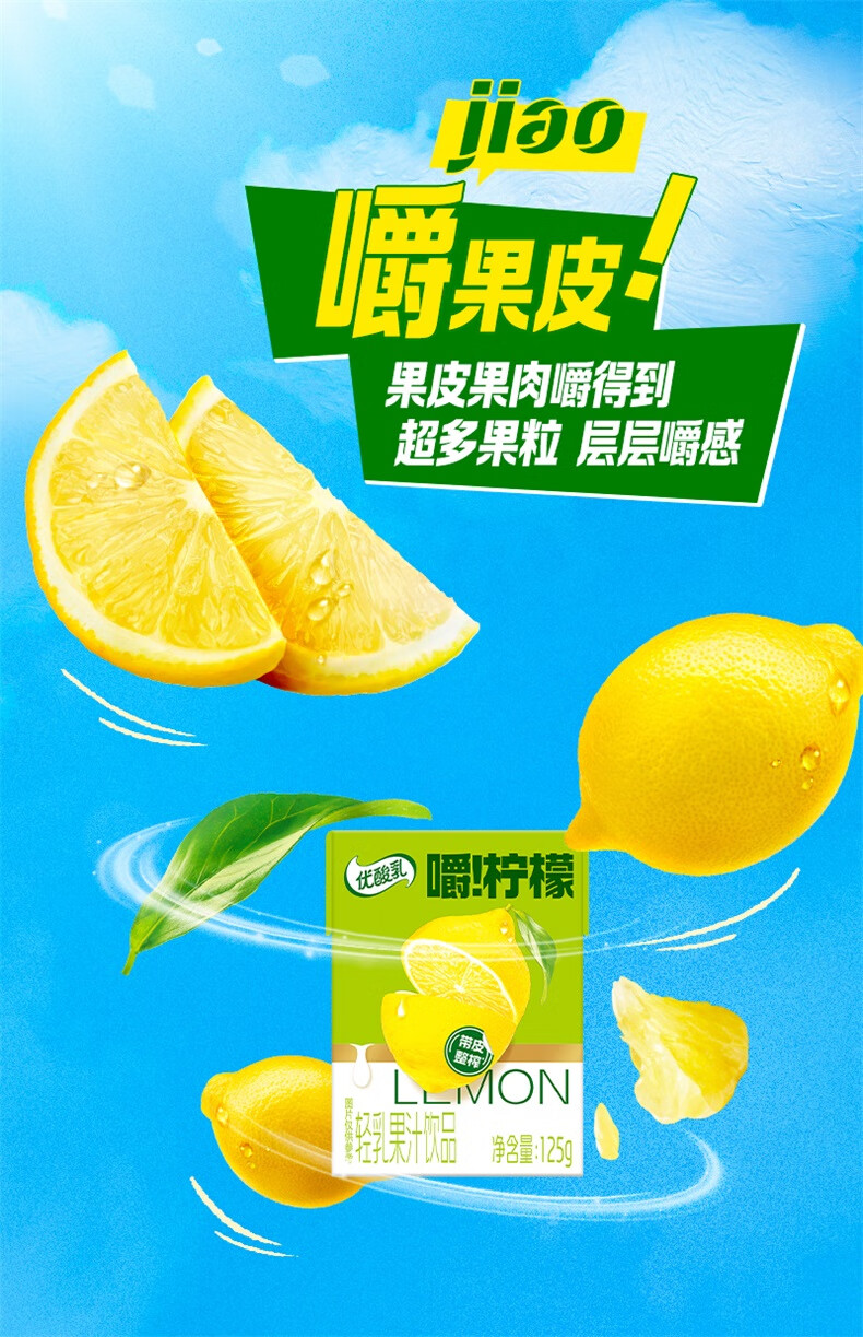 伊利优酸乳嚼柠檬轻乳果汁饮品 125g*8盒/箱