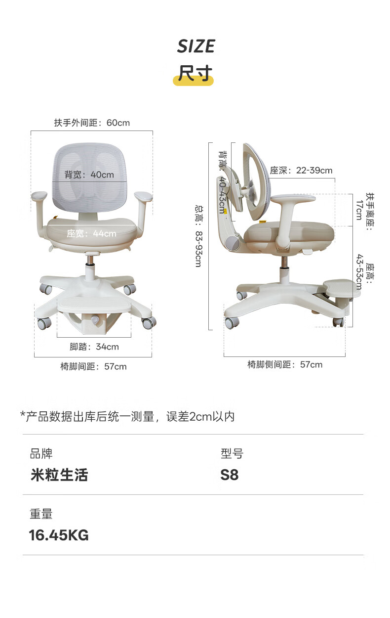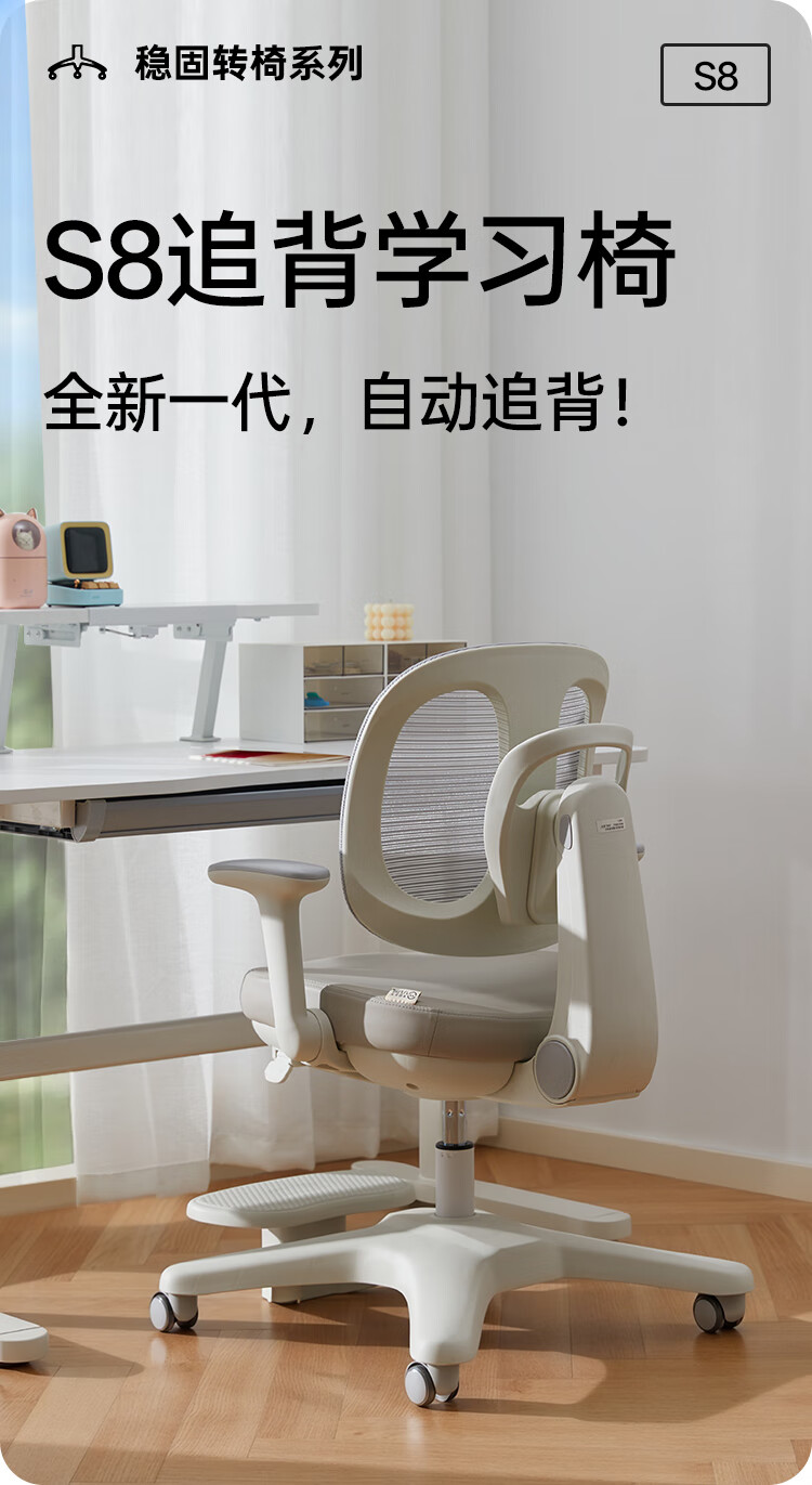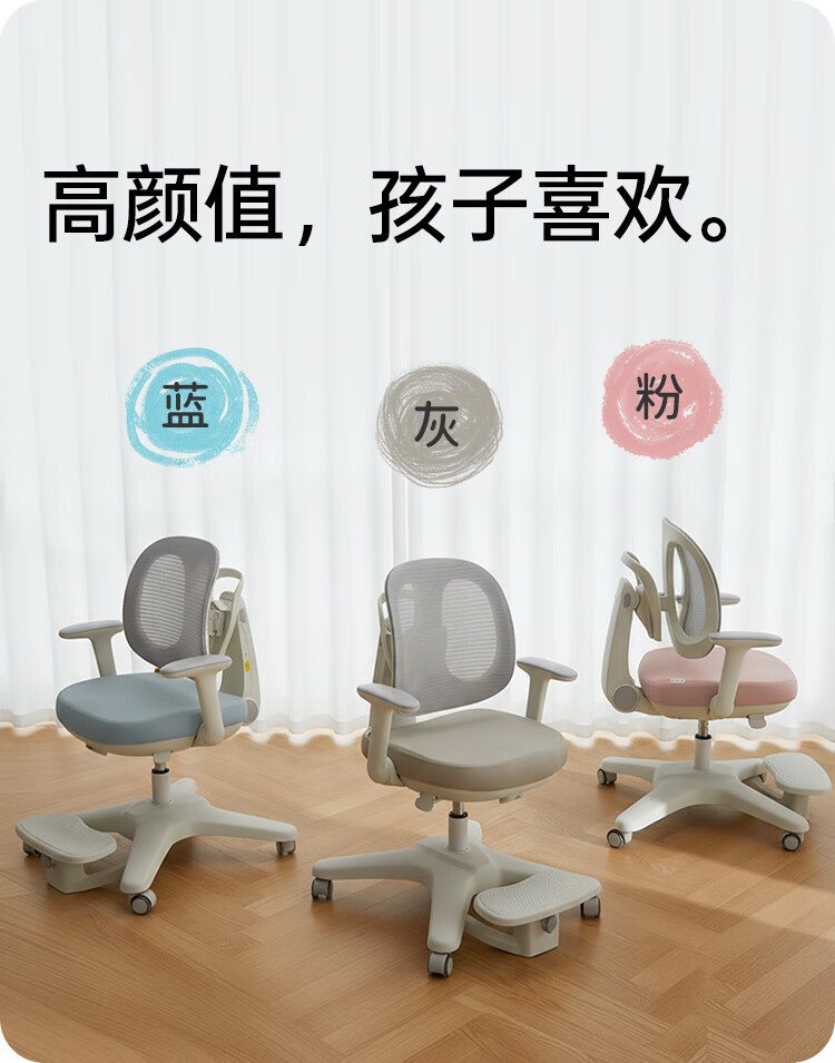 八九间S8儿童学习椅可升降调节小学生一键追背正姿椅升级双背坐椅149W蓝