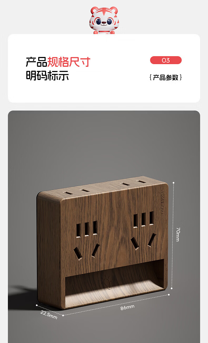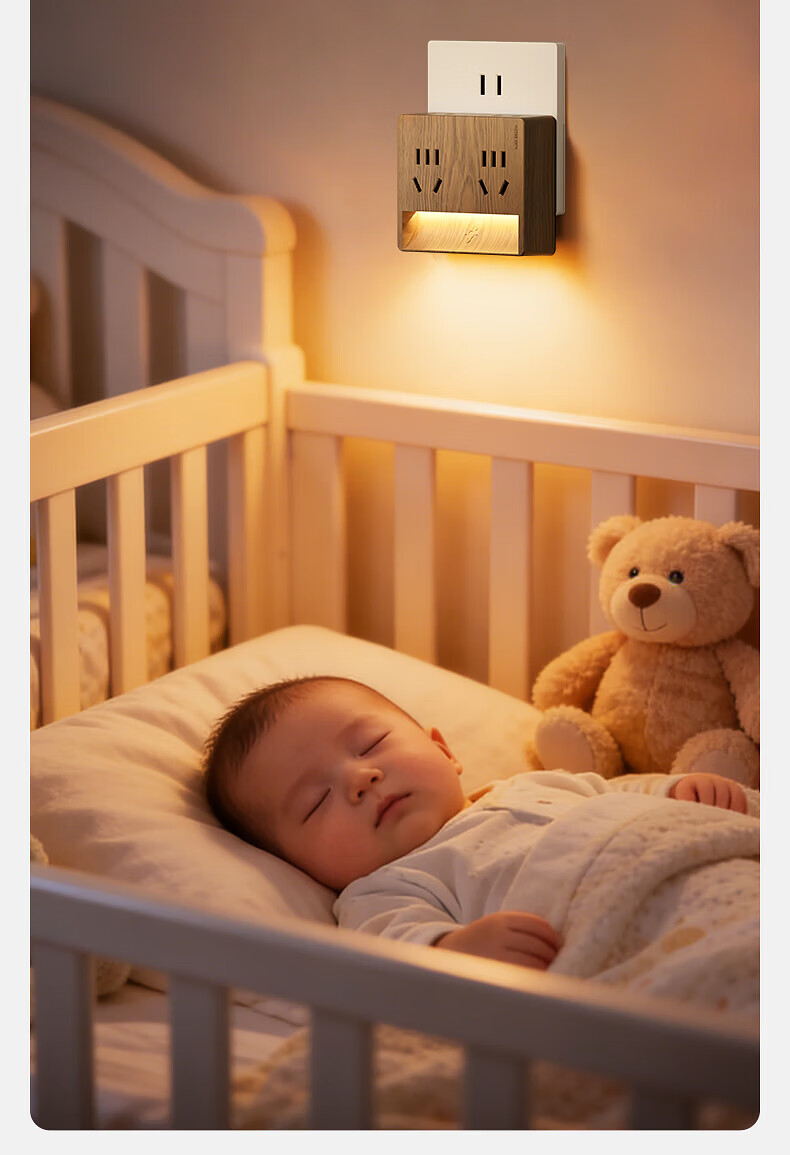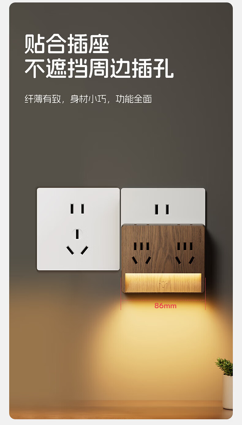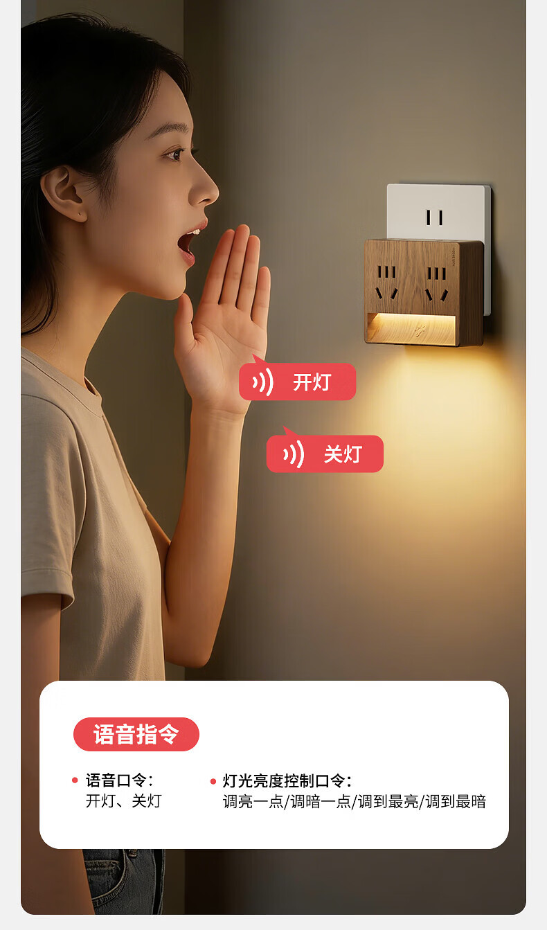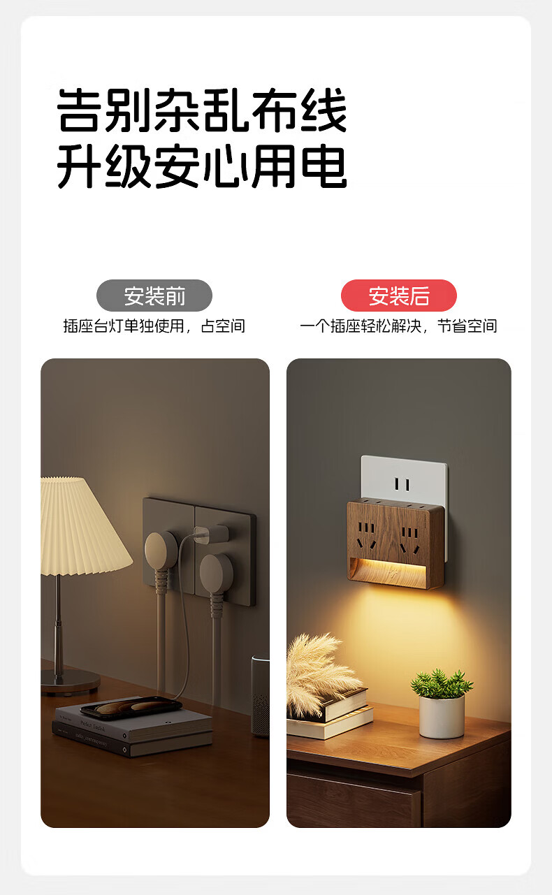 国际电工无线插座转换器一转四扩展插座复古木纹床头小夜灯全光谱护眼插板 【木纹触摸款】一转四夜灯插座