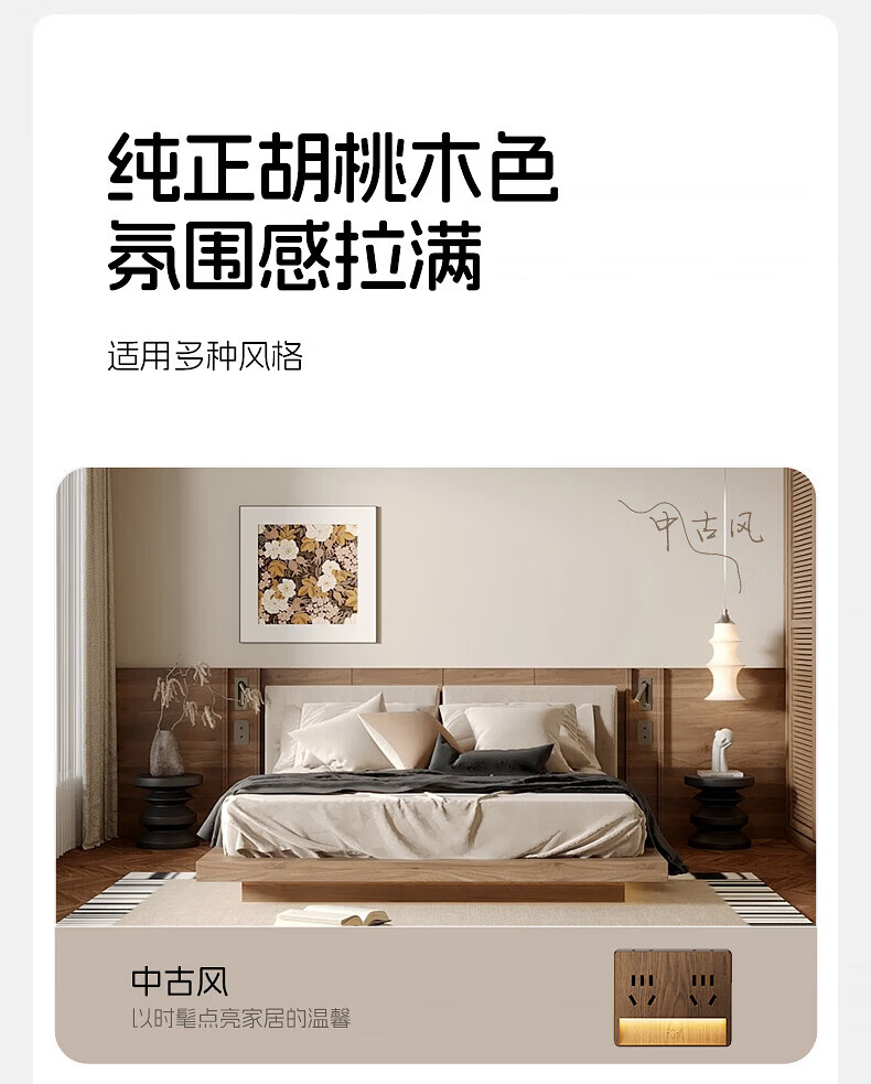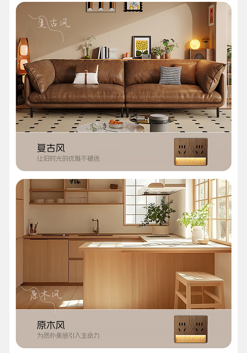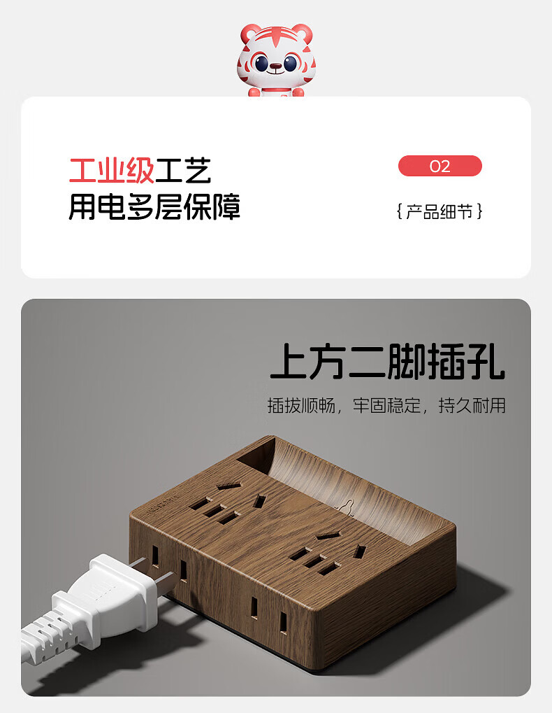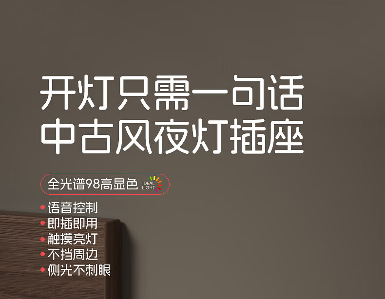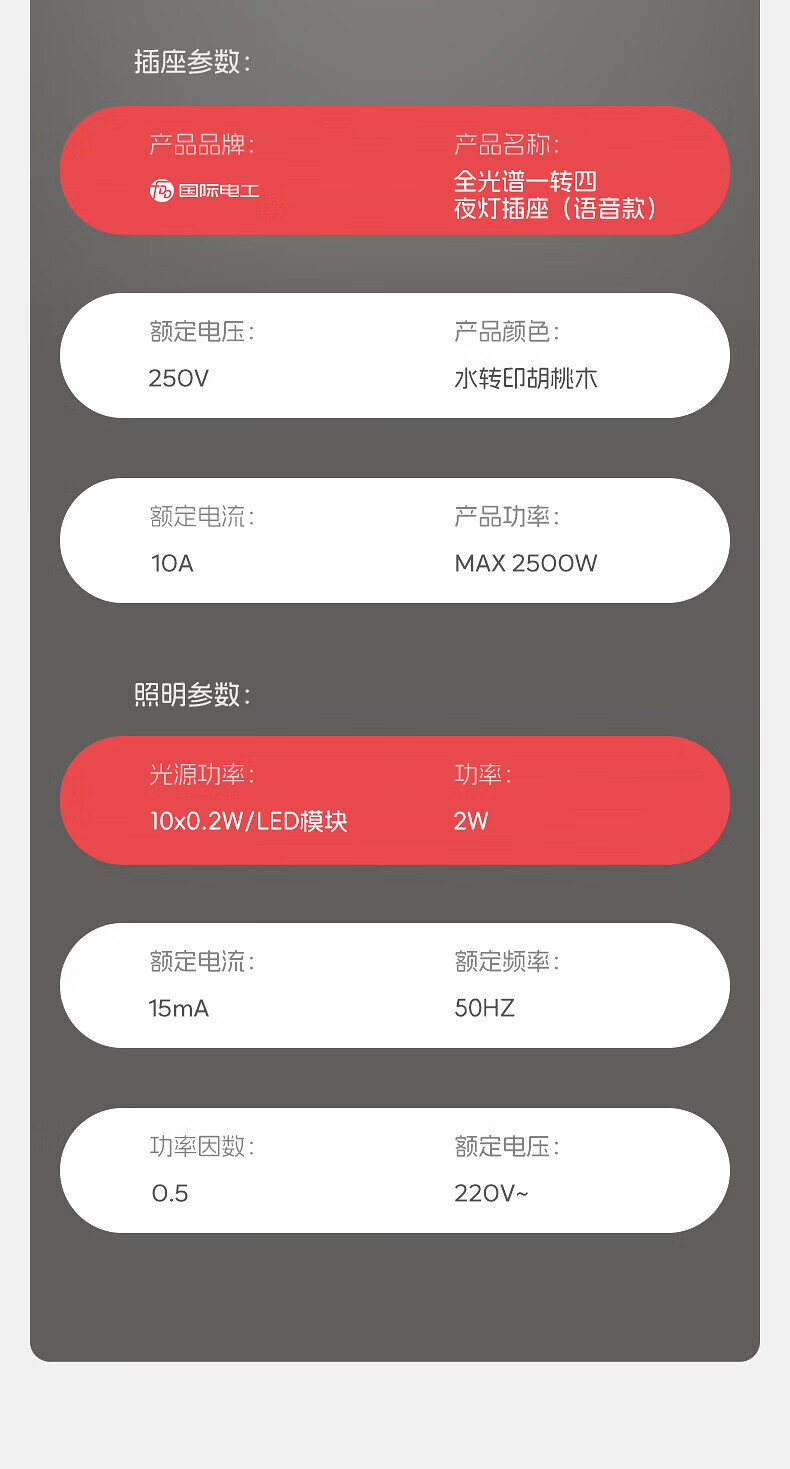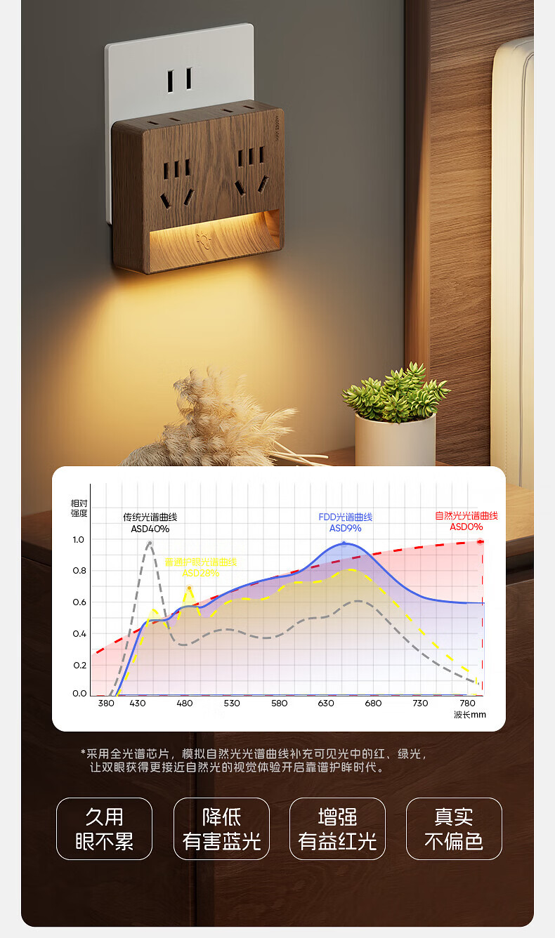 国际电工无线插座转换器一转四扩展插座复古木纹床头小夜灯全光谱护眼插板 【木纹触摸款】一转四夜灯插座