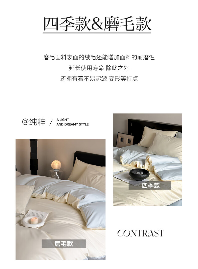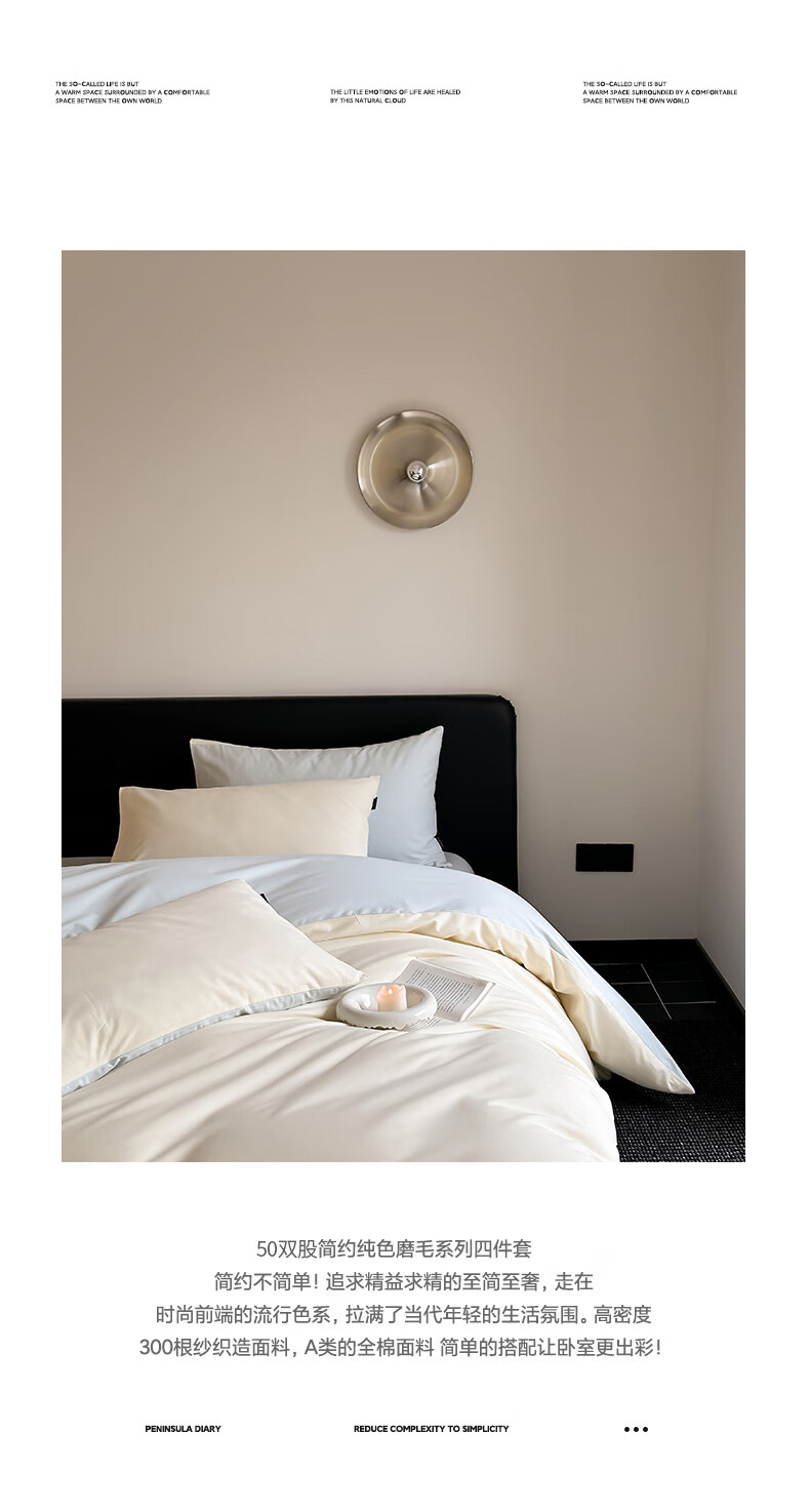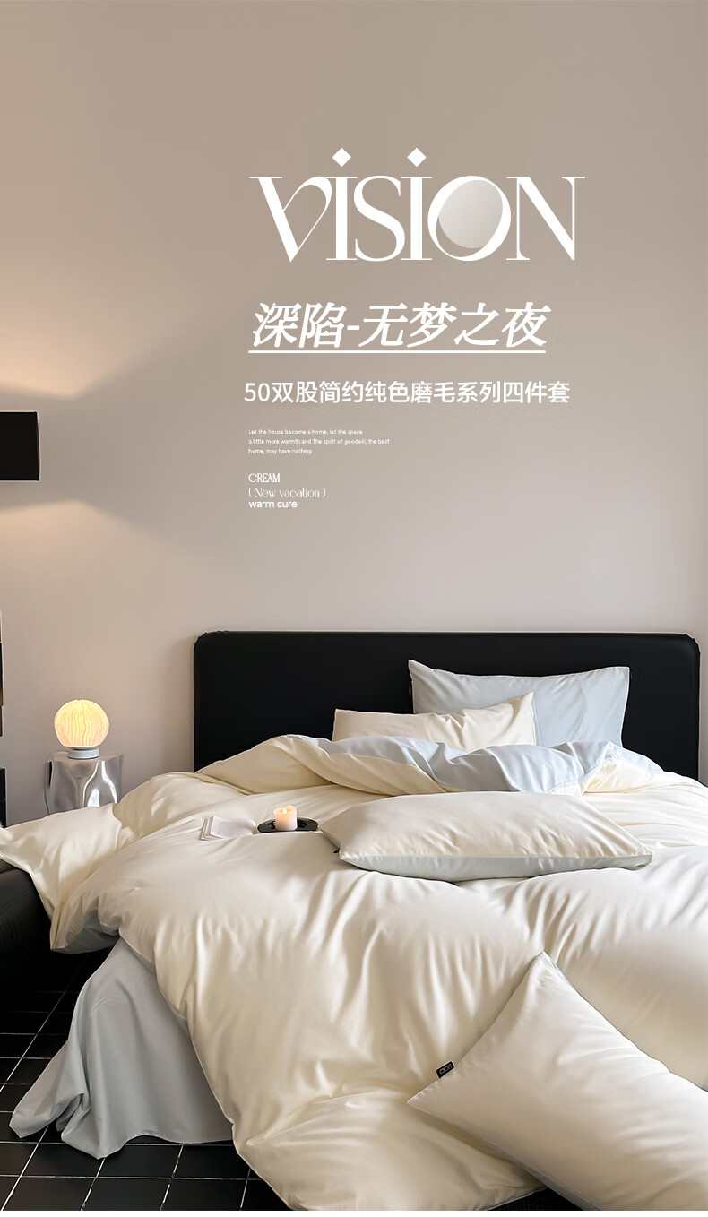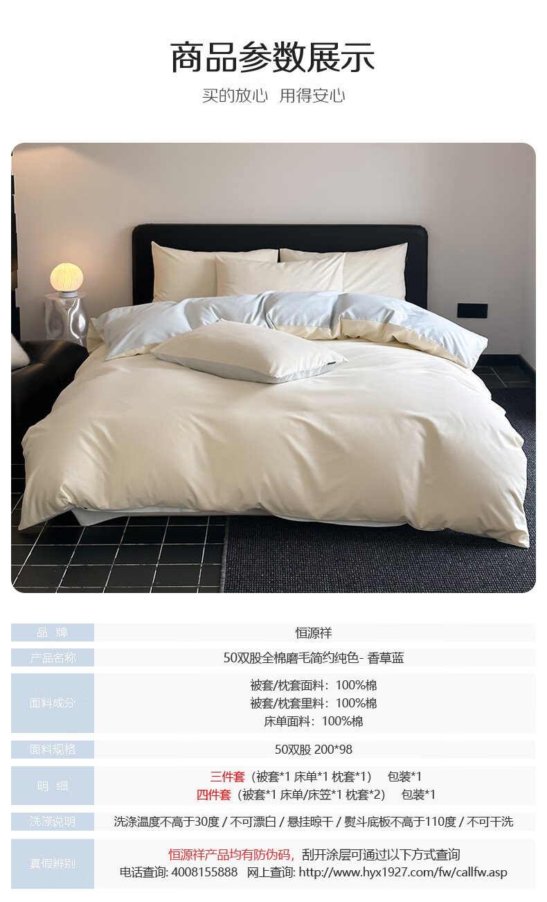 恒源祥全棉磨毛四件套50双股简约纯色被罩床笠款床单被套枕套床上三件套 流花白【100%全棉 磨毛纯色】 50支 1.2米 床单款 (被套150*200cm) 三件套