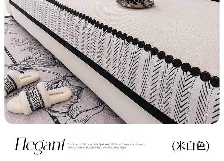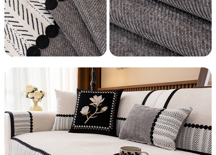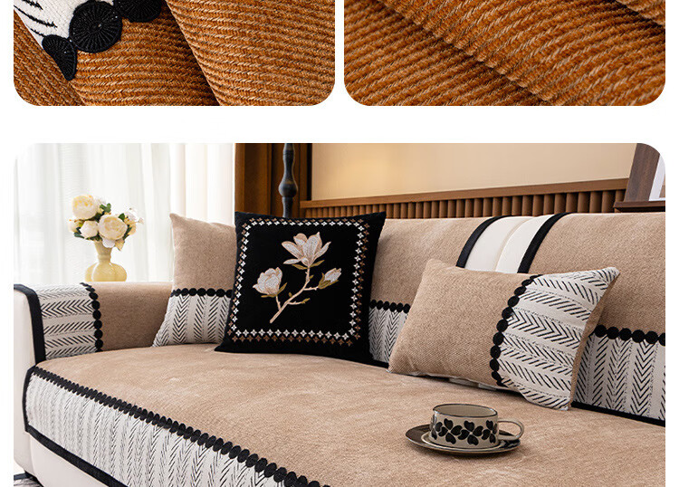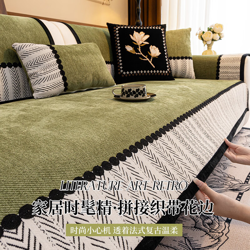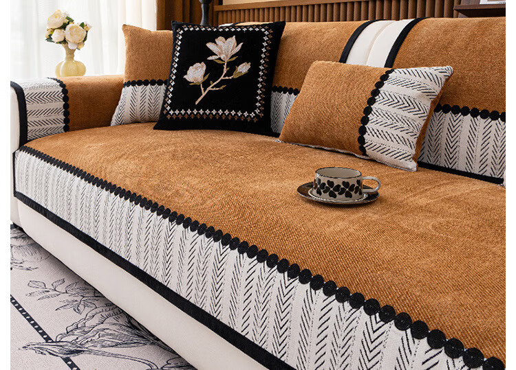 臻昔雪尼尔沙发垫四季通用新款高档轻奢流行防滑沙发坐垫子盖布巾 羽叶-蓝色【四季款】 90cm*280cm