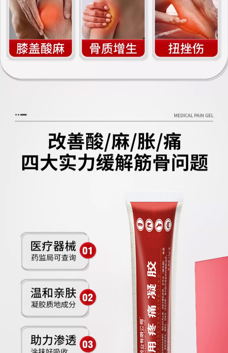宝元堂医用疼痛凝胶肩周炎腱鞘炎筋骨康医用冷敷凝胶消肿止痛腰间盘官方正品 一盒体验装[贵在运费]