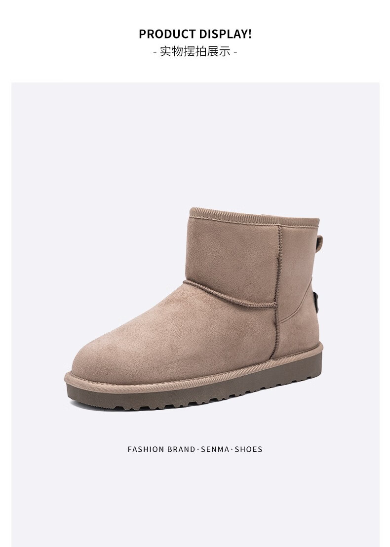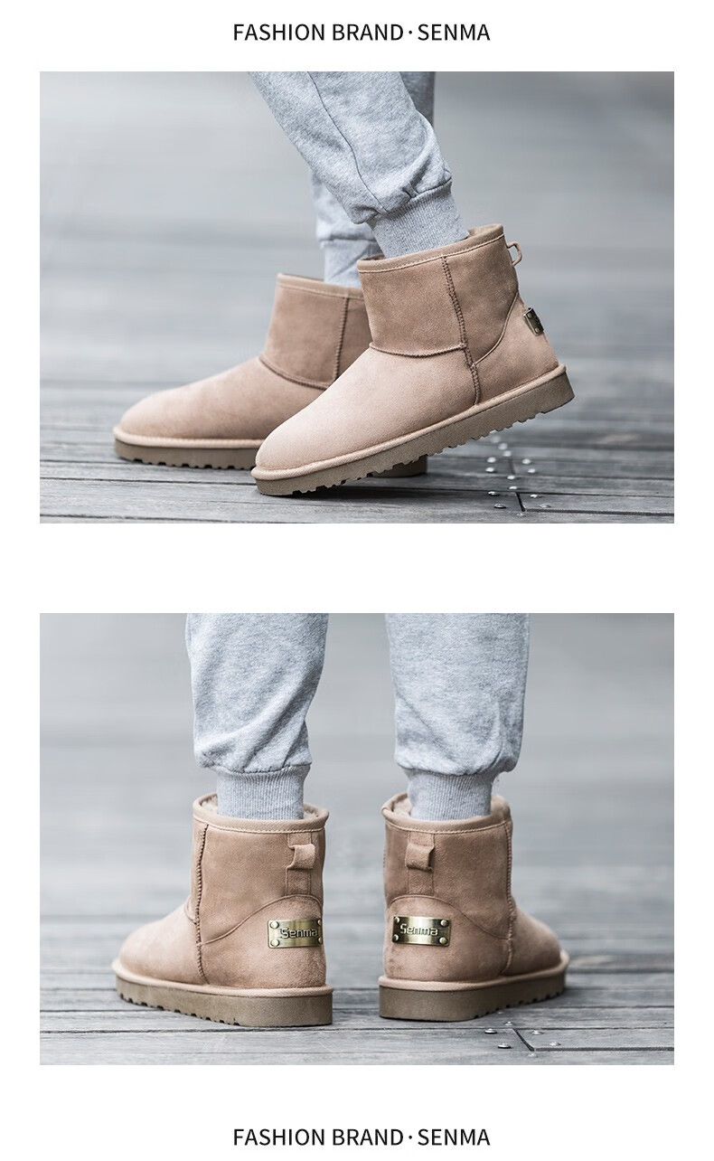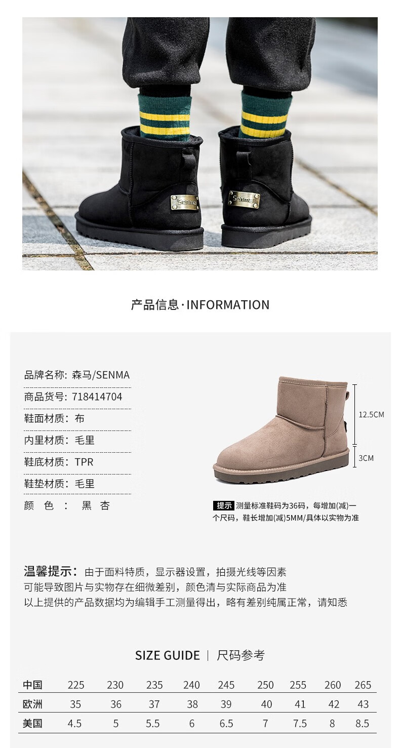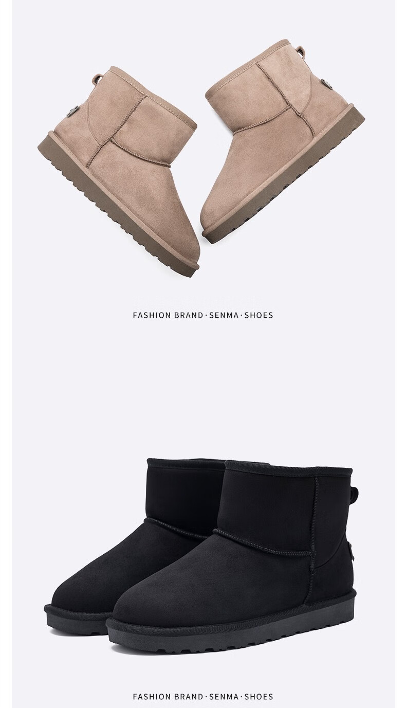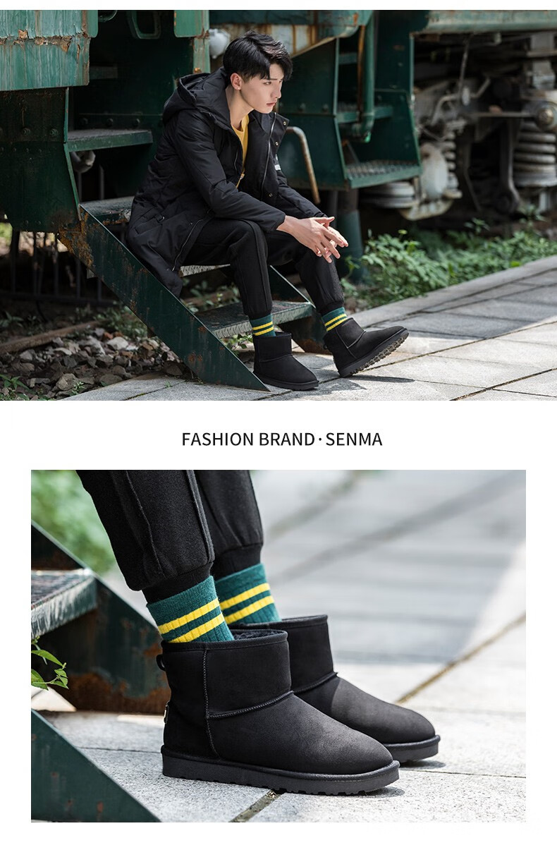 森馬(senma)加绒雪地靴男靴子冬季保暖东北大棉鞋男士面包鞋防滑低筒加绒棉靴 黑色 42