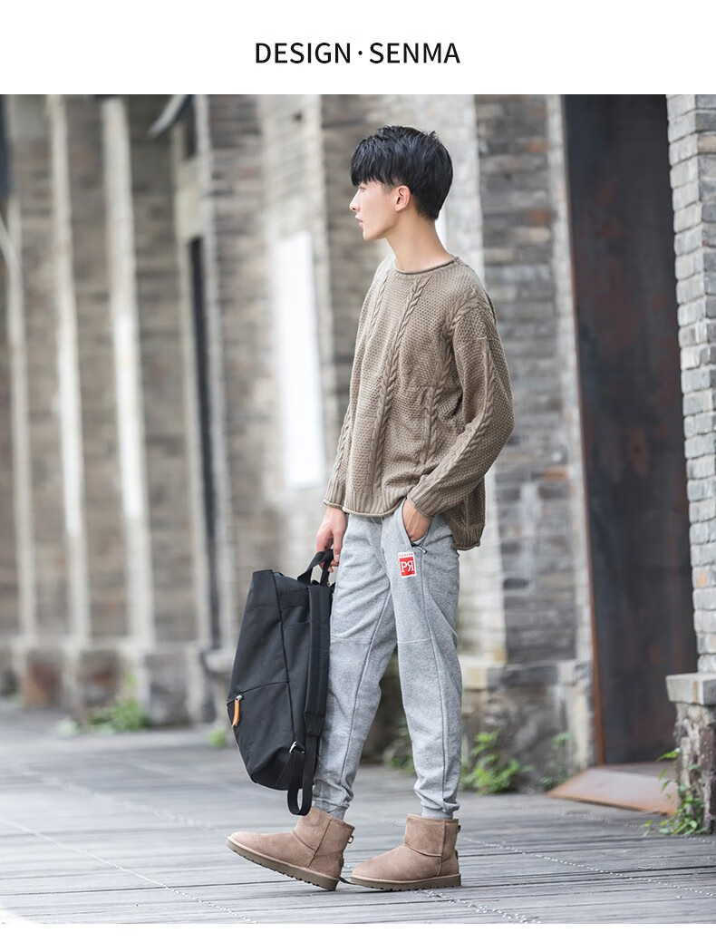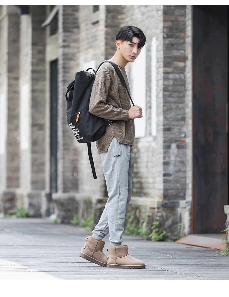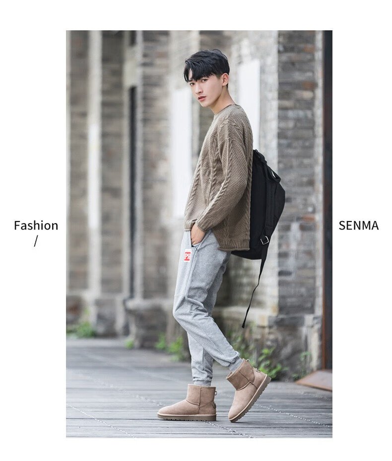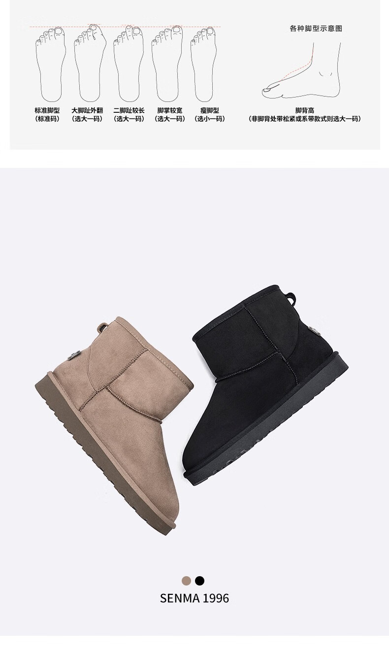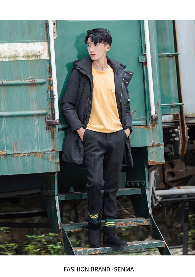 森馬(senma)加绒雪地靴男靴子冬季保暖东北大棉鞋男士面包鞋防滑低筒加绒棉靴 黑色 42