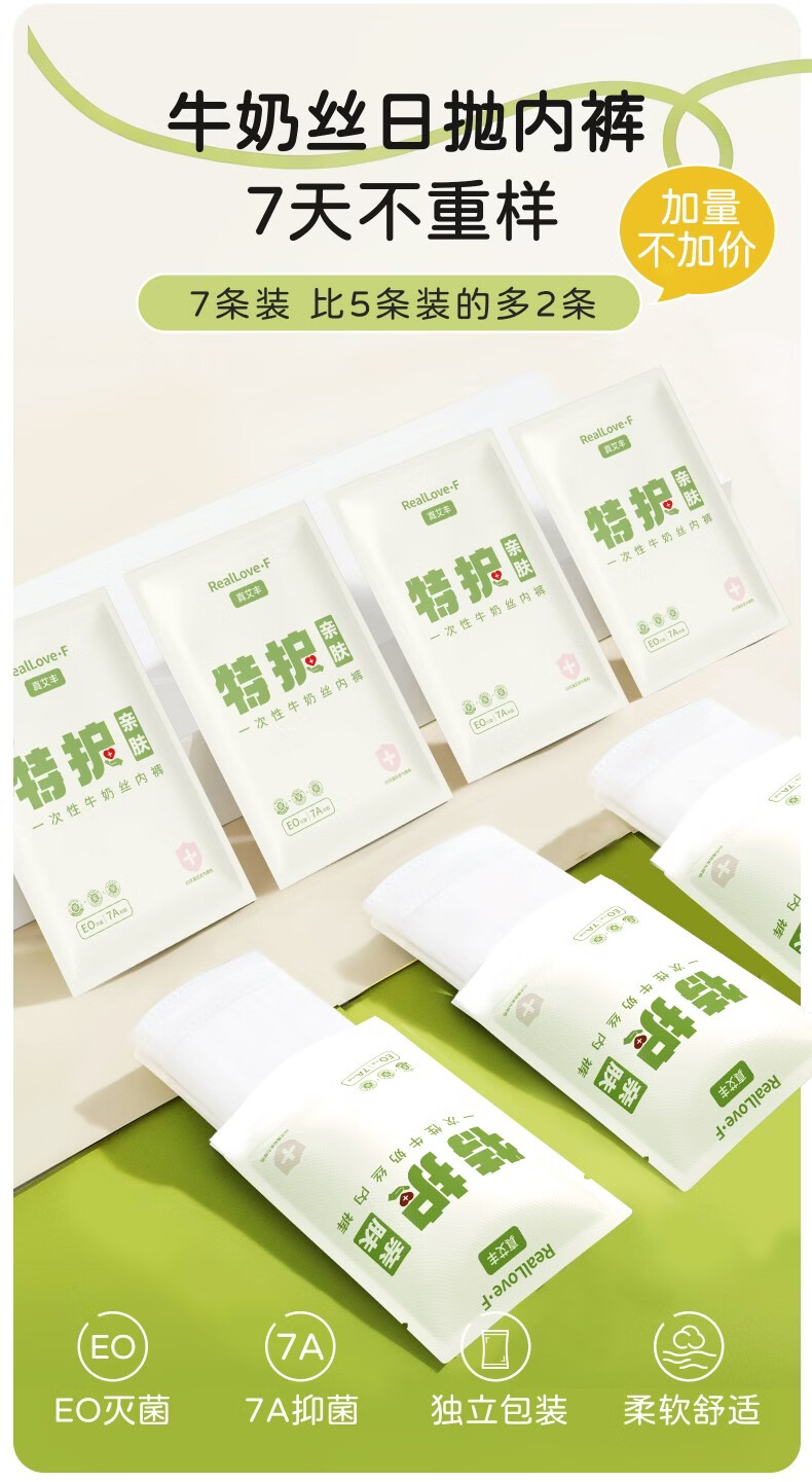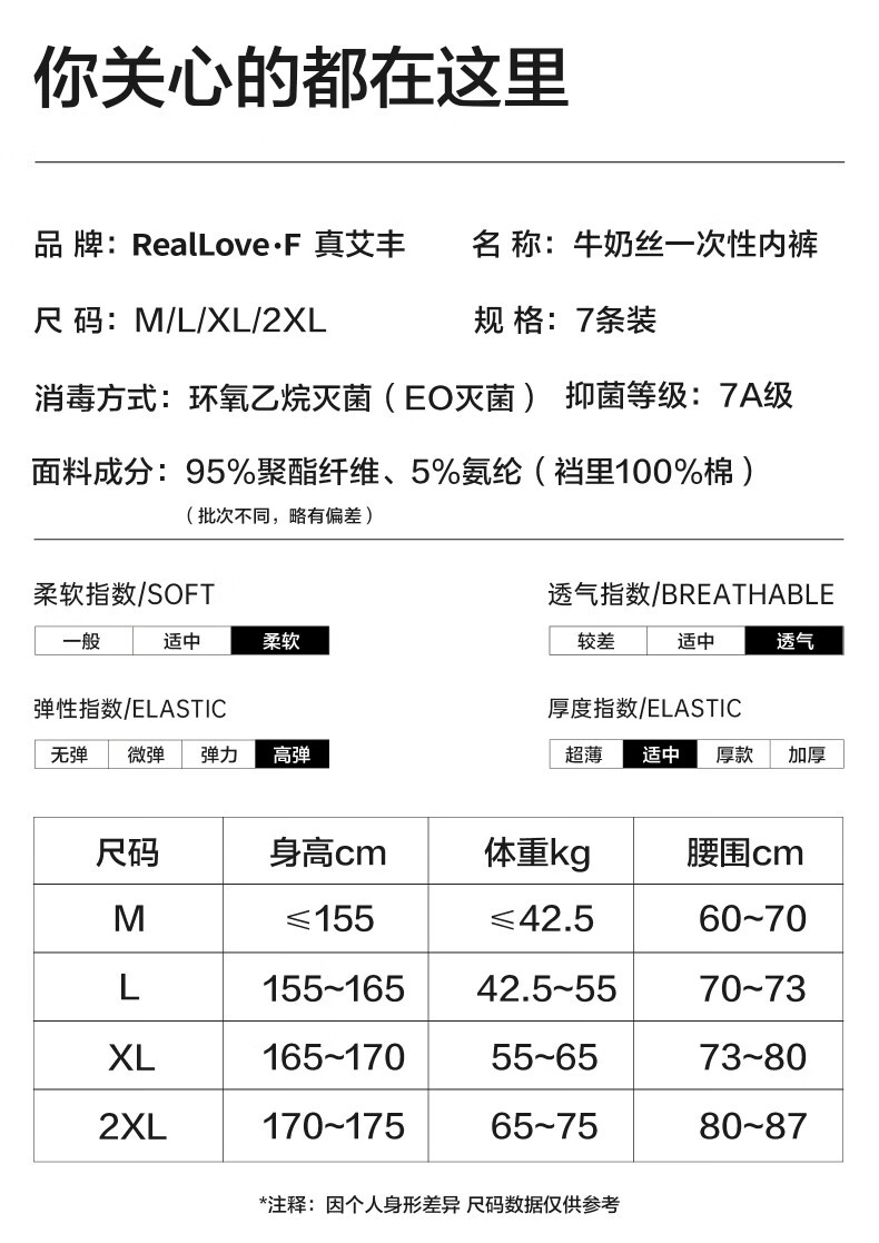 REALLOVE·F女款日抛裤月子产妇棉无菌独立包装高腰大码旅游一次性灭菌短内裤 7条装 2XL码【适合130斤以上】