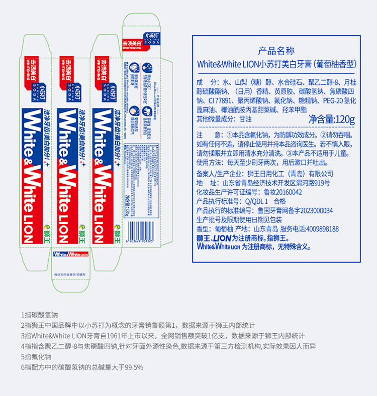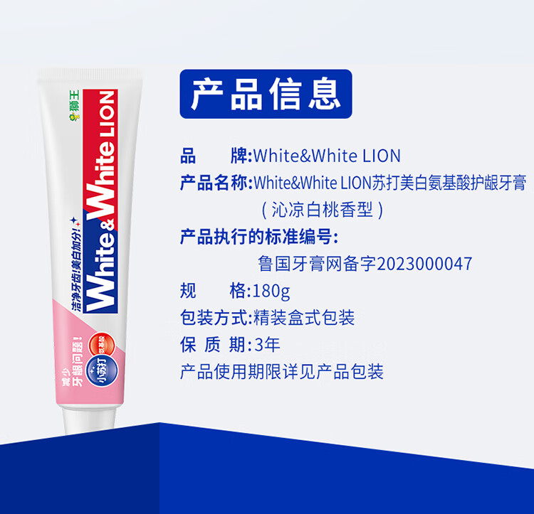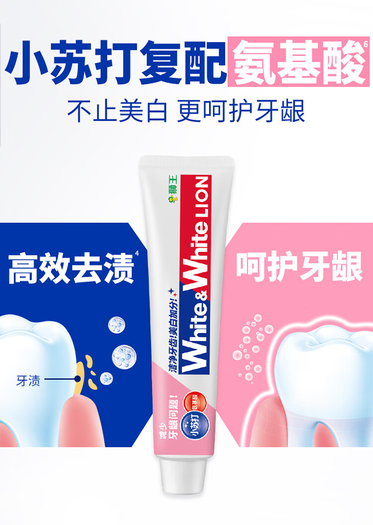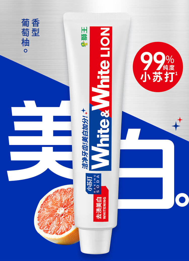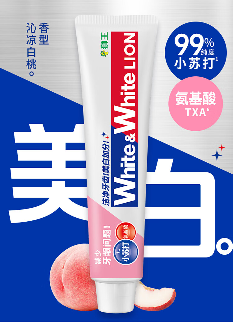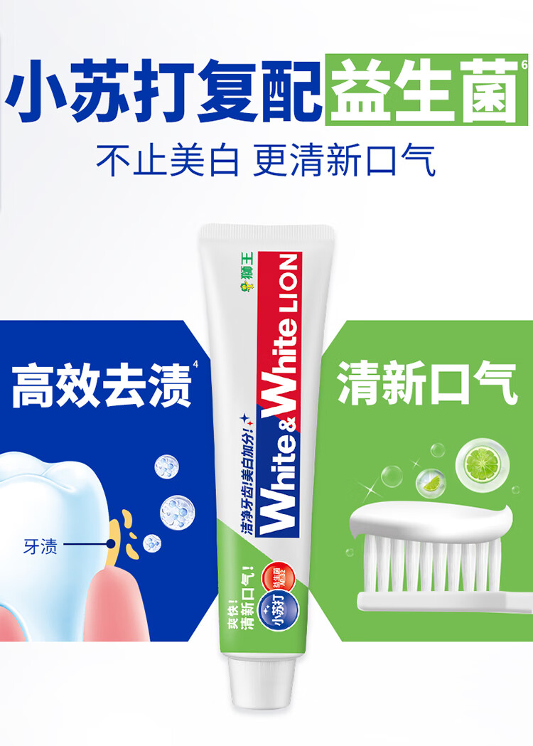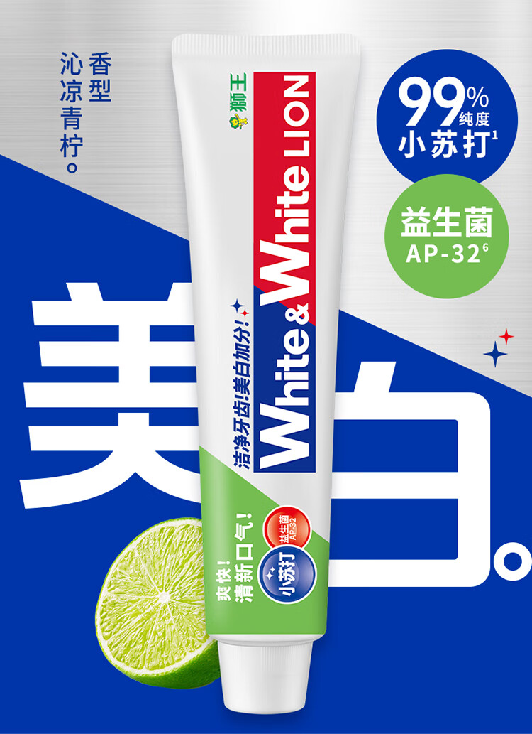 狮王葡萄柚小苏打益生菌清新口气 氨基酸护龈牙膏美白牙膏大白管 白桃120g+青柠120g