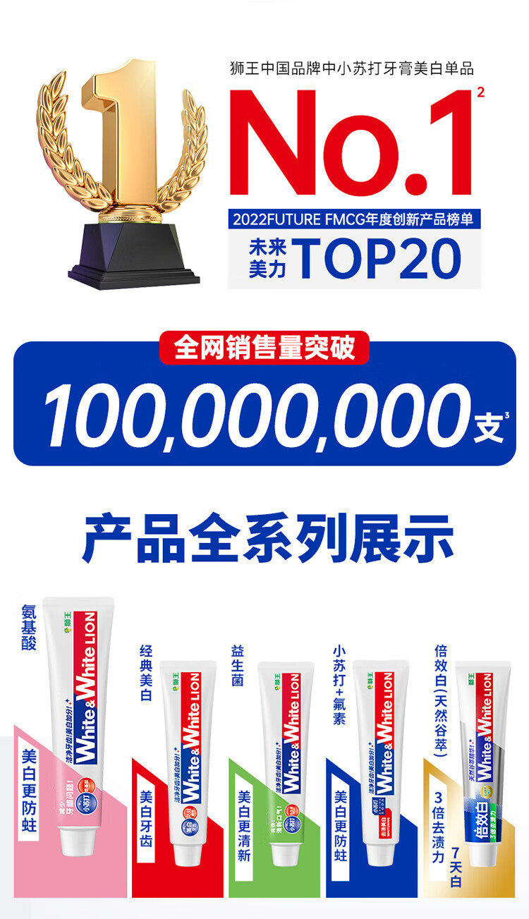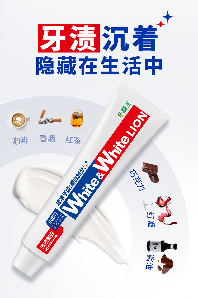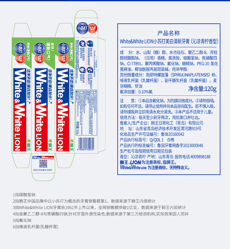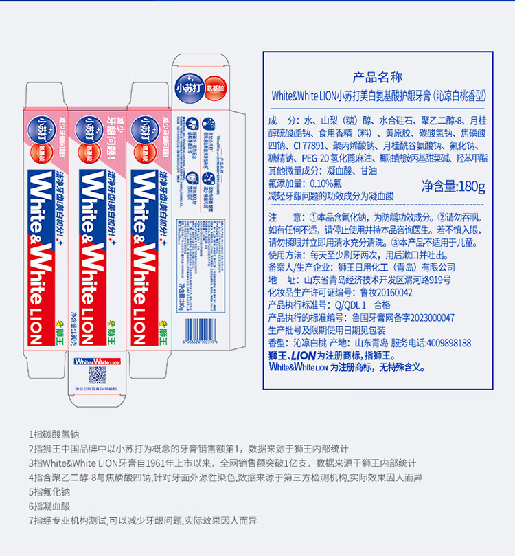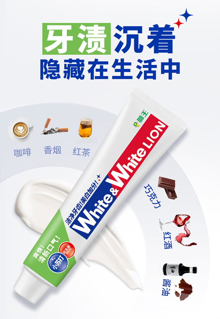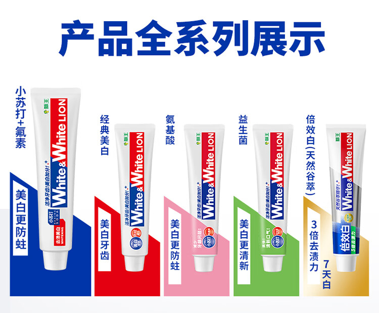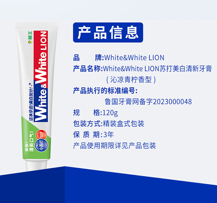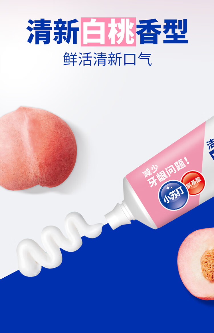 狮王葡萄柚小苏打益生菌清新口气 氨基酸护龈牙膏美白牙膏大白管 白桃120g+青柠120g