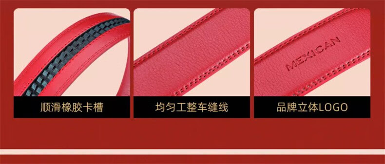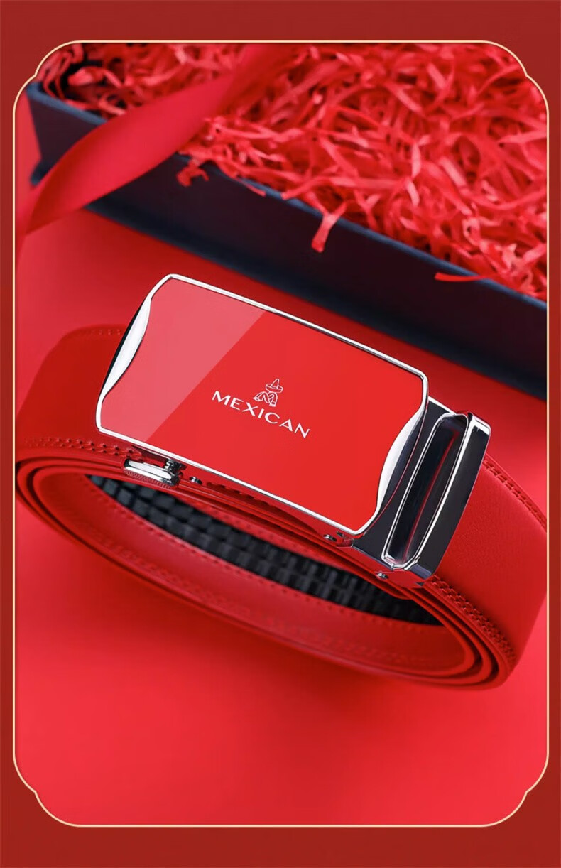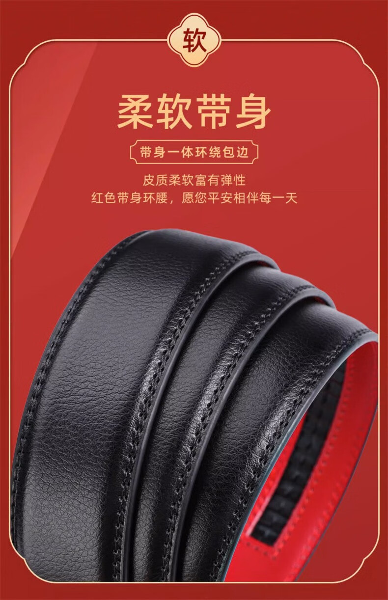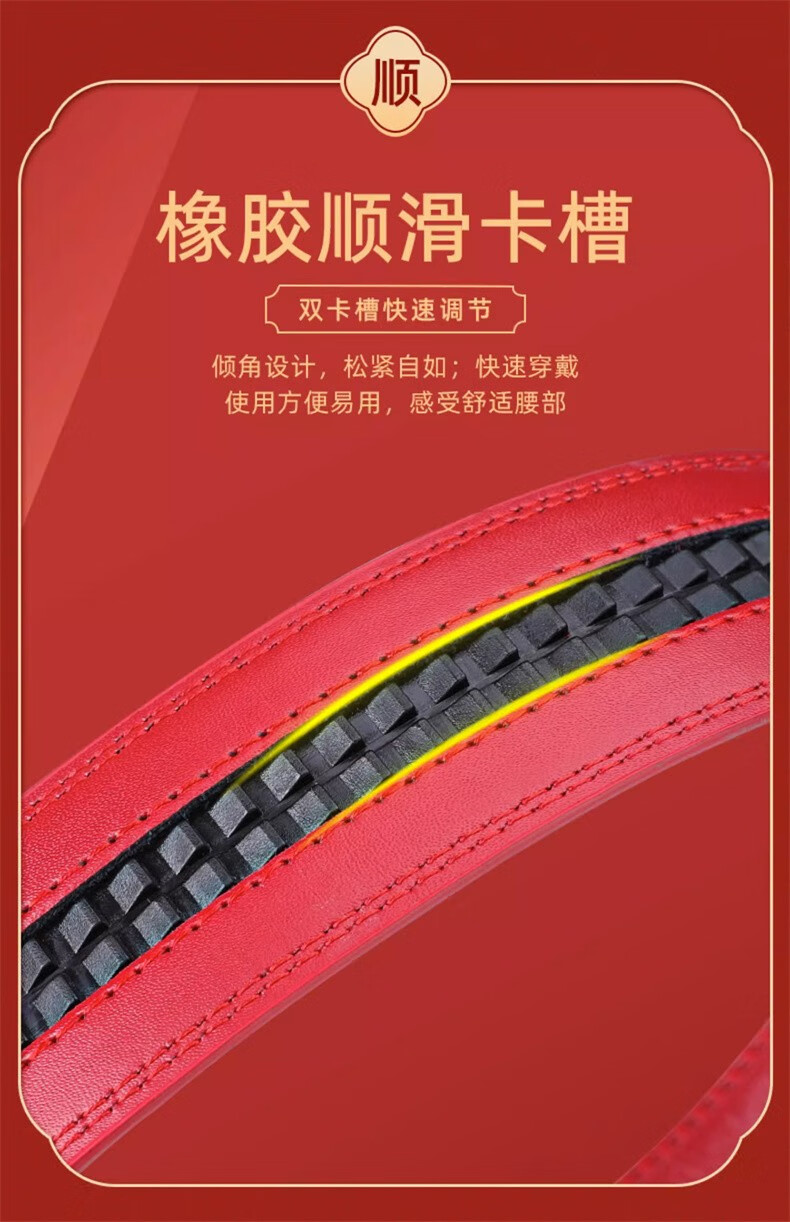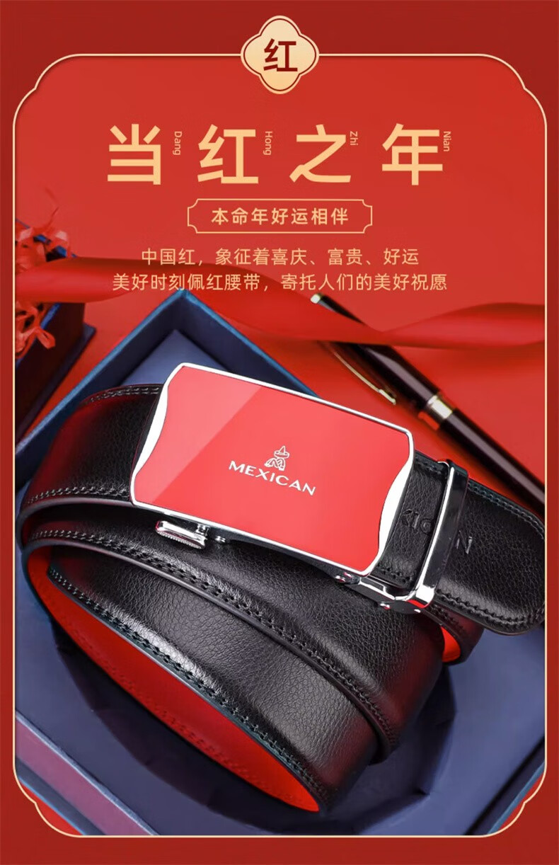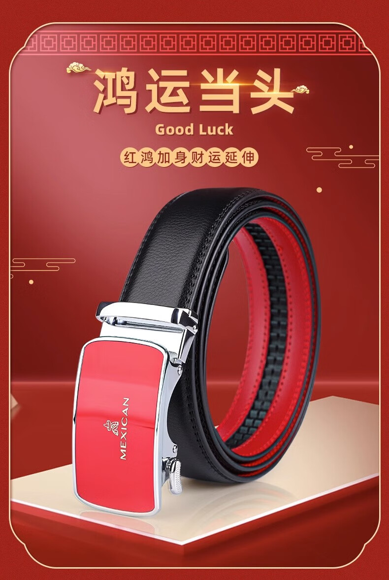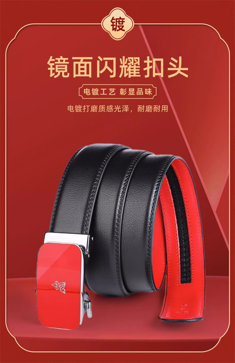 稻草人皮带男本命年红腰带真皮自动扣商务裤腰带男士休闲结婚新年礼物 70060【红色】长度110-125cm可选