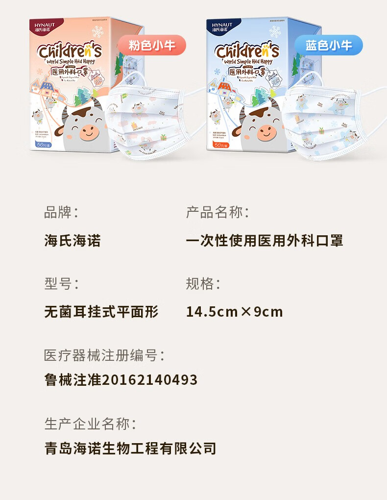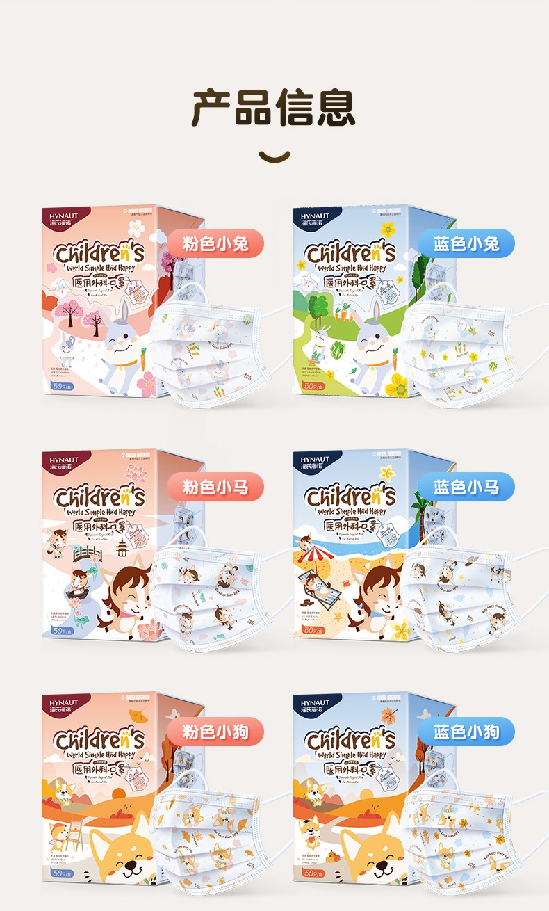 海氏海诺儿童医用外科口罩独立装一次性男孩女孩小孩夏季薄款 【小兔蓝】无菌独立装50支/盒