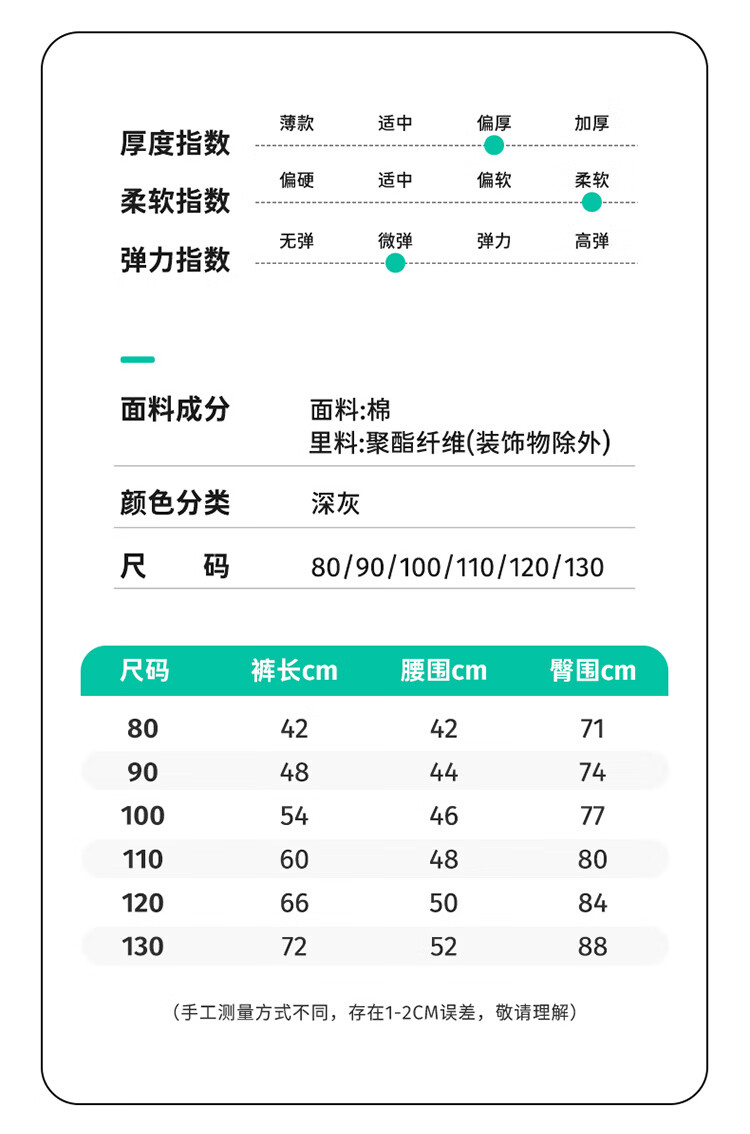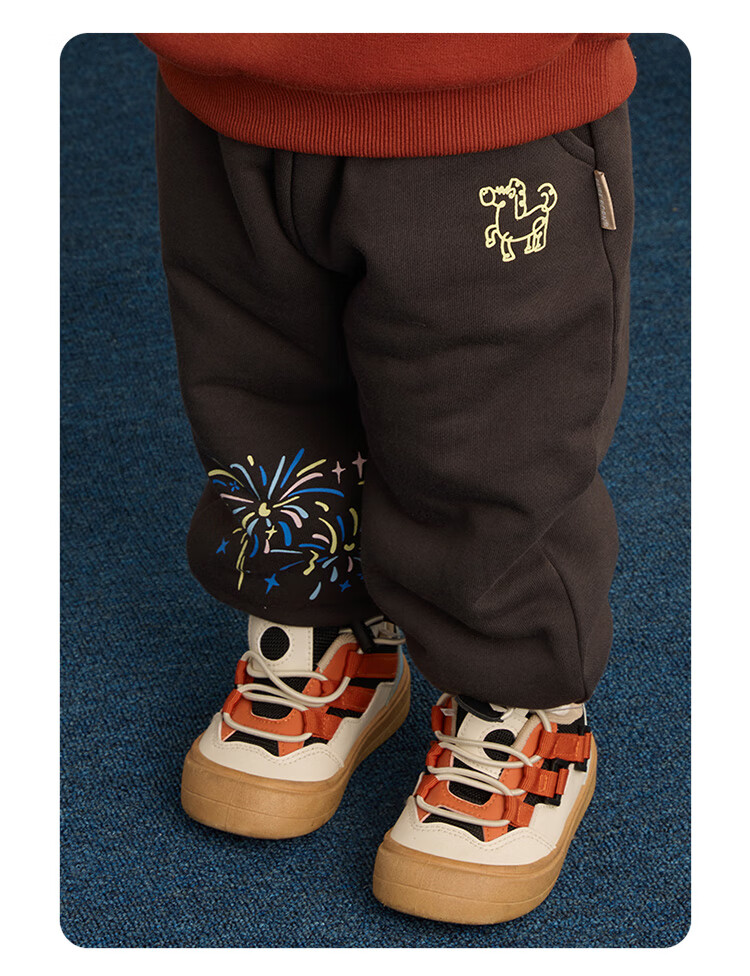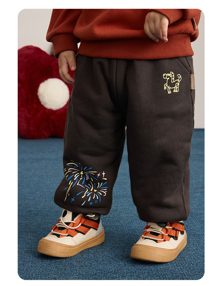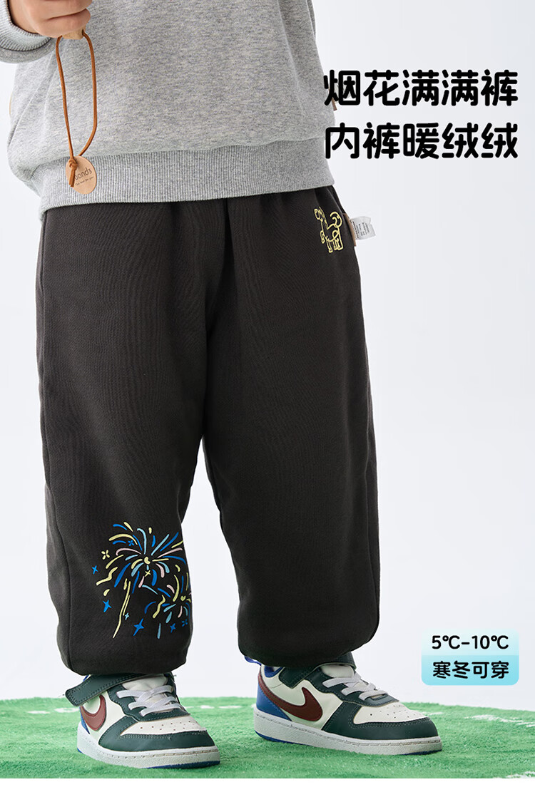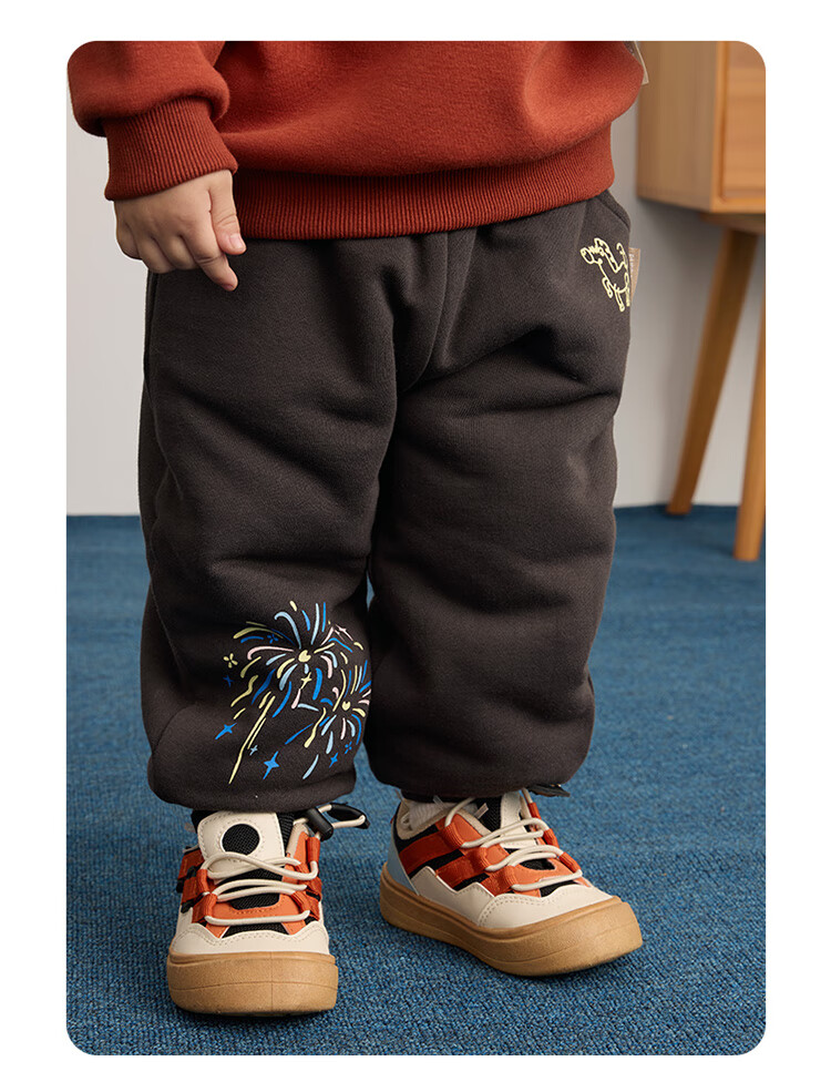 博睿恩【烟花厚厚裤】男女宝宝加绒长裤25冷冬款儿童舒棉绒超厚保暖裤 深灰 110