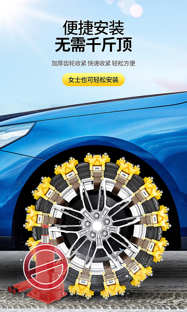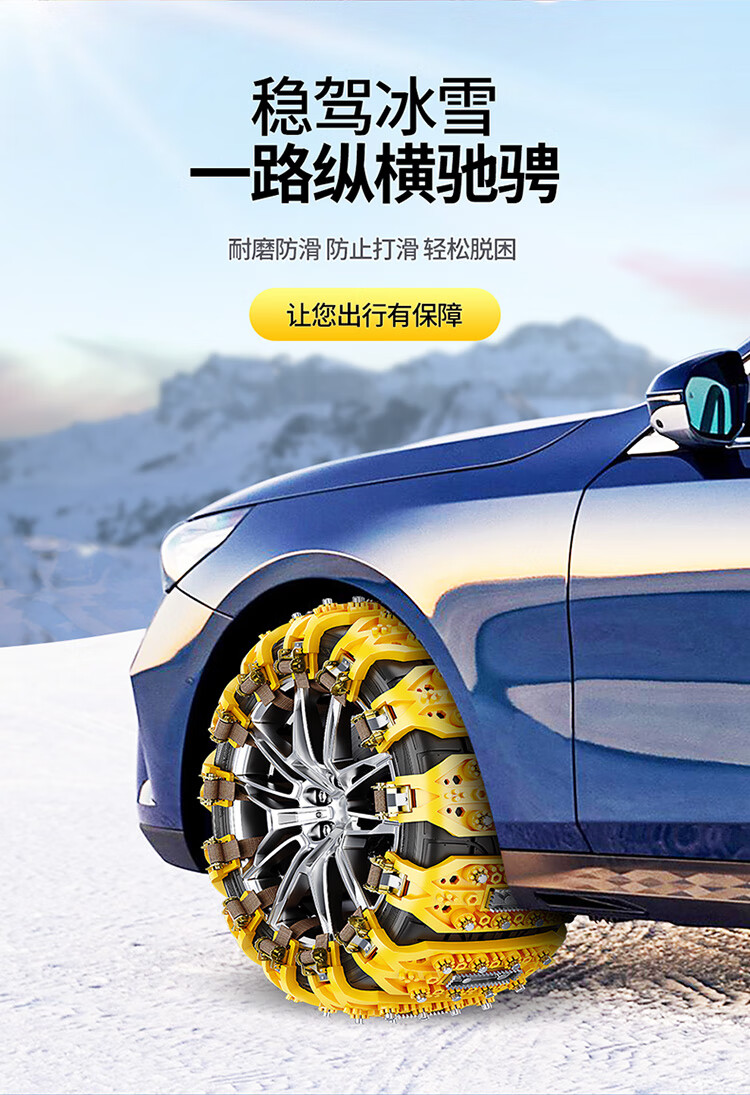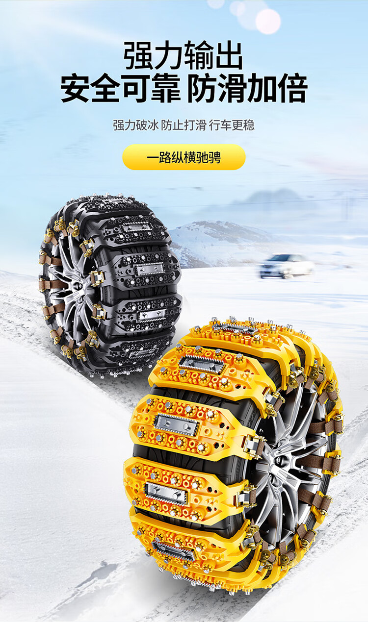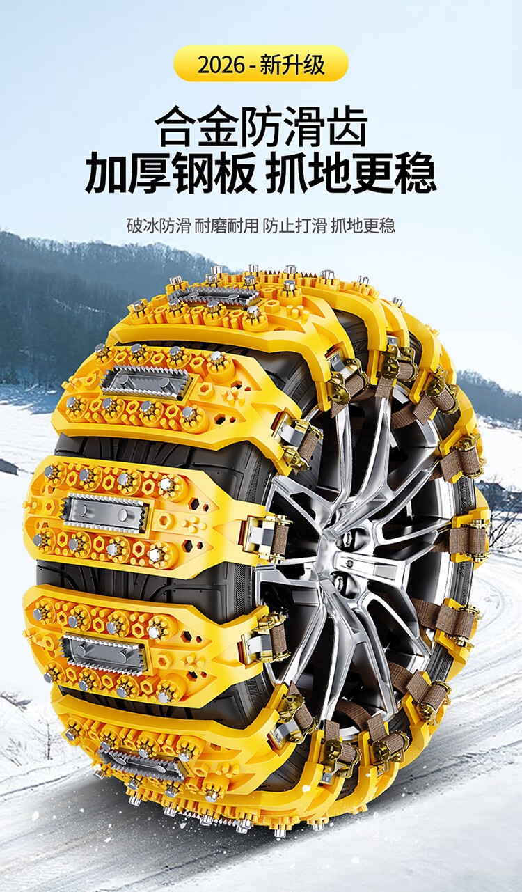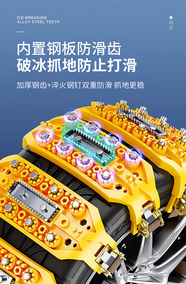 雪迈汽车专用防滑链牛筋不伤胎越野车suv面包小轿车冬季通用型雪地链 十颗淬火钢钉+加厚钢齿【十条黄色】