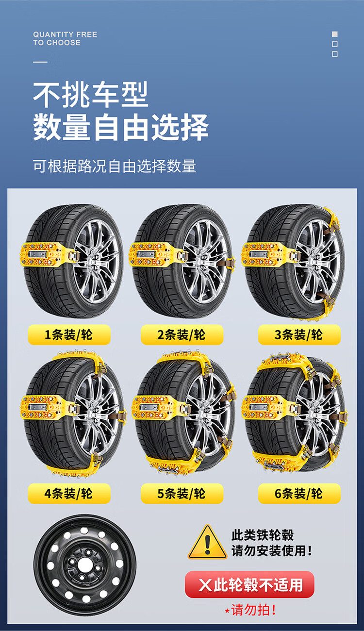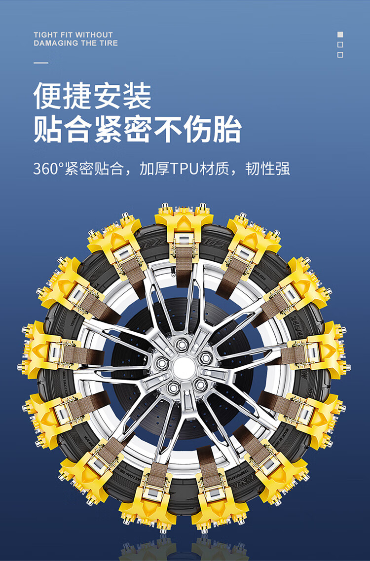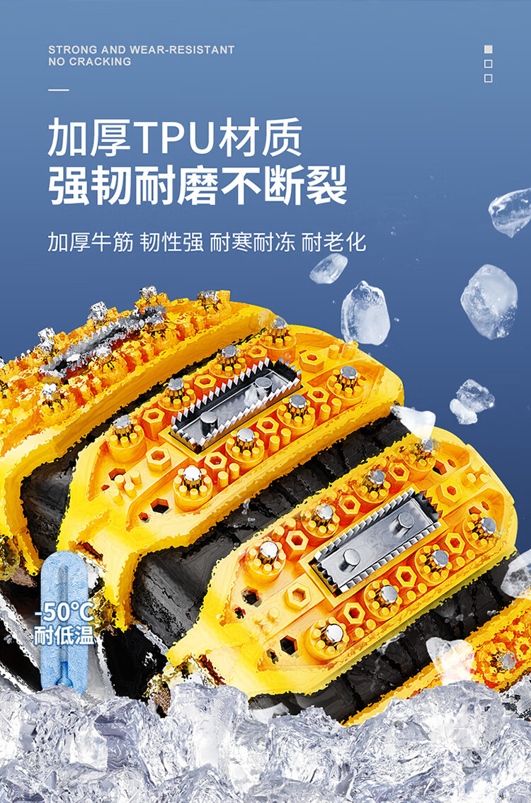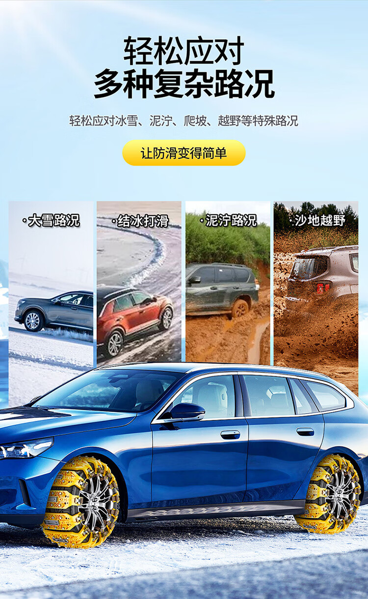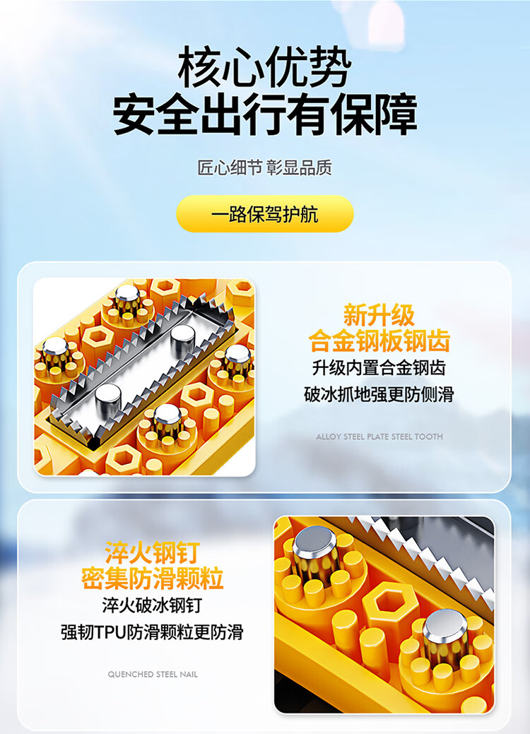 雪迈汽车专用防滑链牛筋不伤胎越野车suv面包小轿车冬季通用型雪地链 十颗淬火钢钉+加厚钢齿【十条黄色】