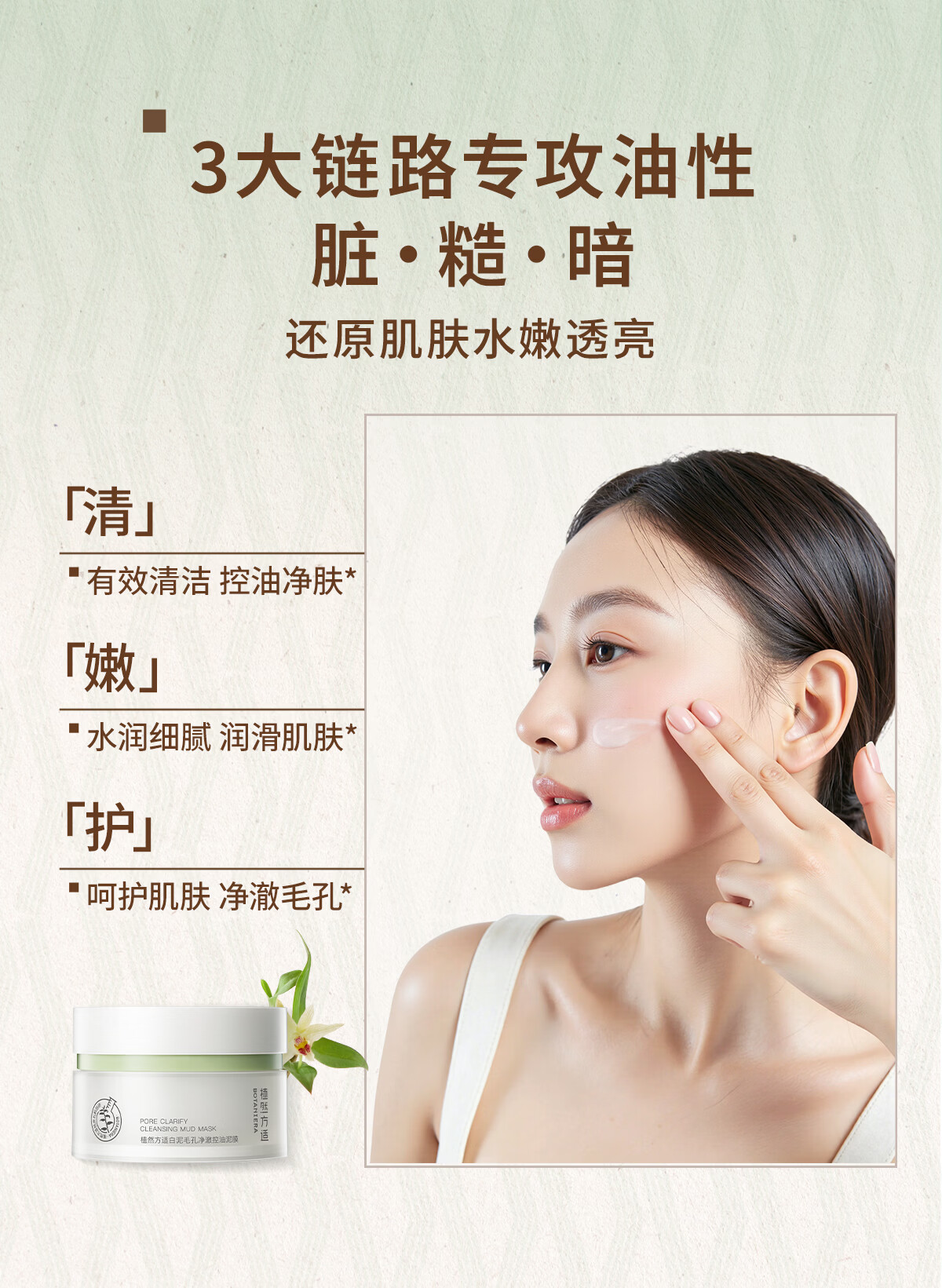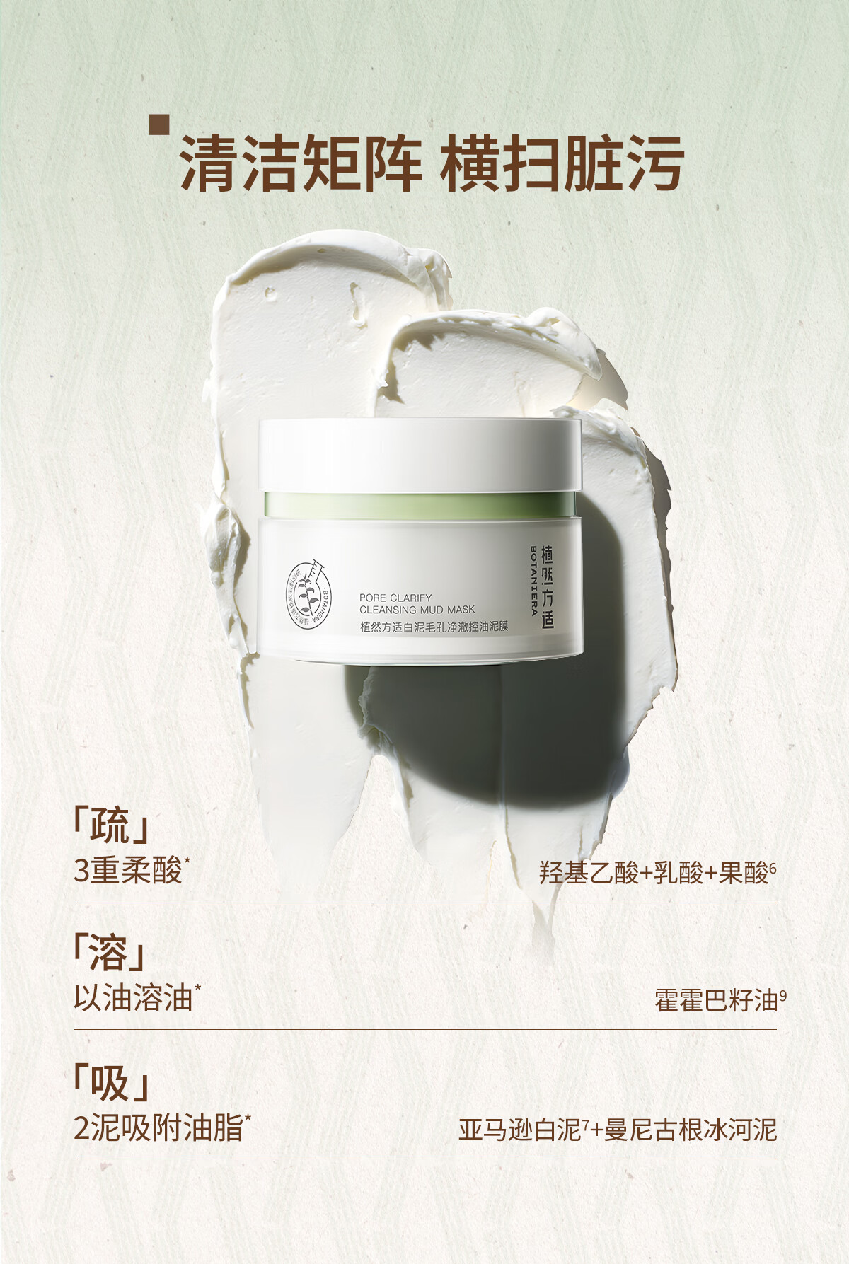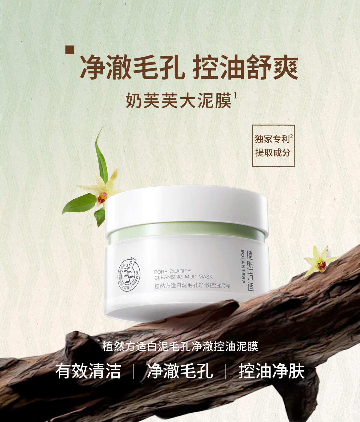 植然方适白泥毛孔净澈控油泥膜深度清洁补水保湿去角质奶芙芙大泥膜110g