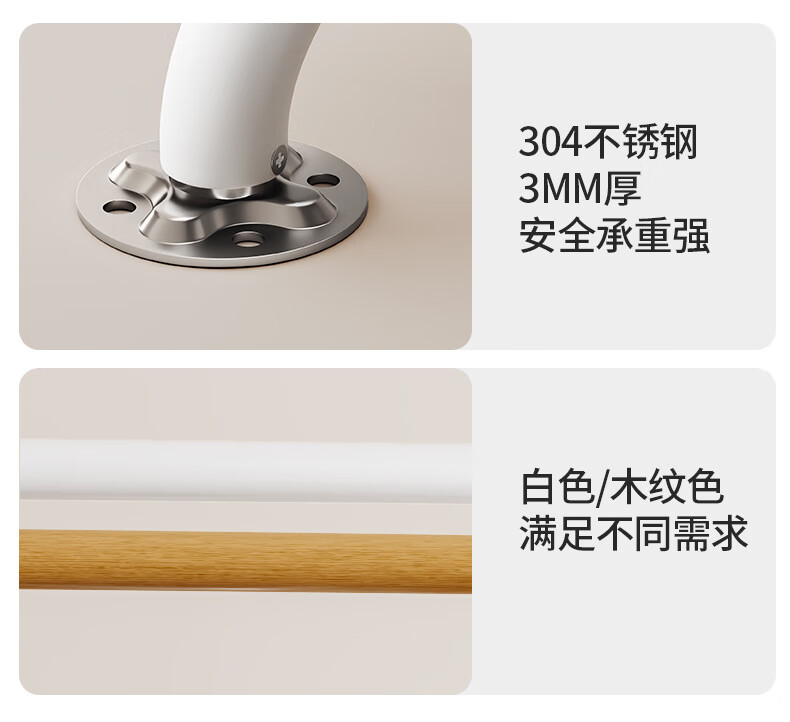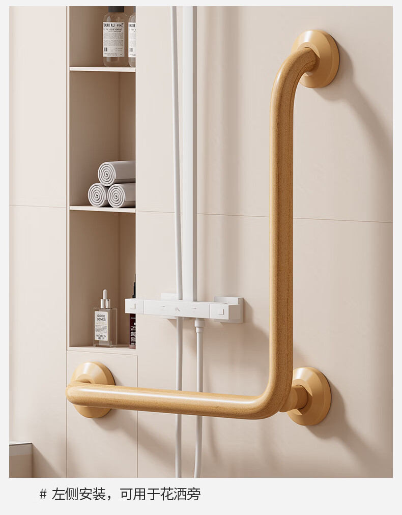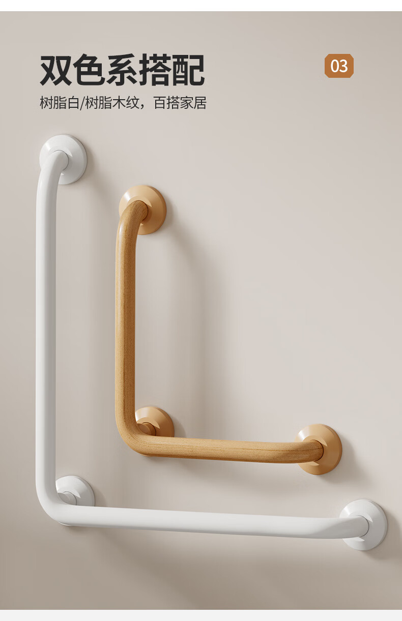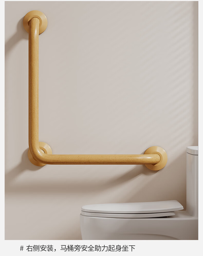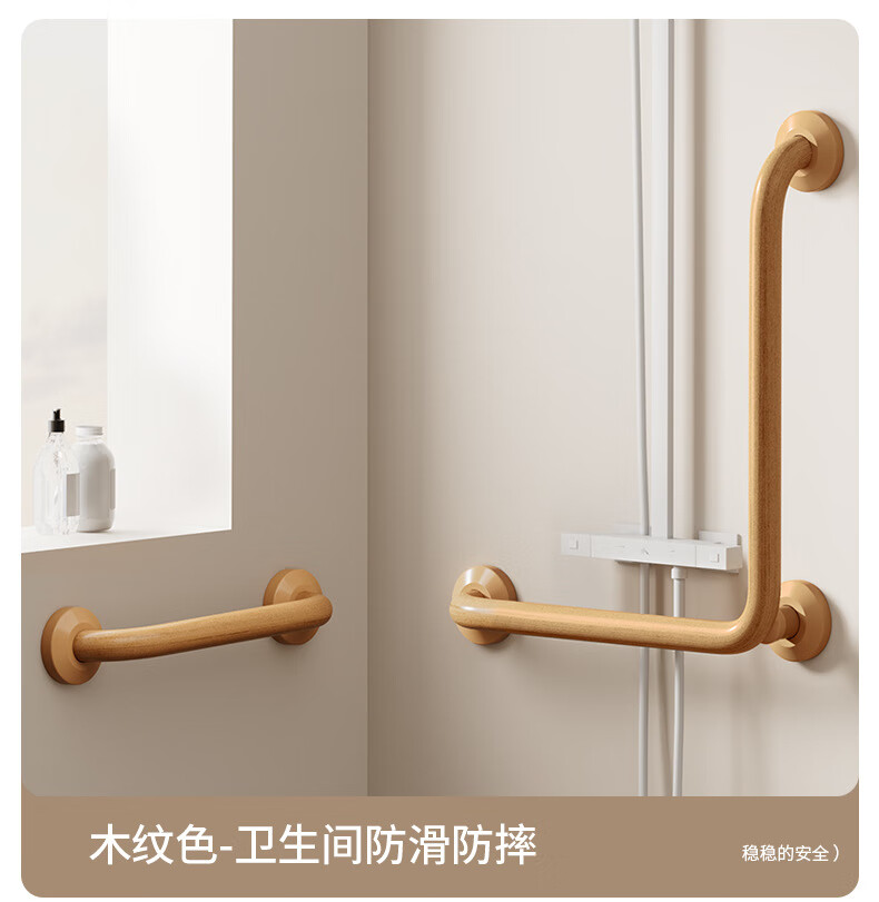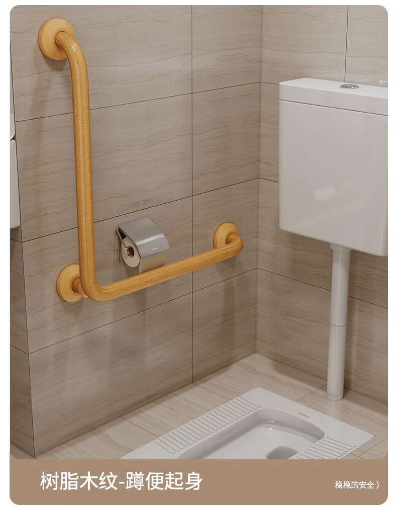 家文化(JIAWENHUA)日式树脂卫生间扶手打孔式老人浴室不锈钢无障碍助起栏杆厕所拉手 木纹树脂铝合金50*50CM中心尺