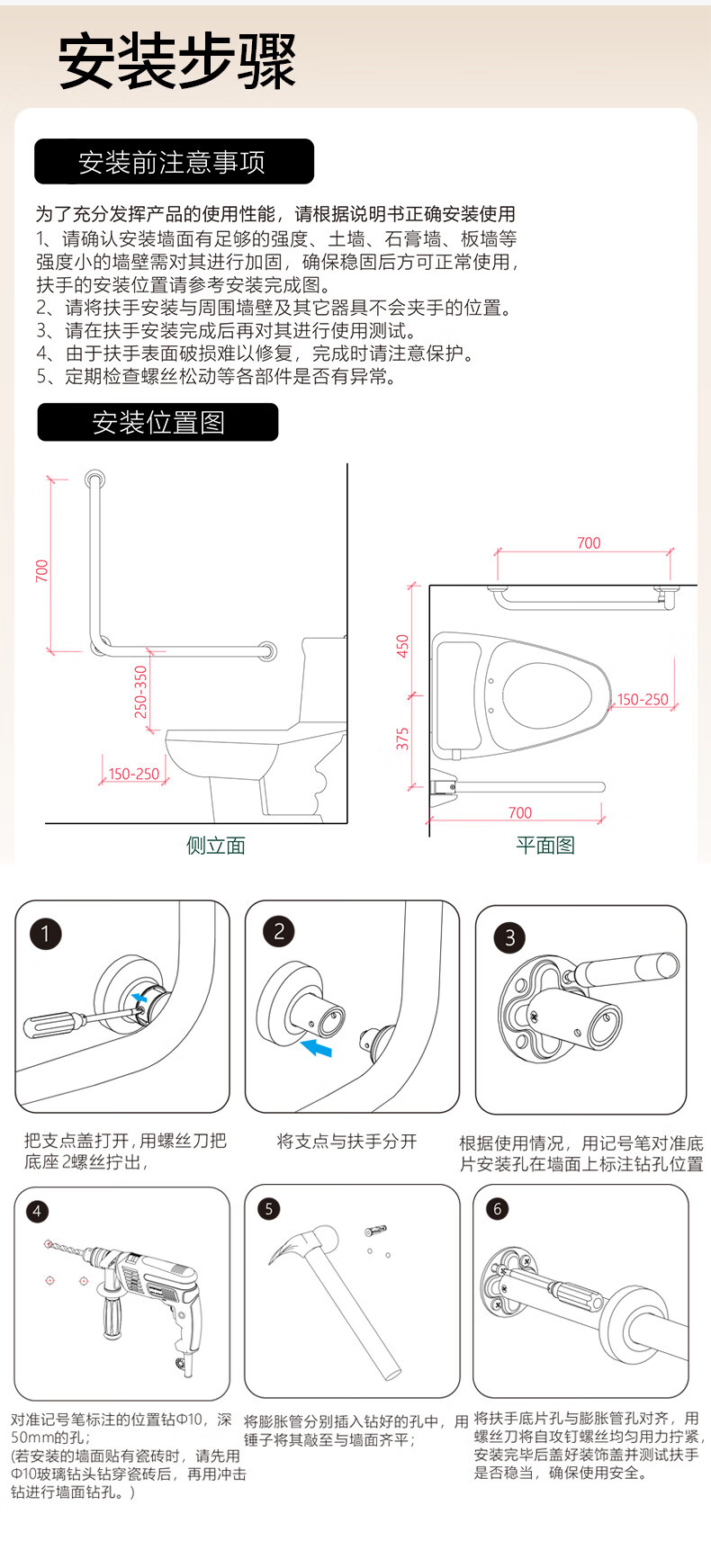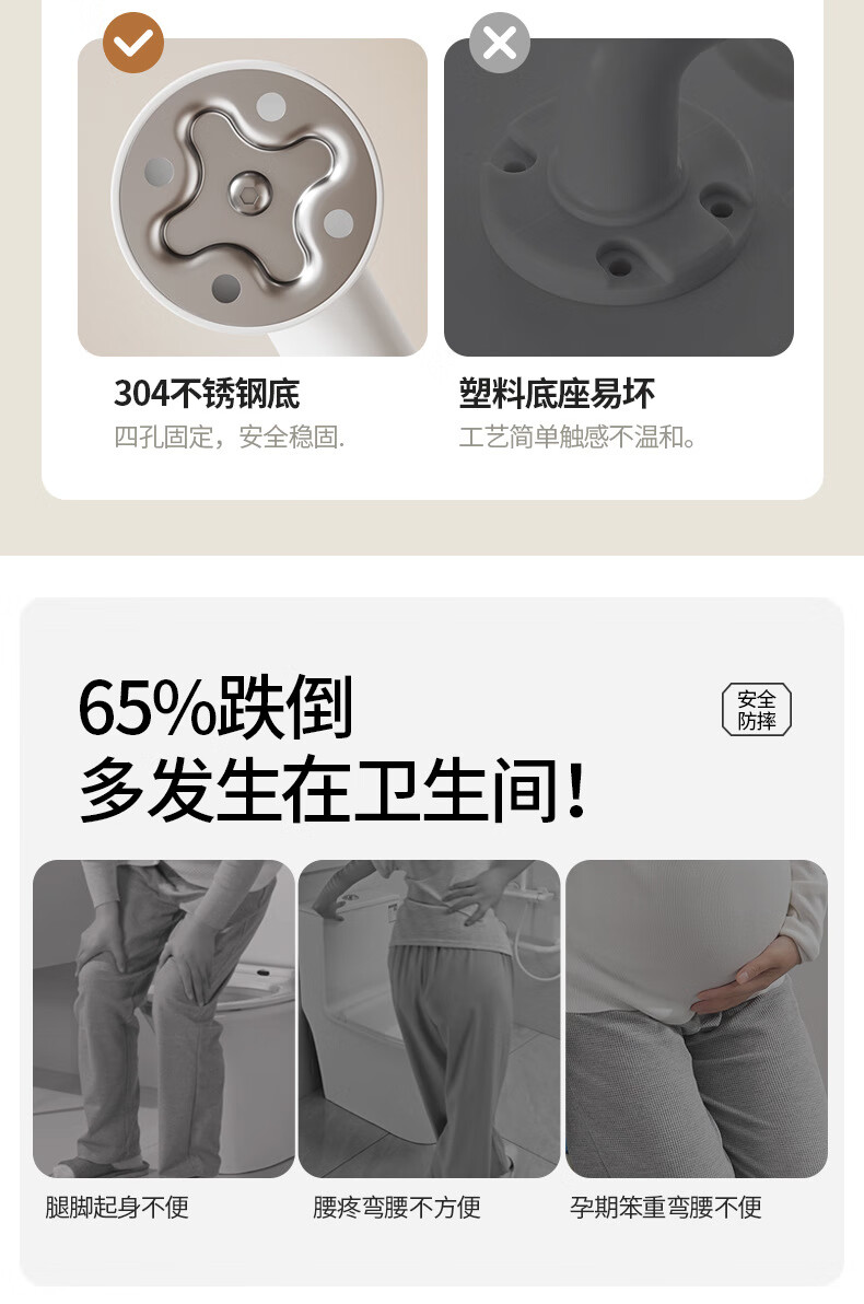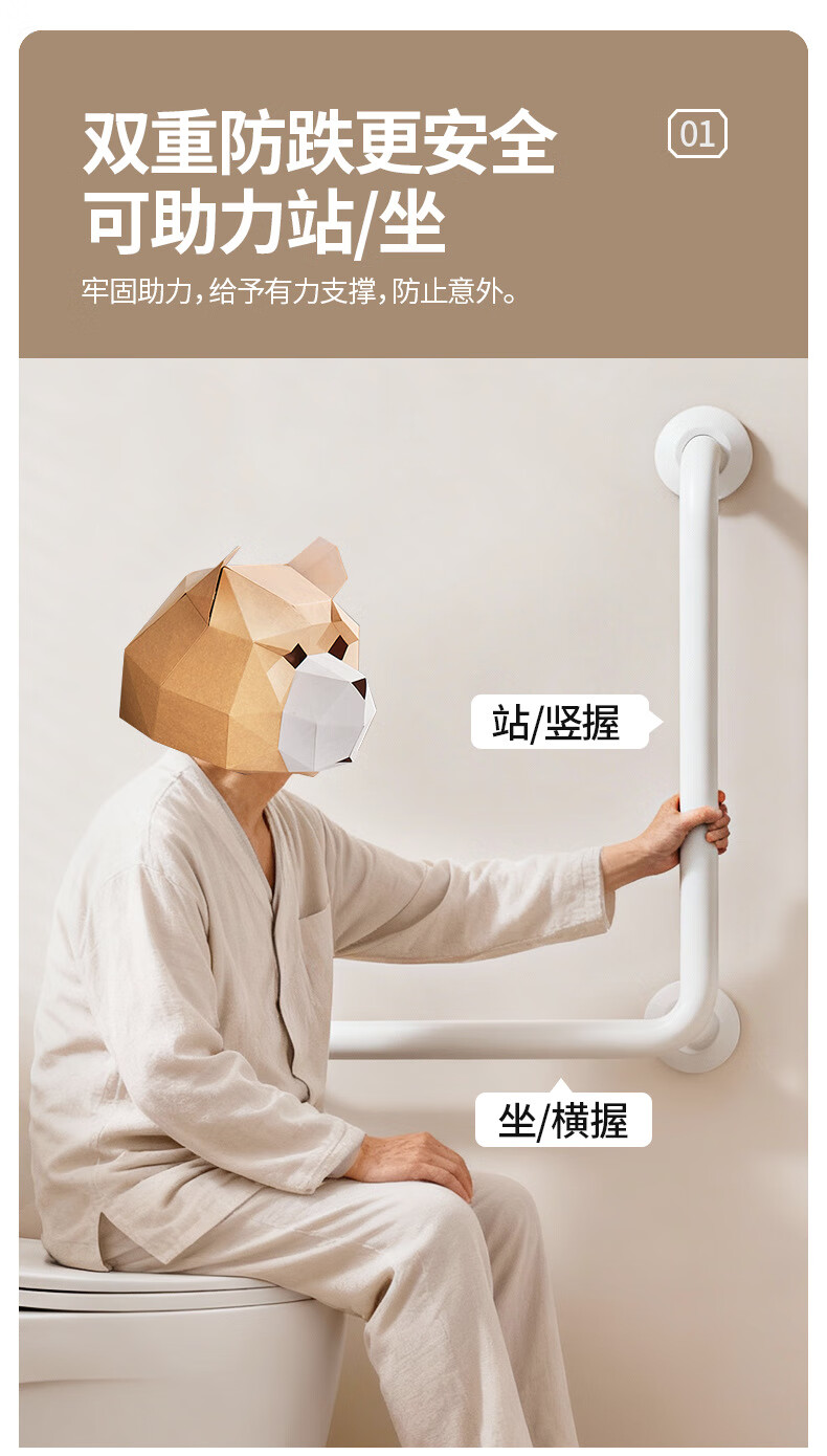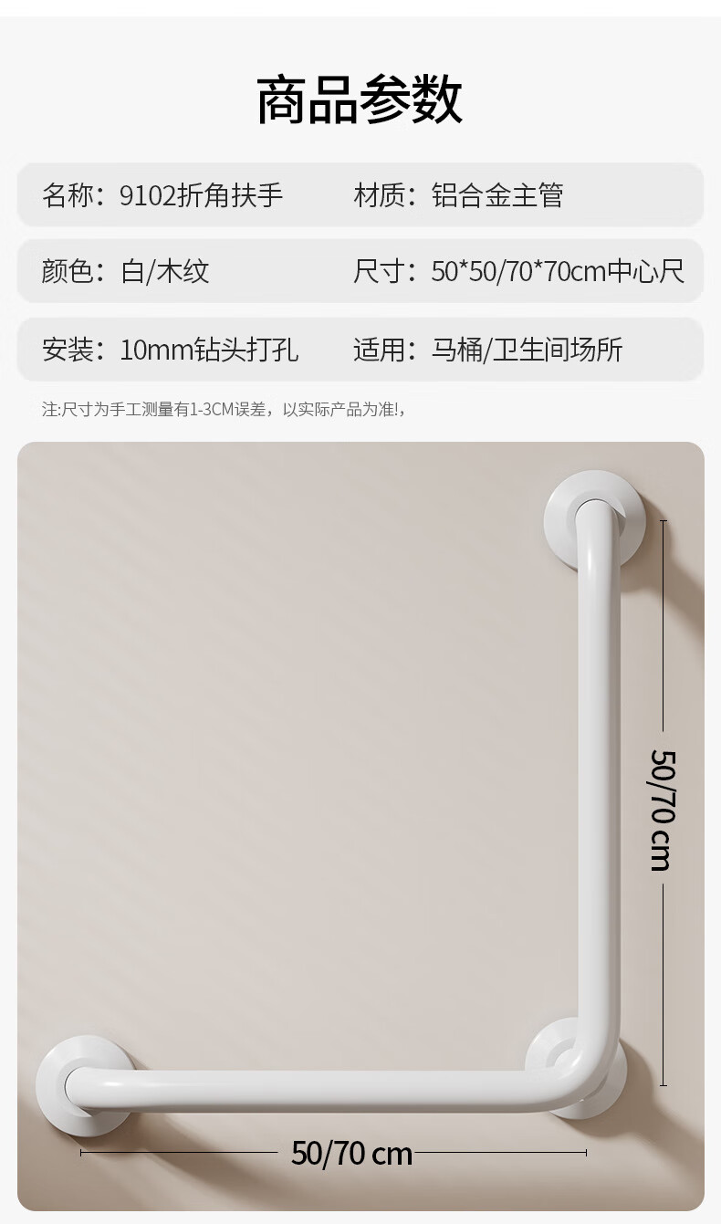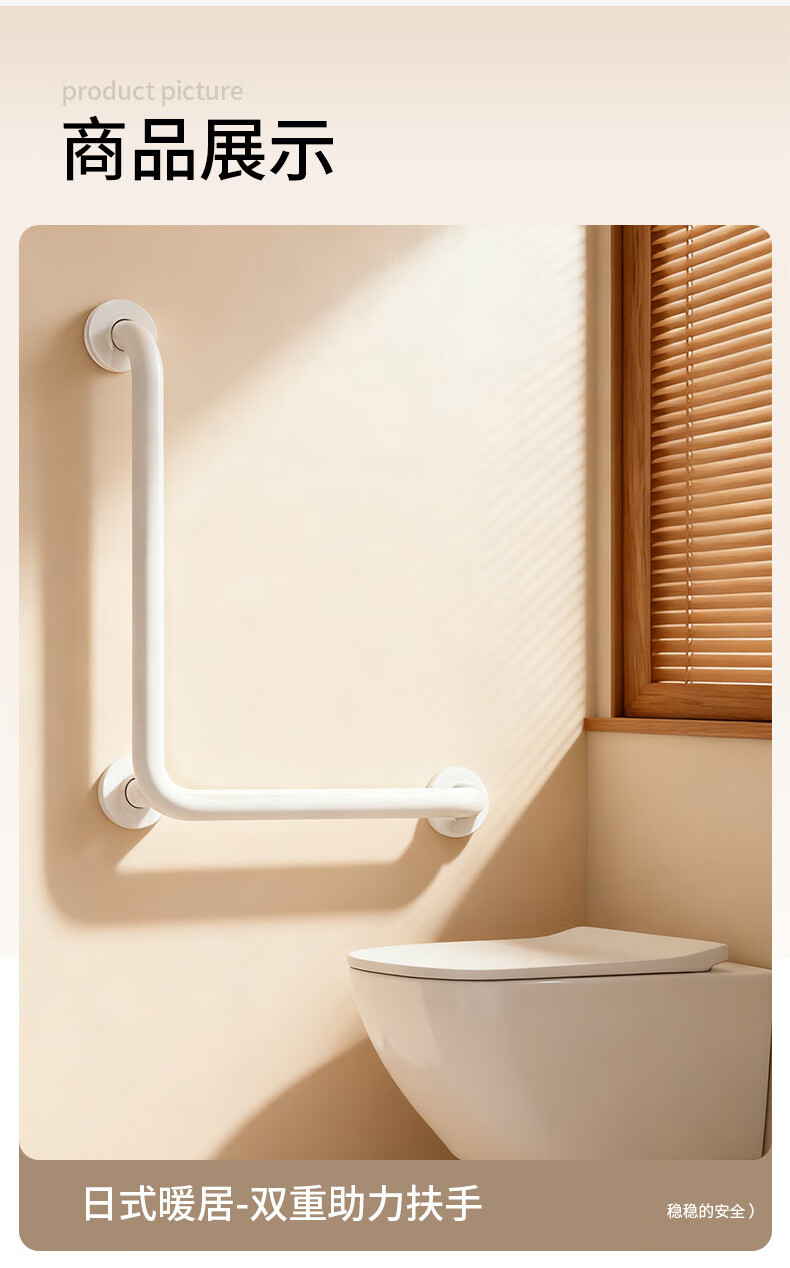 家文化(JIAWENHUA)日式树脂卫生间扶手打孔式老人浴室不锈钢无障碍助起栏杆厕所拉手 木纹树脂铝合金50*50CM中心尺