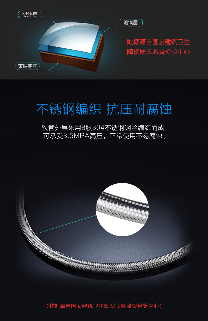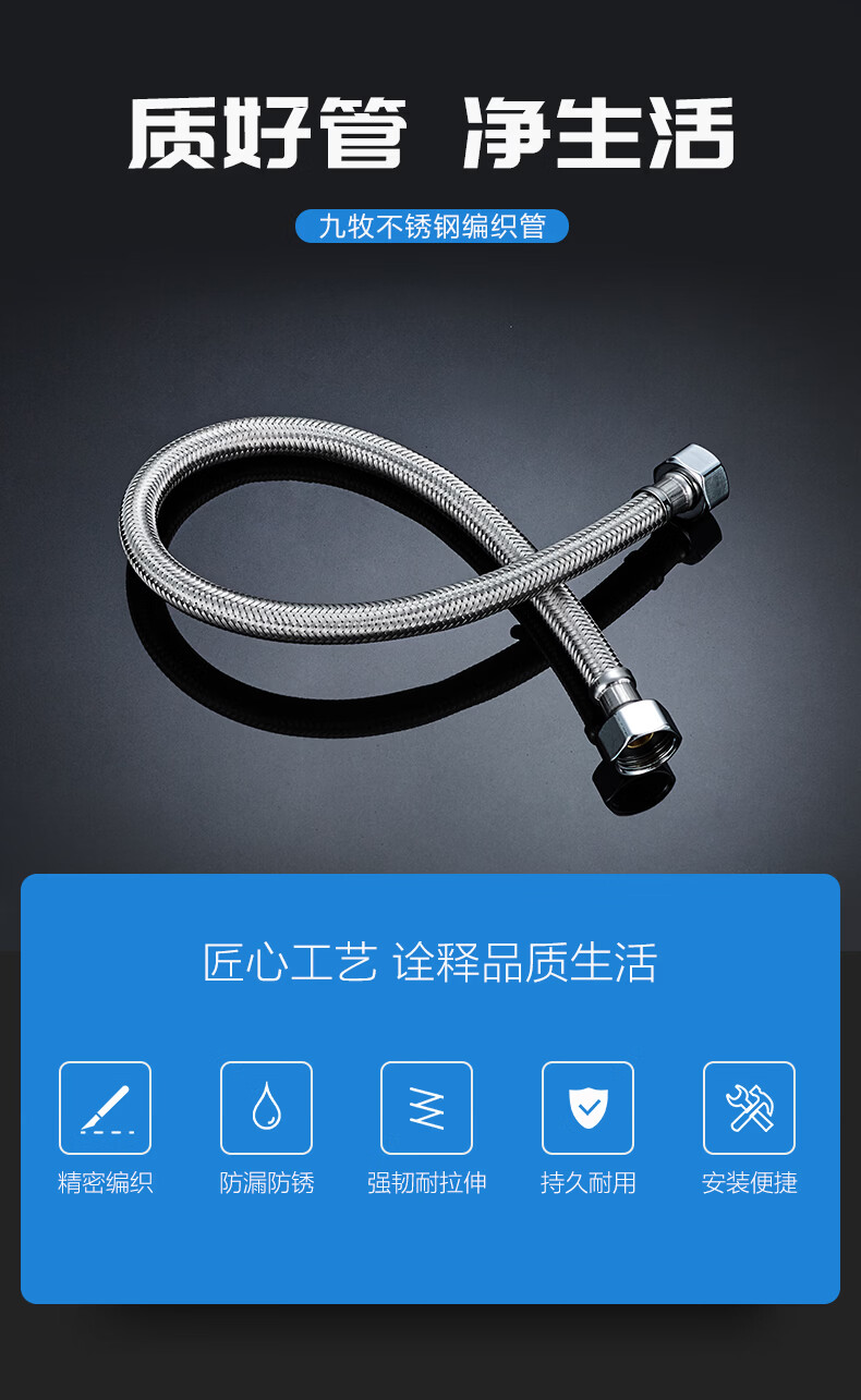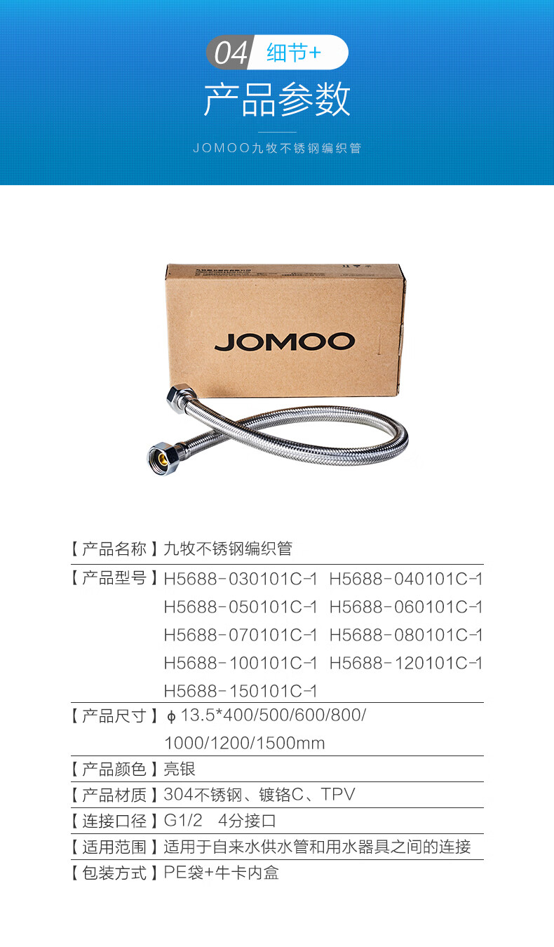 九牧(JOMOO)不锈钢金属编织软管4分双扣冷热进水软管 80cm进水软管H5688
