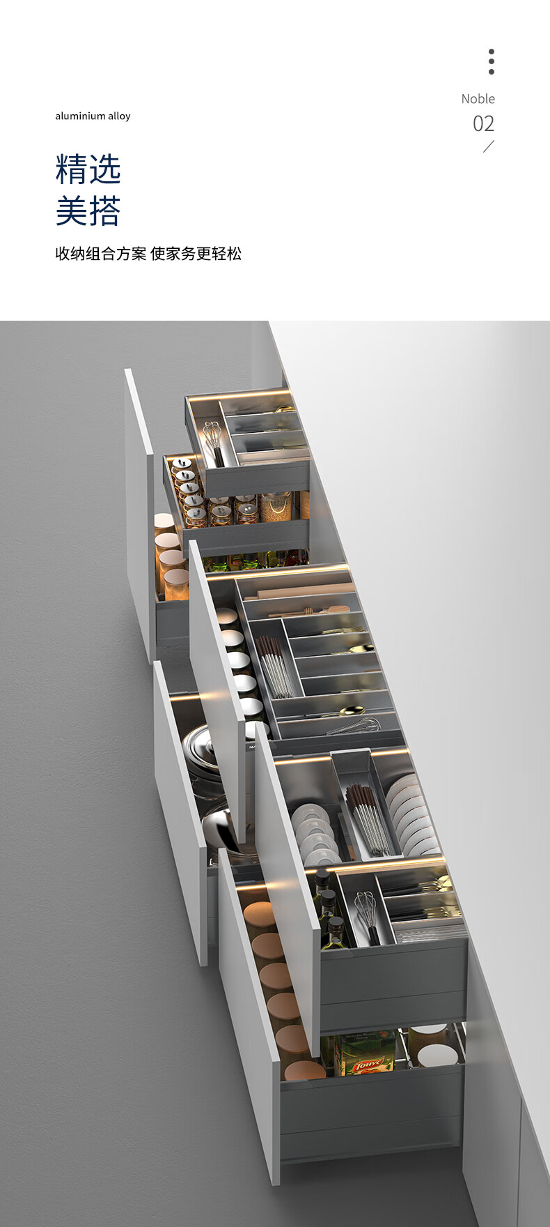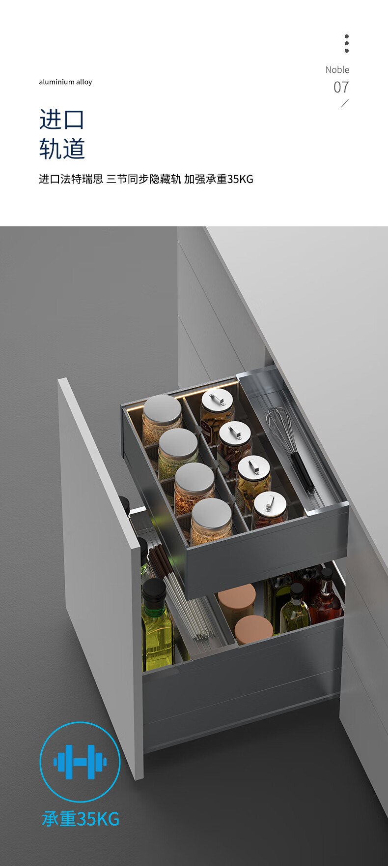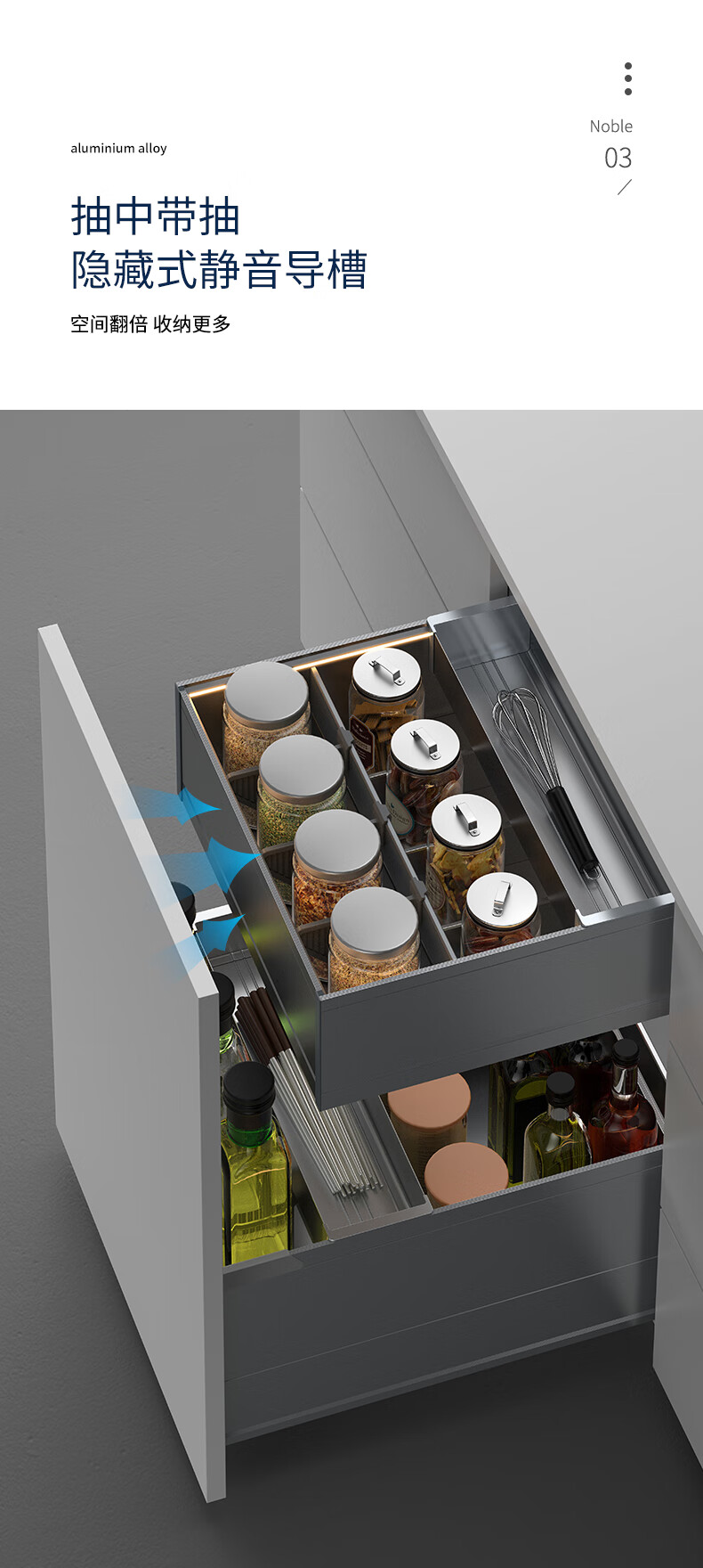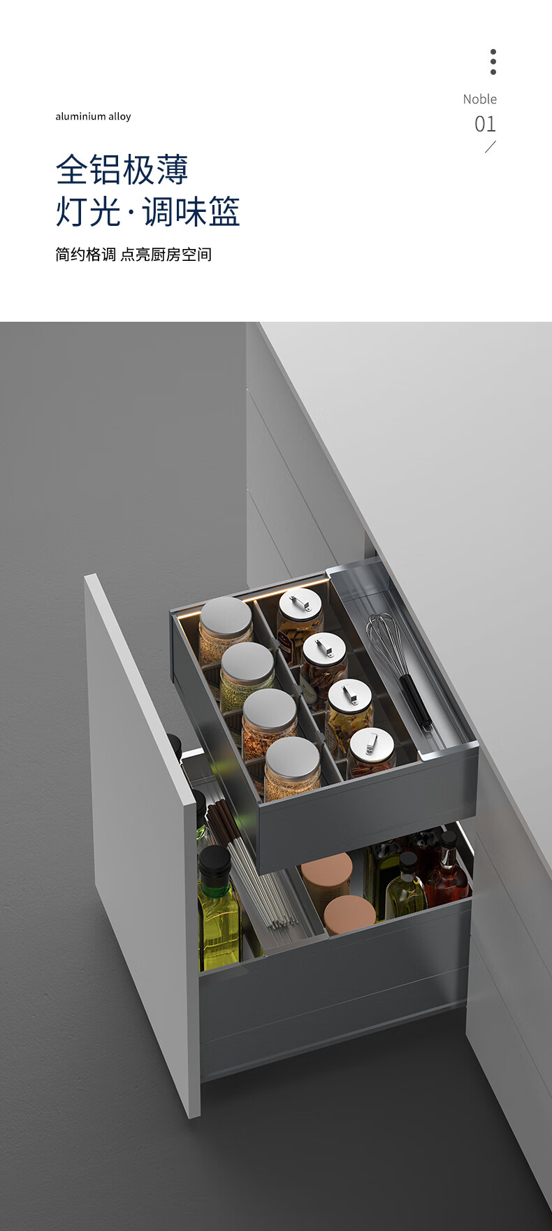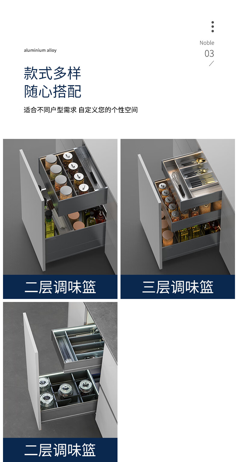 德米莫拉篮德米莫厨房调味双层拉篮抽屉式极薄太空铝碗柜百隆轨道带灯带 双层A款300柜 极薄太空铝+氛围灯+【进口百隆轨道】
