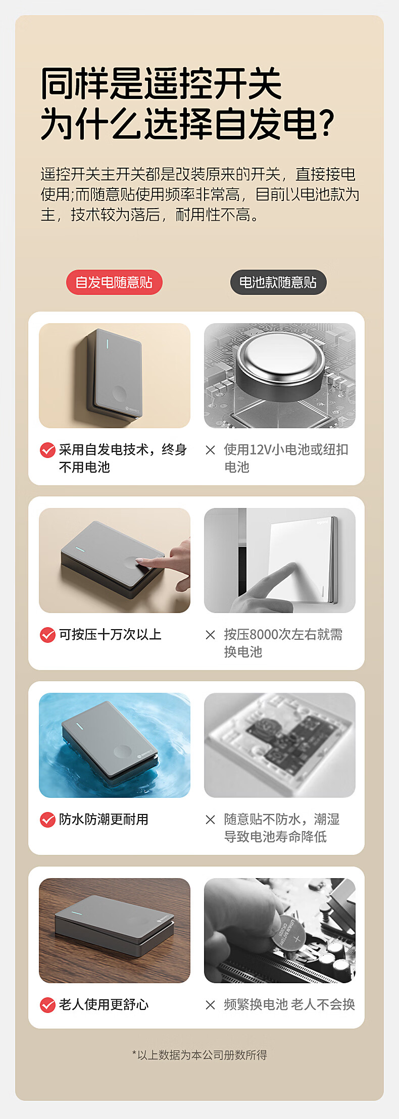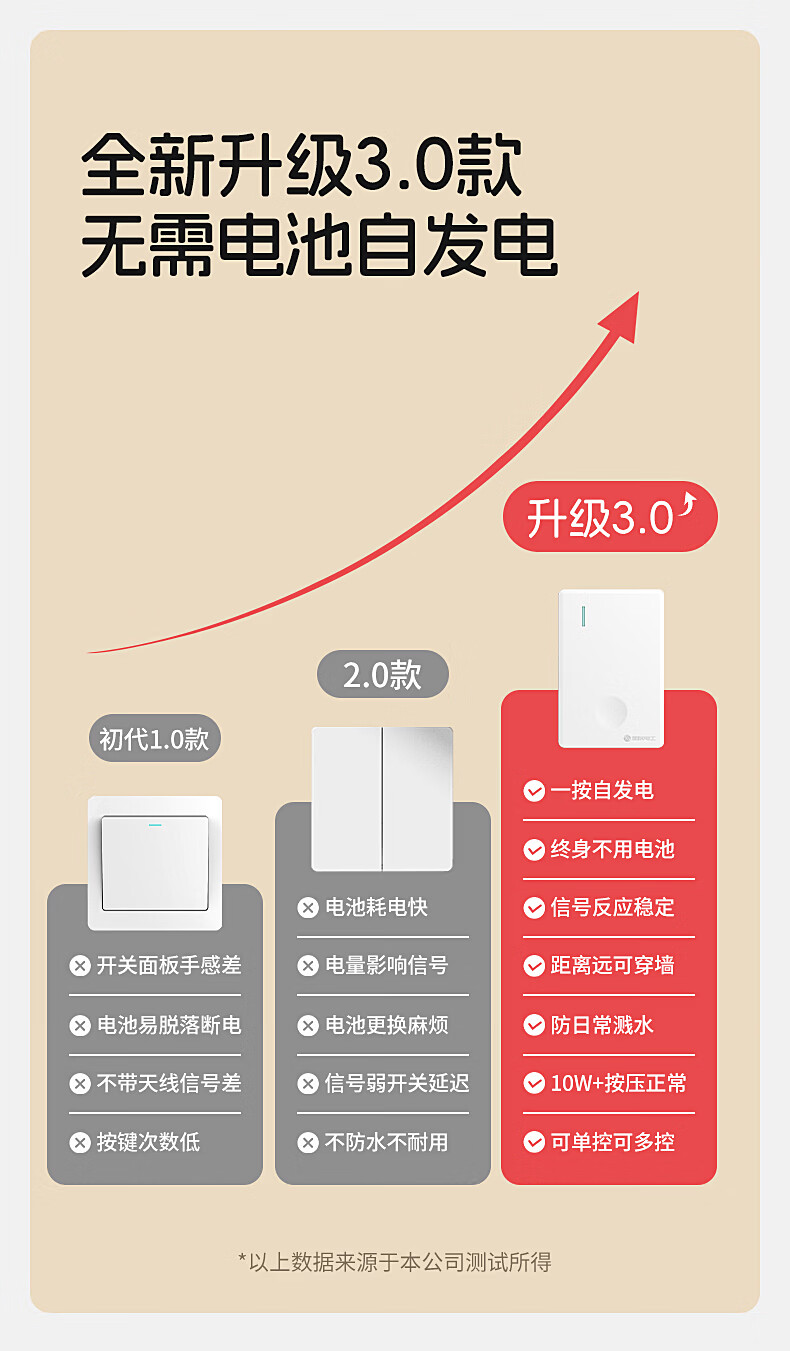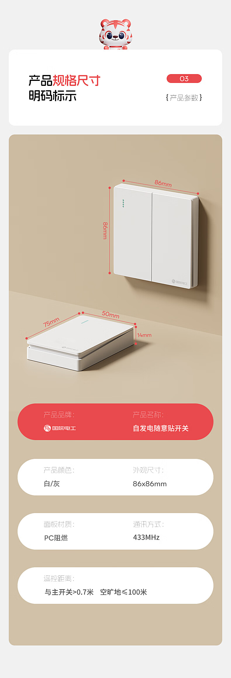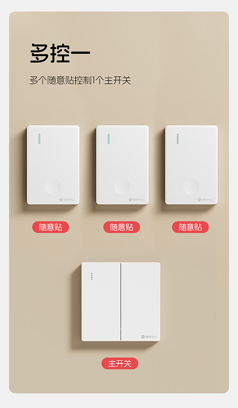 国际电工自发电无线遥控开关家用远程控制智能开关卧室客厅控制灯具随意贴 白色一开主机*1+迷你随意贴*2