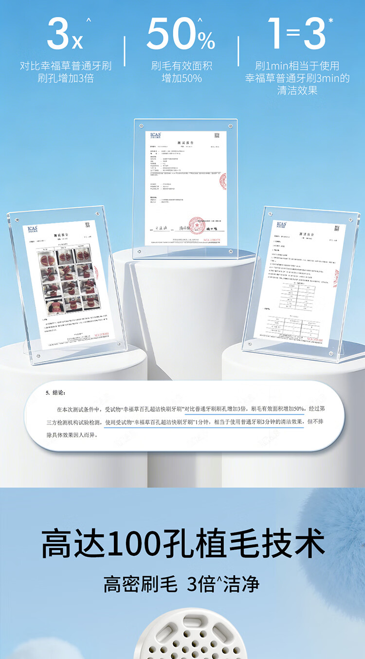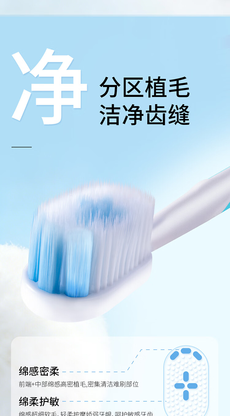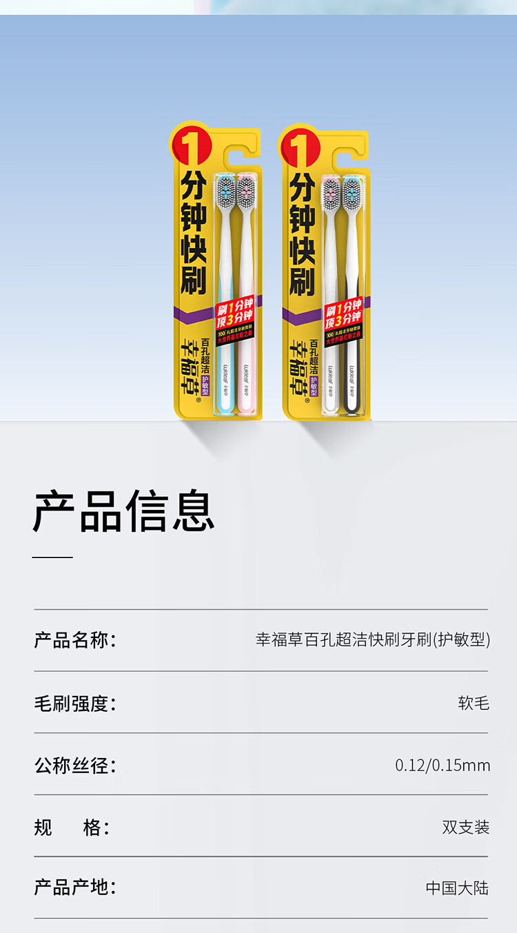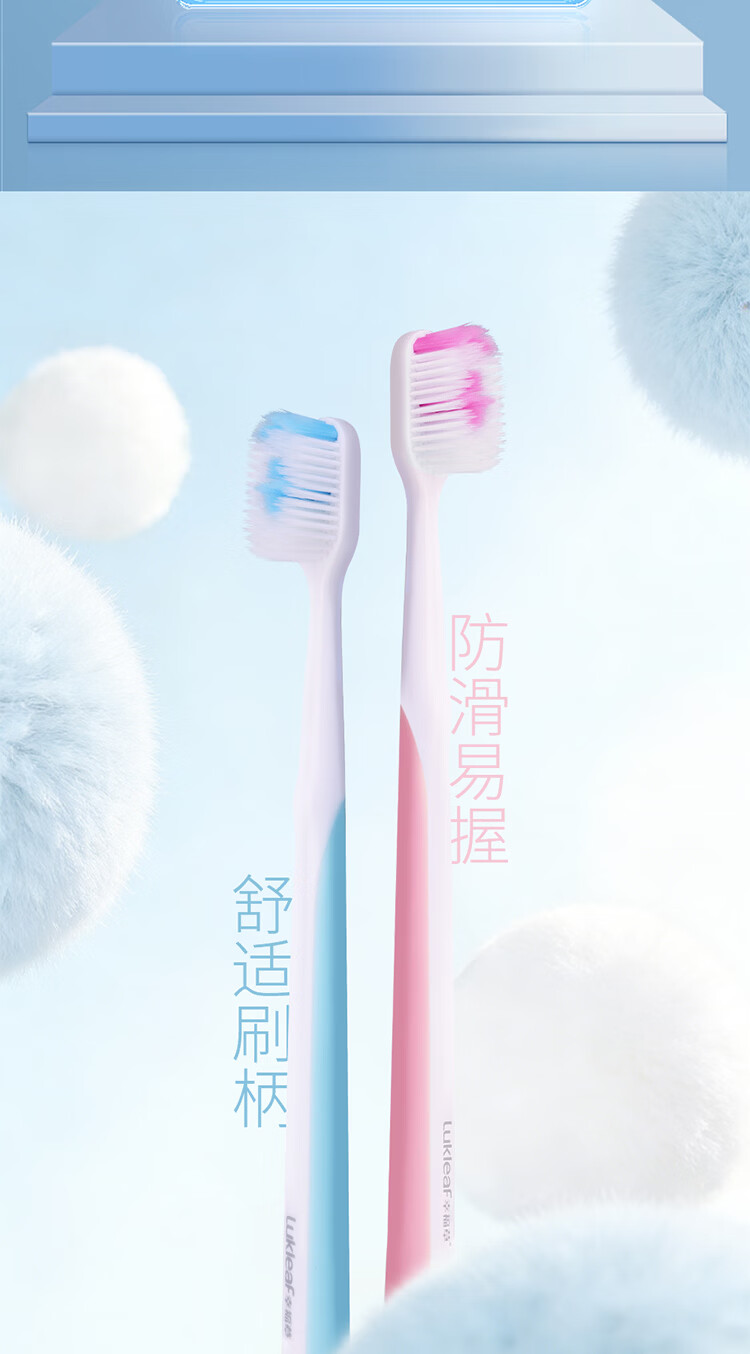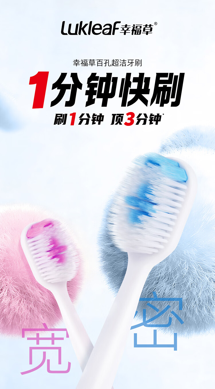 幸福草(Lukleaf)百孔超洁【1分钟快刷】护龈牙刷 男女成人牙刷家庭装护敏型2支装