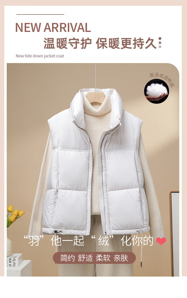 雪中飞2025新款羽绒马甲秋冬上衣时尚内搭马夹冬季保暖背心外套L099032 黑色 S (160/84A) 95-110斤