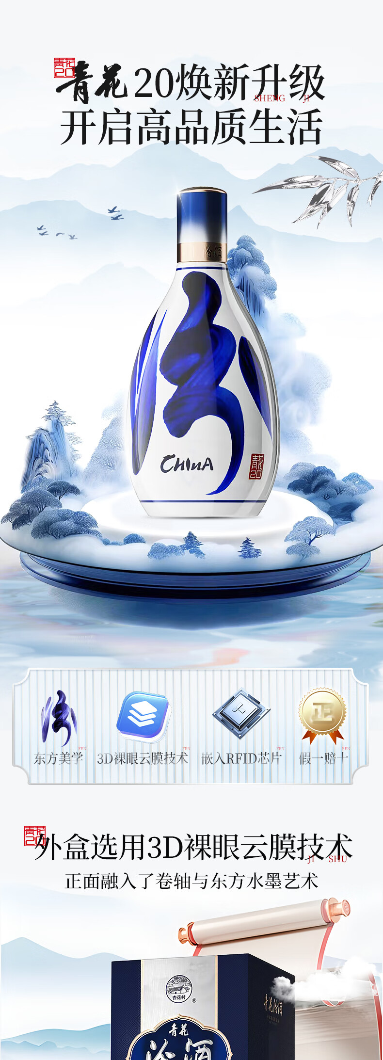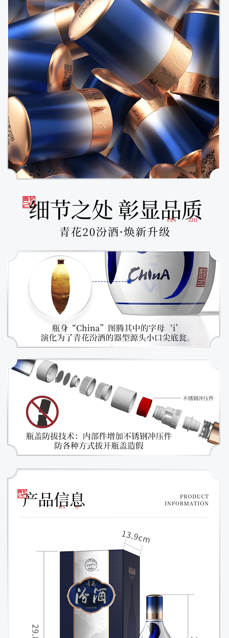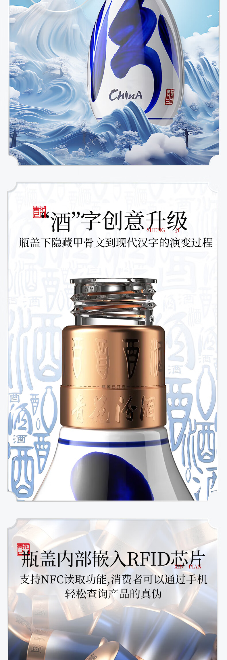 汾酒53度青花20汾酒 清香型白酒 商务宴请送礼白酒 喜宴 53度 500mL 6瓶 整箱【含3个手提袋】