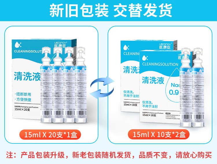 医康臣(UECONCH)医用生理盐水小支0.9%氯化钠清洗液洗鼻敷脸漱口海盐水15ml*20
