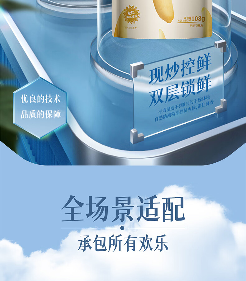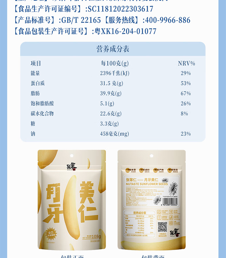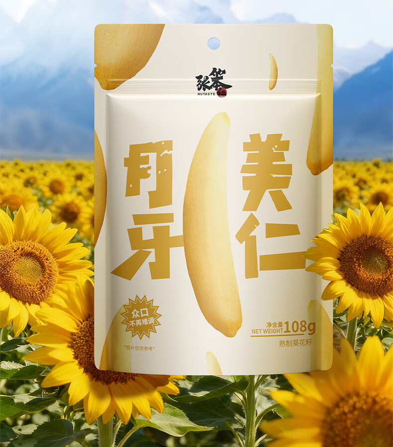 张笨仁月牙美仁多味瓜子108g五香大颗粒新疆牙签瓜子坚果葵花籽零食年货
