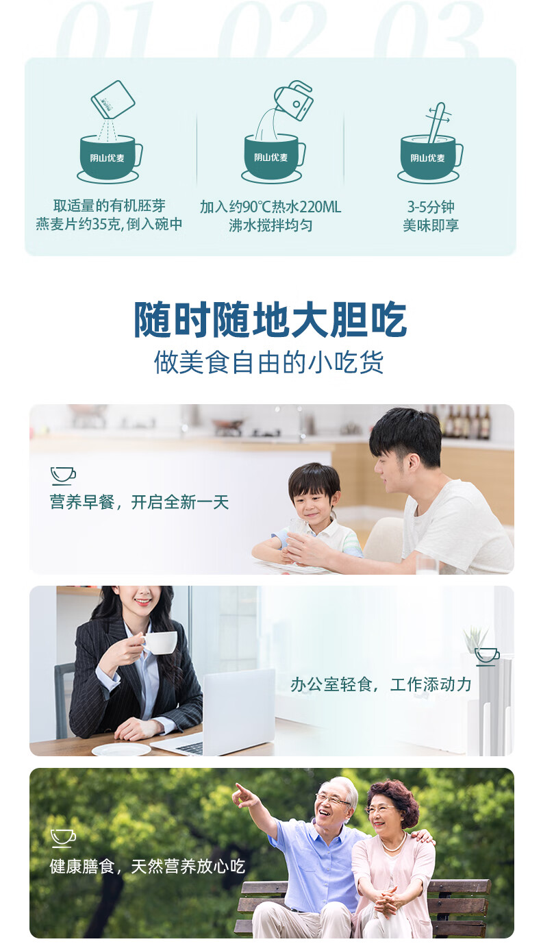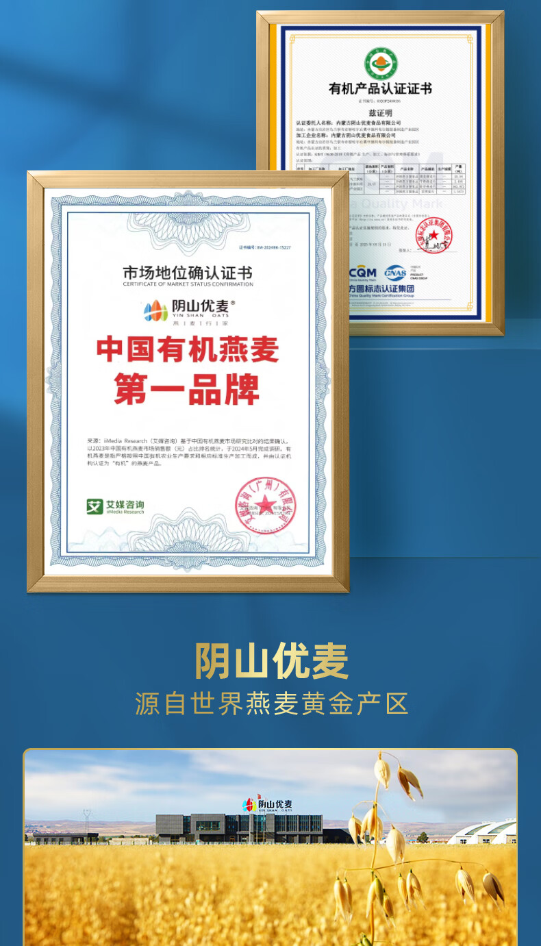 阴山优麦有机胚芽裸燕麦片1080g 高蛋白 膳食纤维 即食 零添加糖 营养早餐