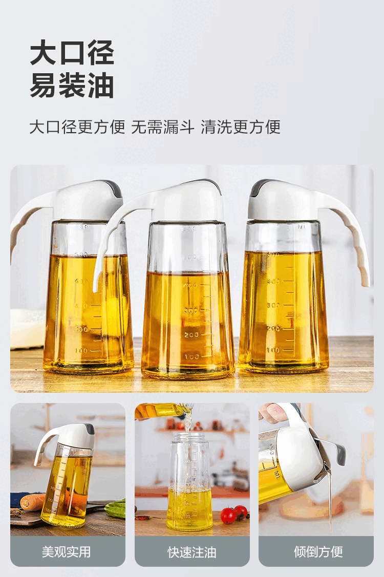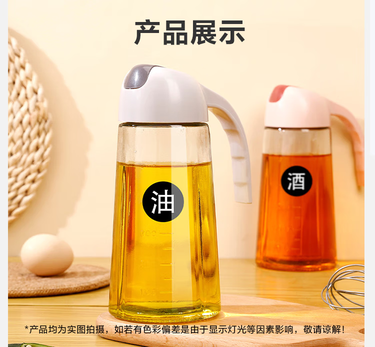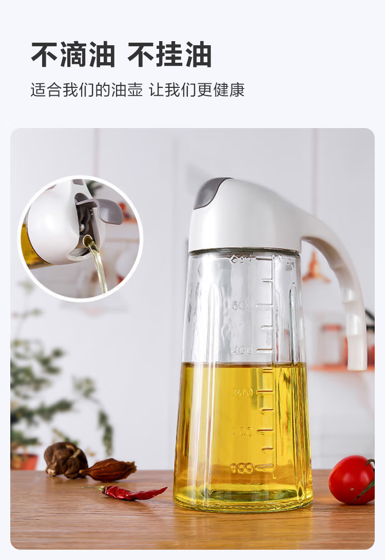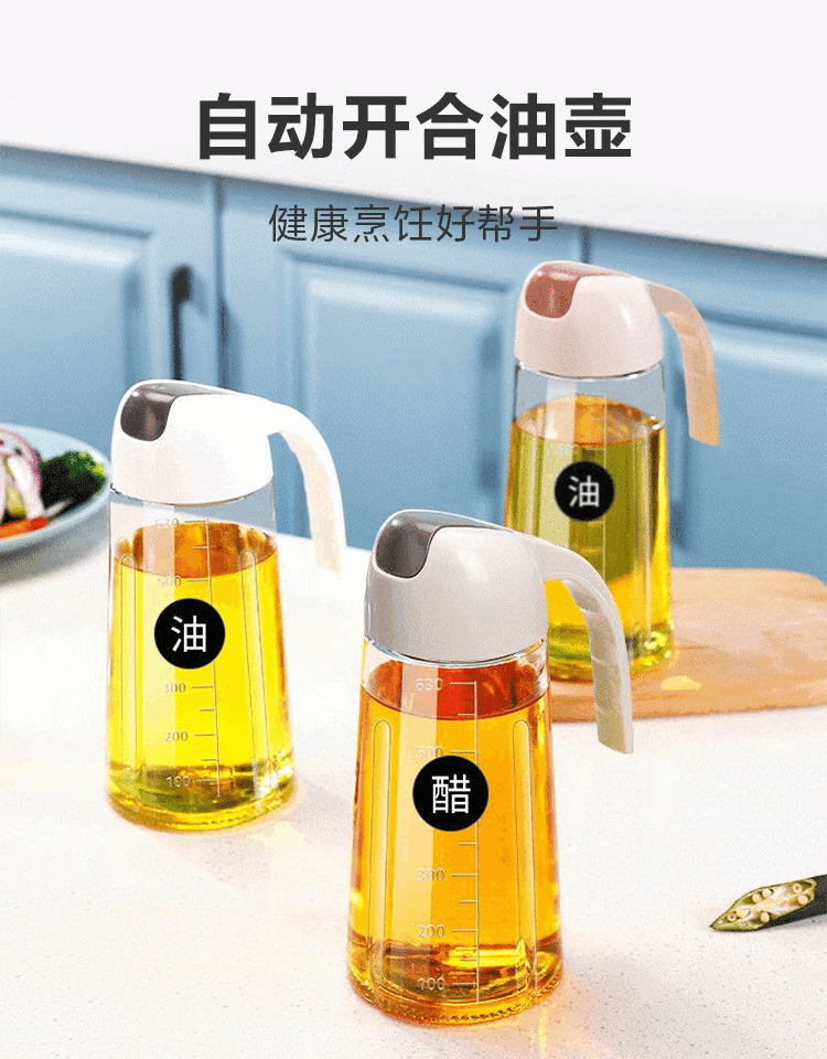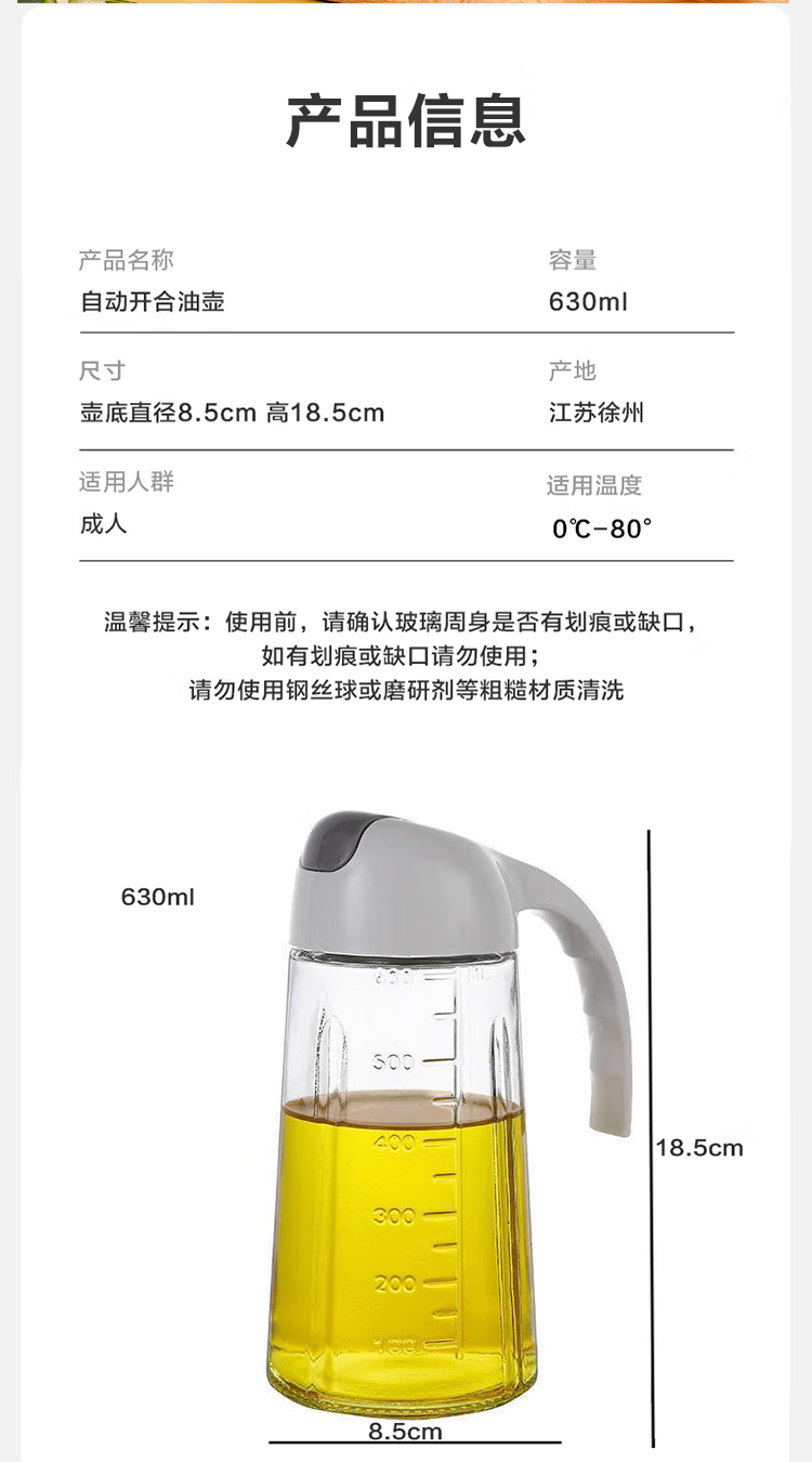 户外专用油壶自动开合油瓶玻璃油罐醋壶酱油瓶防漏防潮 自动开合油壶1个630ml