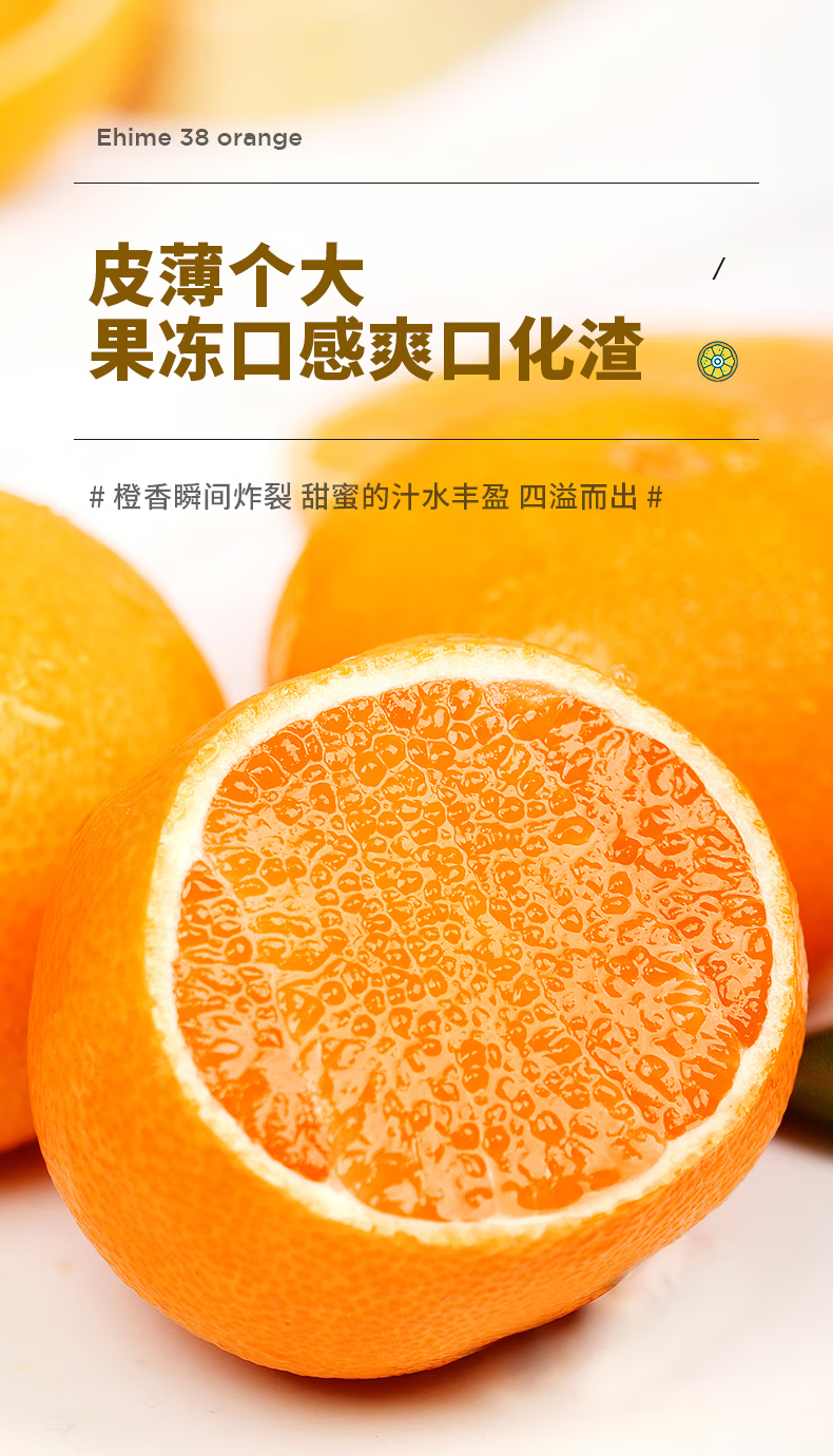 涨金爱媛38号果冻橙四川橙子整箱应季水果新鲜橘子礼盒优质彩箱泡沫托 净重4.5-5斤实惠装【单果170g+】