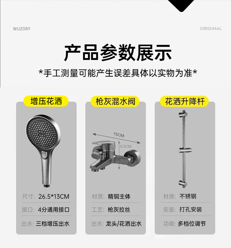 WUZORY【德国】全铜主体花洒淋浴套装增压沐浴花洒浴室卫生间升降套装 【全铜主体】升降增压花洒套装 三档调节丨分体式不占空间
