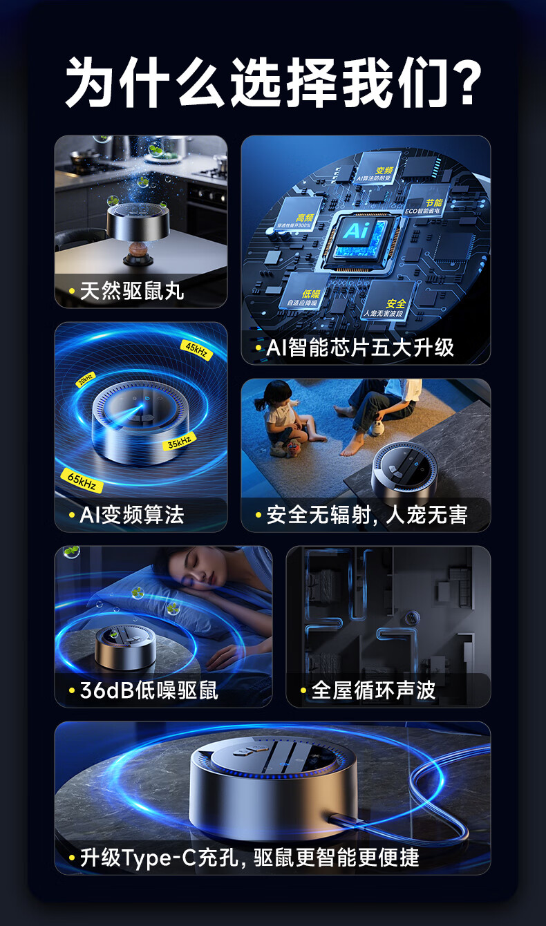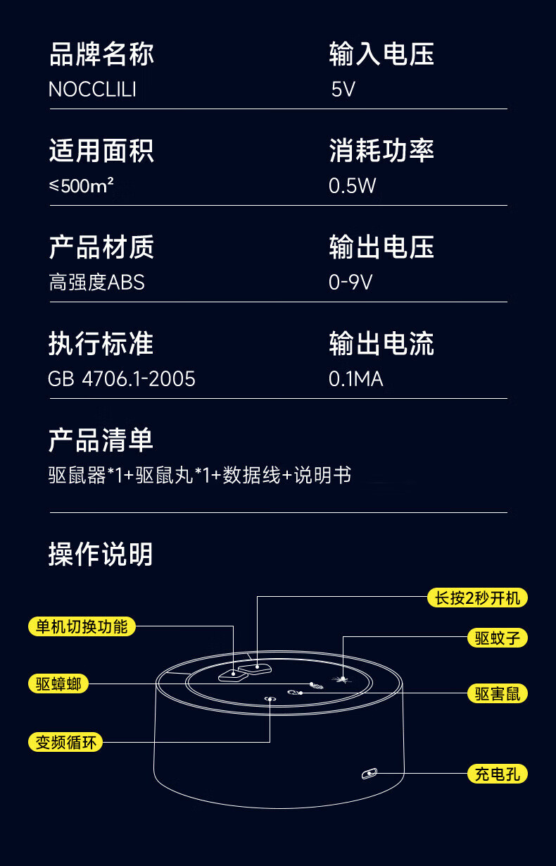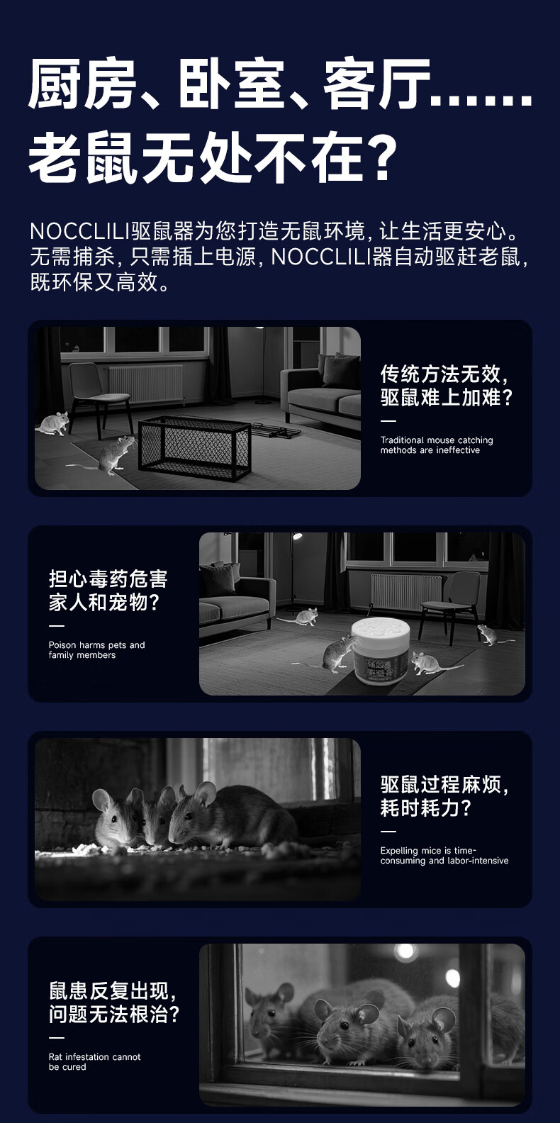 NOCCLILI超声波驱鼠器老鼠一窝端灭鼠驱赶神器家商用超声波大功率驱鼠器2