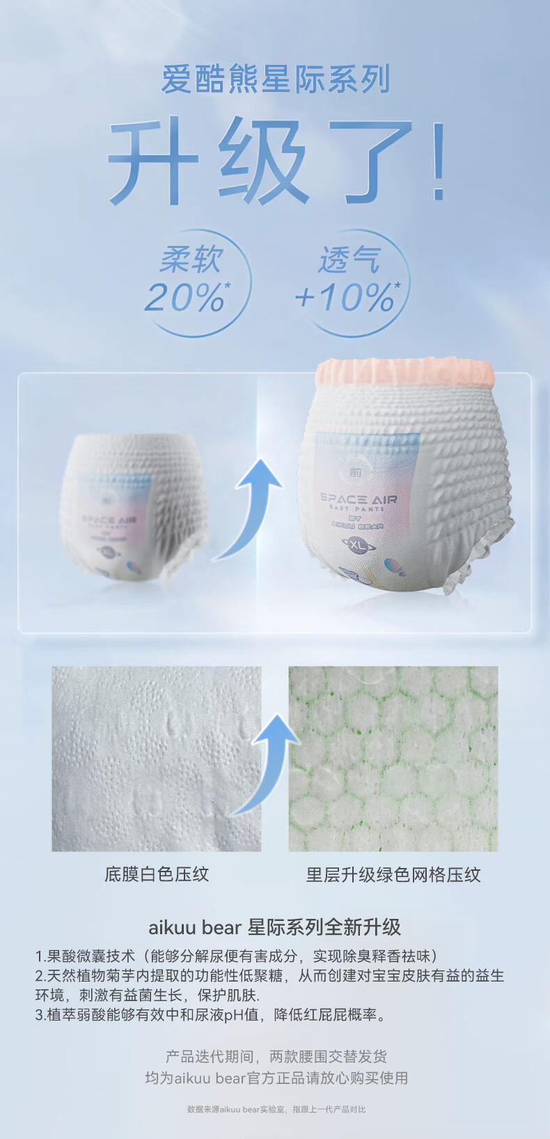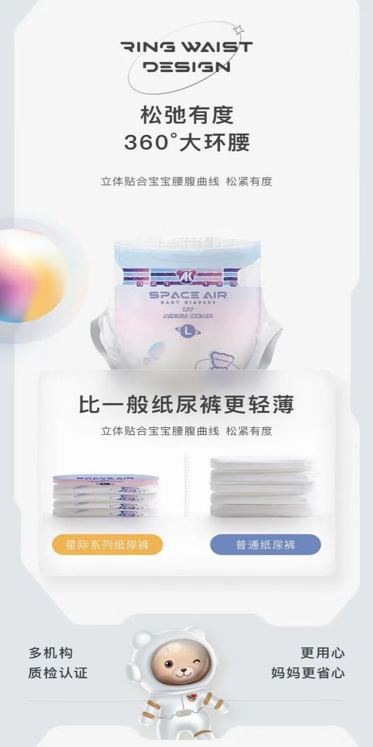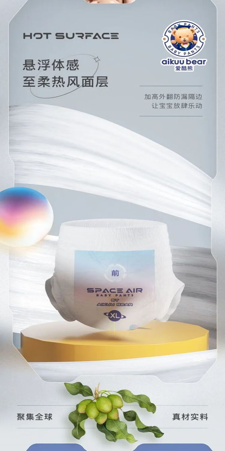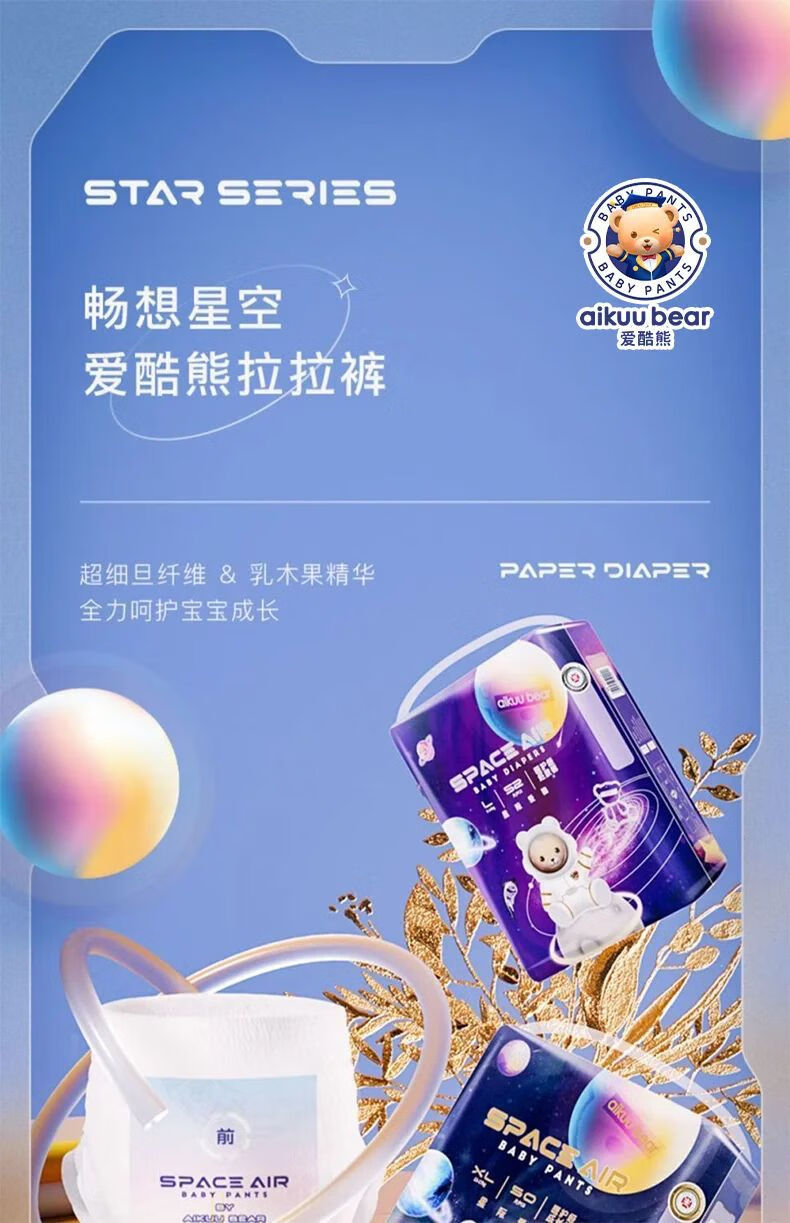 爱酷熊(AIKUUBEAR)星际爱酷拉拉裤XL码50片尿不湿婴儿大码一体裤敏感肌适用
