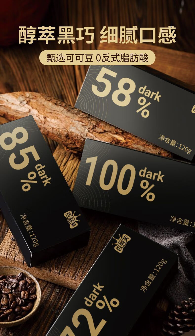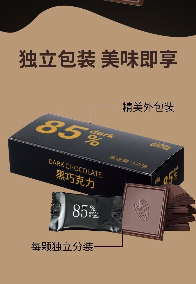 吉品到纯可可脂黑巧克力礼盒0蔗糖健身生酮燃减代餐饱腹感小零食 【纯黑巧克力】1盒*24片