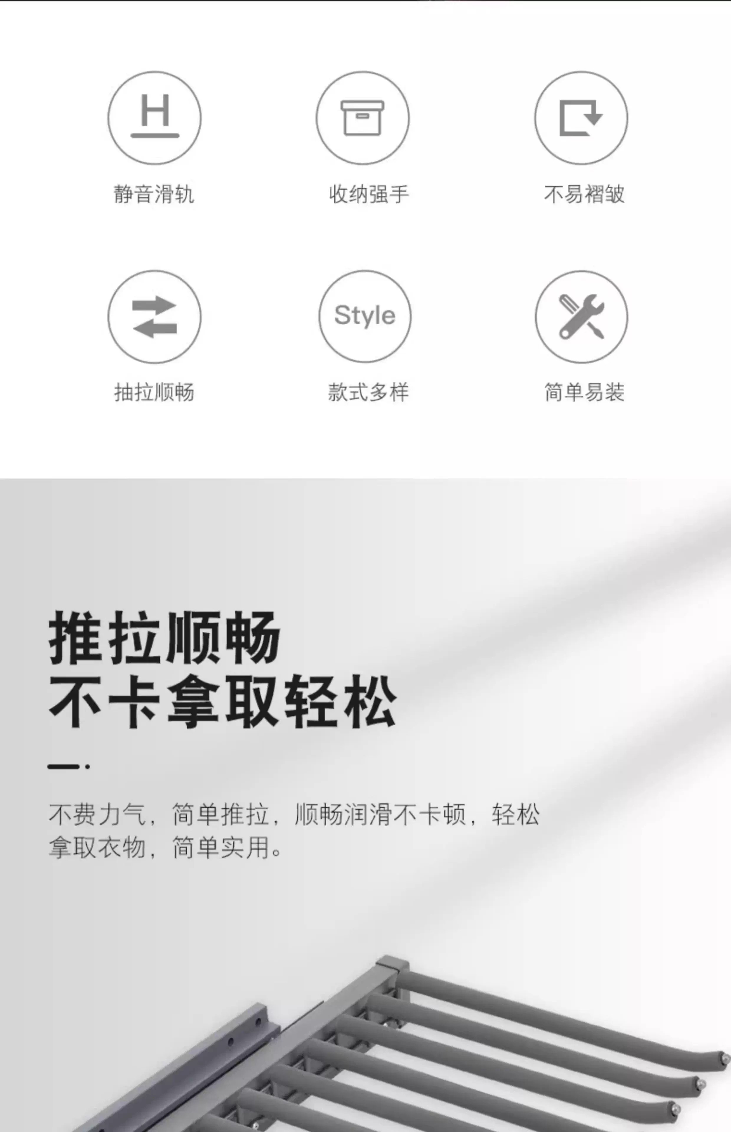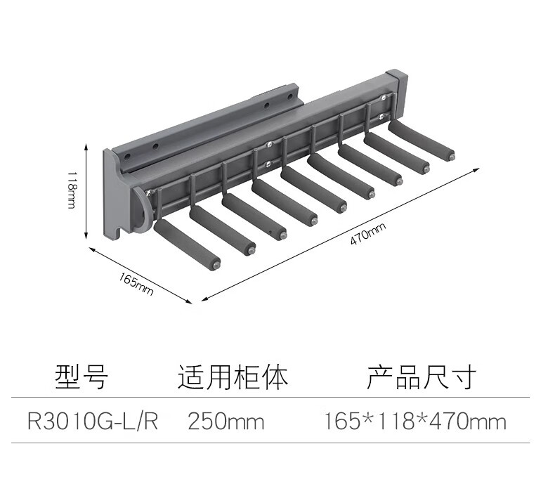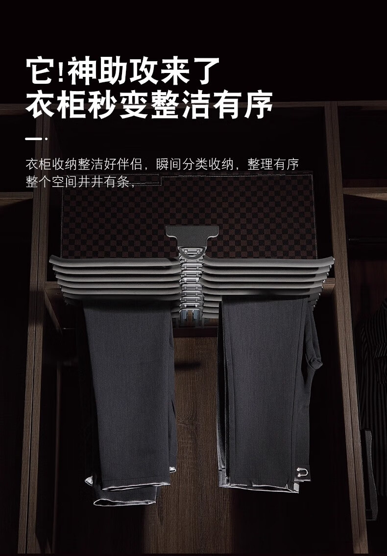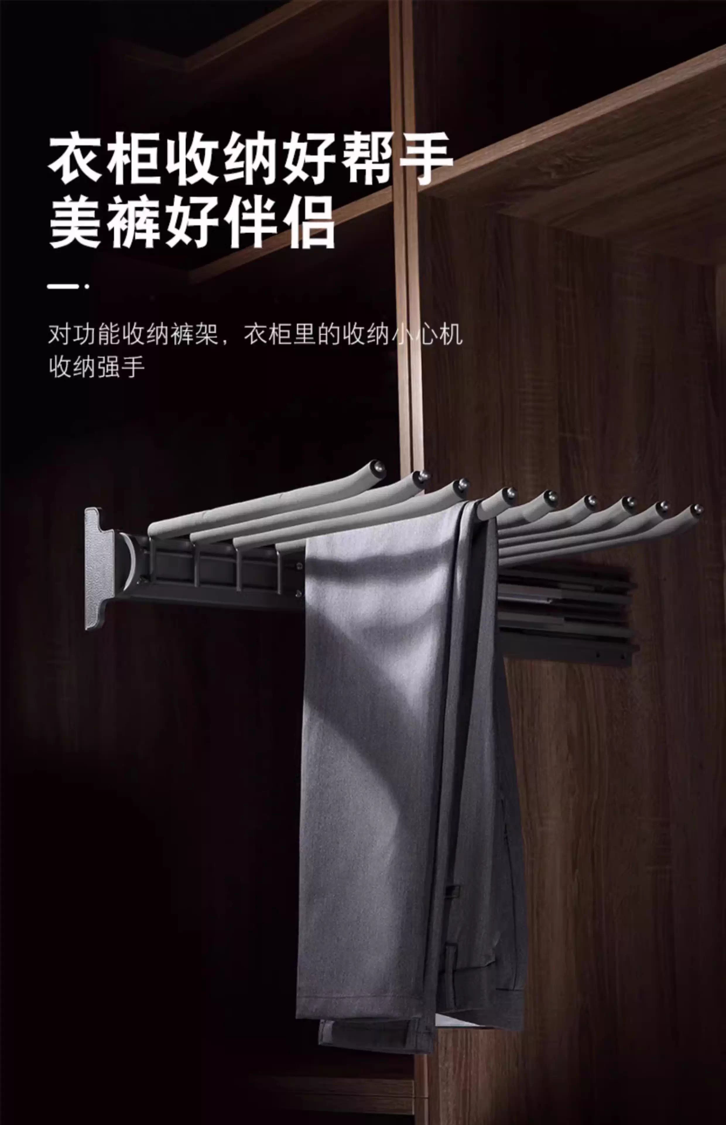 德米莫衣帽间收纳阻尼伸缩裤架双排挂裤推拉衣柜顶装侧装裤架 麦当娜黑灰色-侧装单排左 装左侧