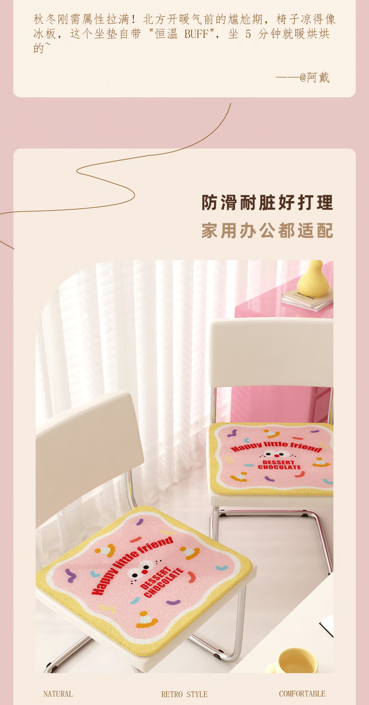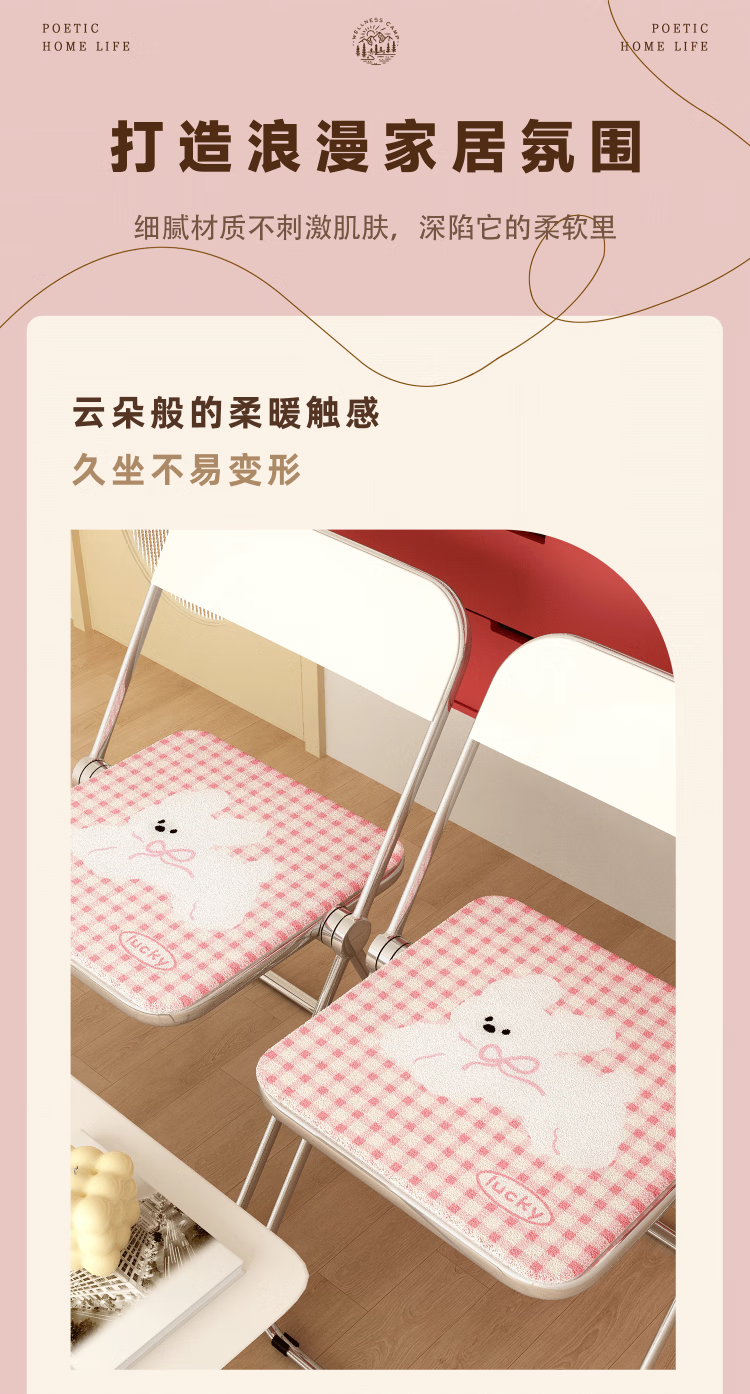 织百佳多巴胺毛绒餐椅坐垫办公室椅垫久坐学生宿舍凳子屁垫冬季加厚防滑 J爱心房子 30*30CM