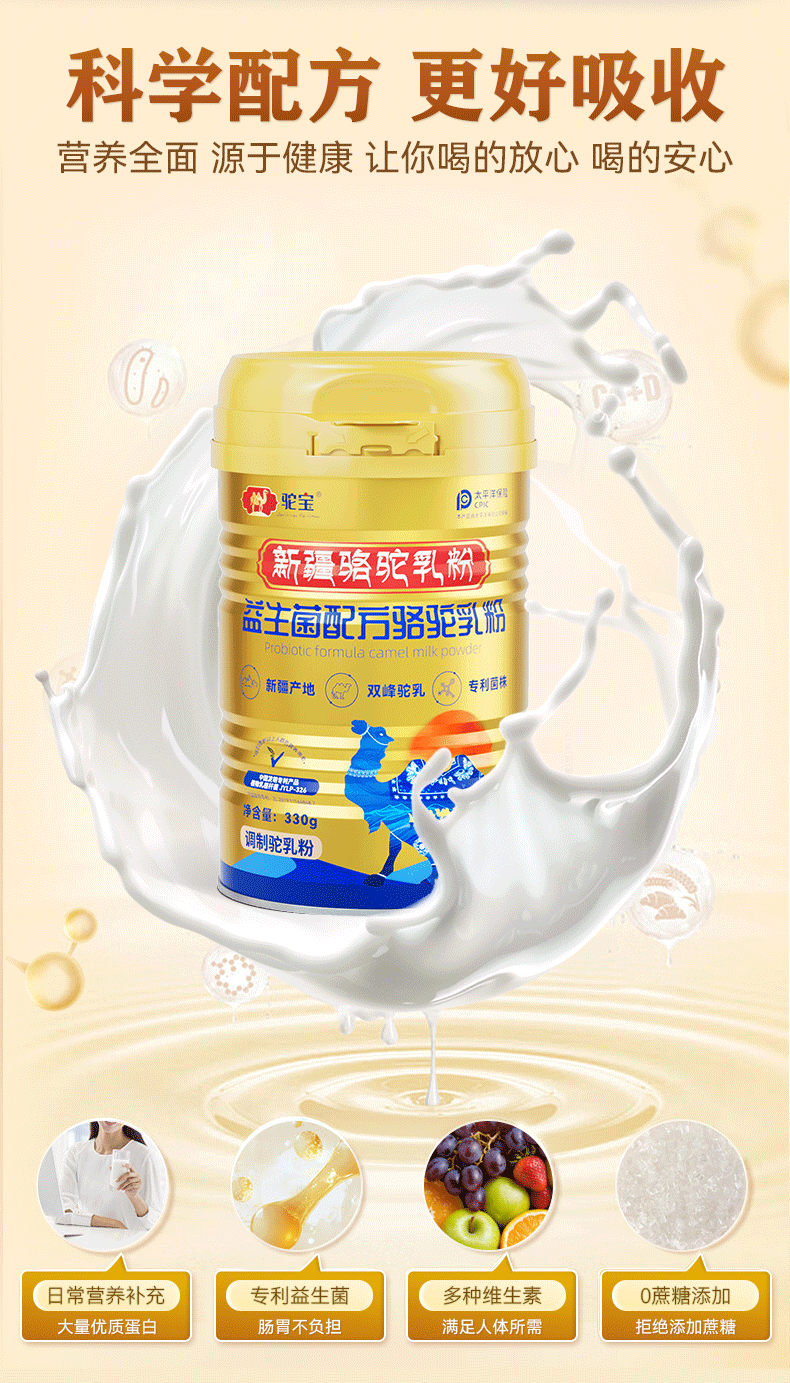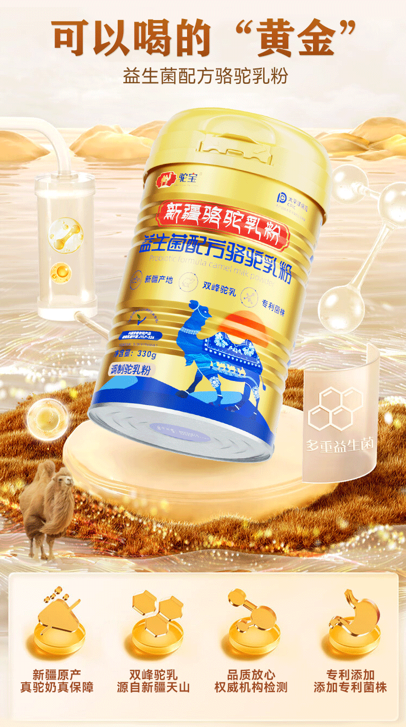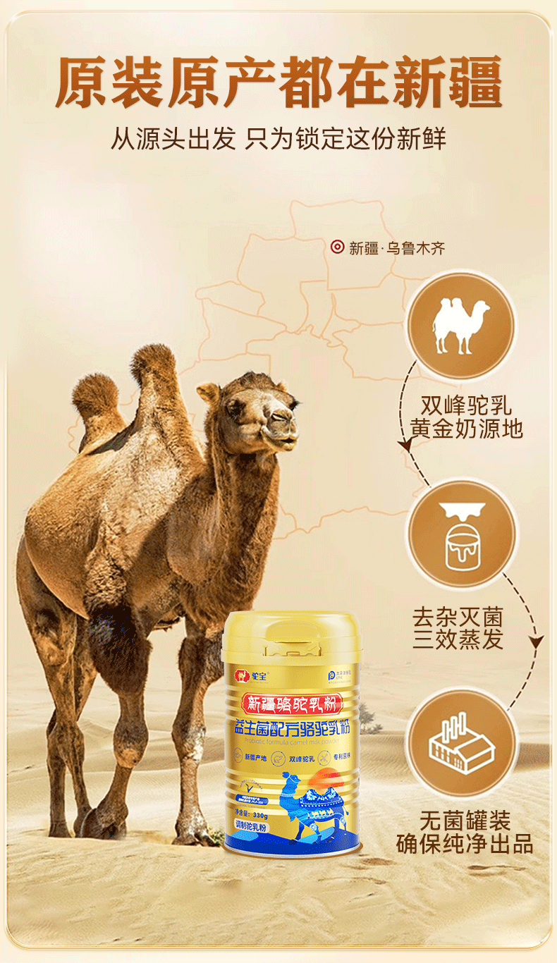 驼宝骆驼奶粉新疆正宗益生菌骆驼乳粉新鲜中老年驼奶粉330g*3罐礼盒装