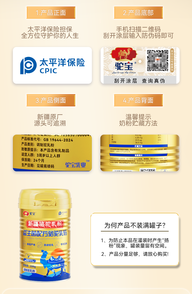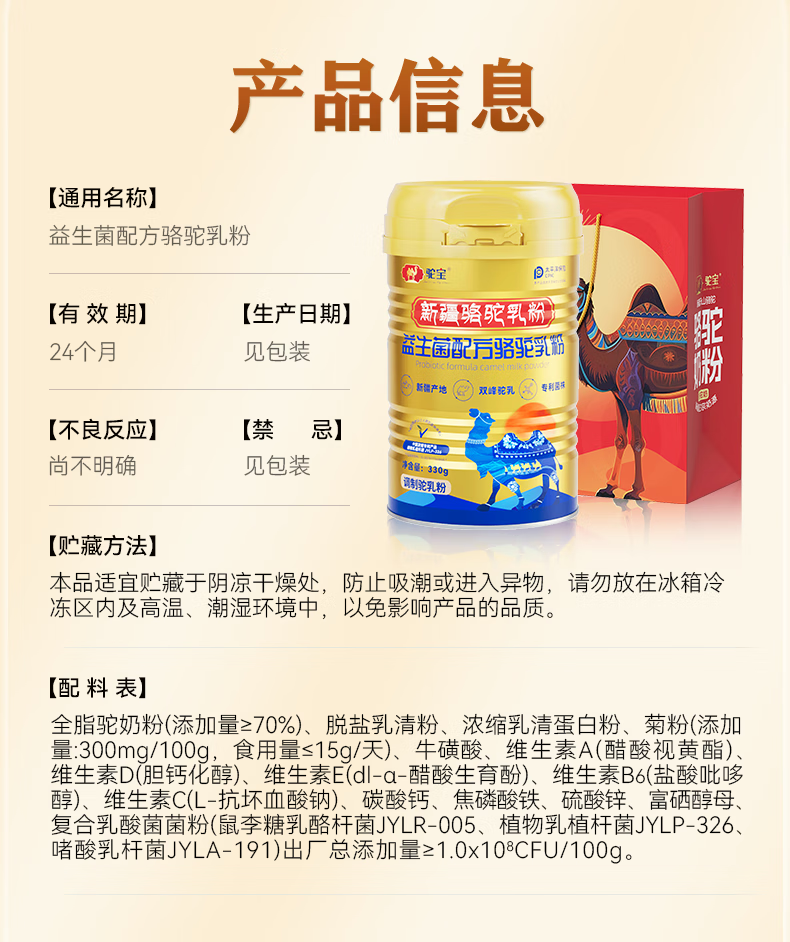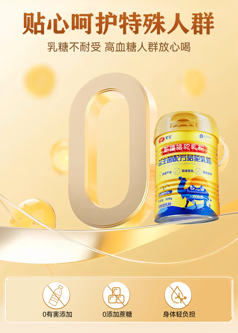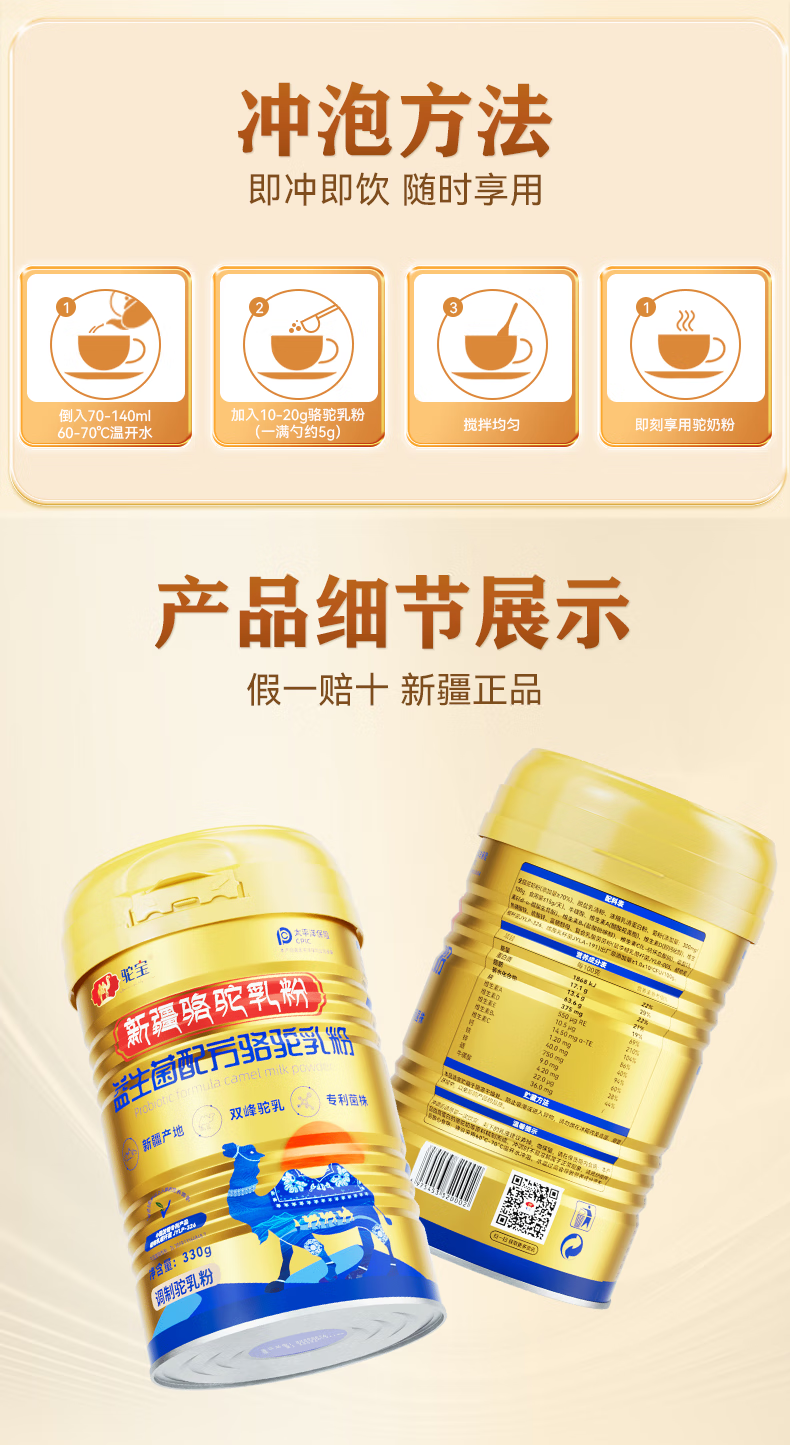 驼宝骆驼奶粉新疆正宗益生菌骆驼乳粉新鲜中老年驼奶粉330g*3罐礼盒装